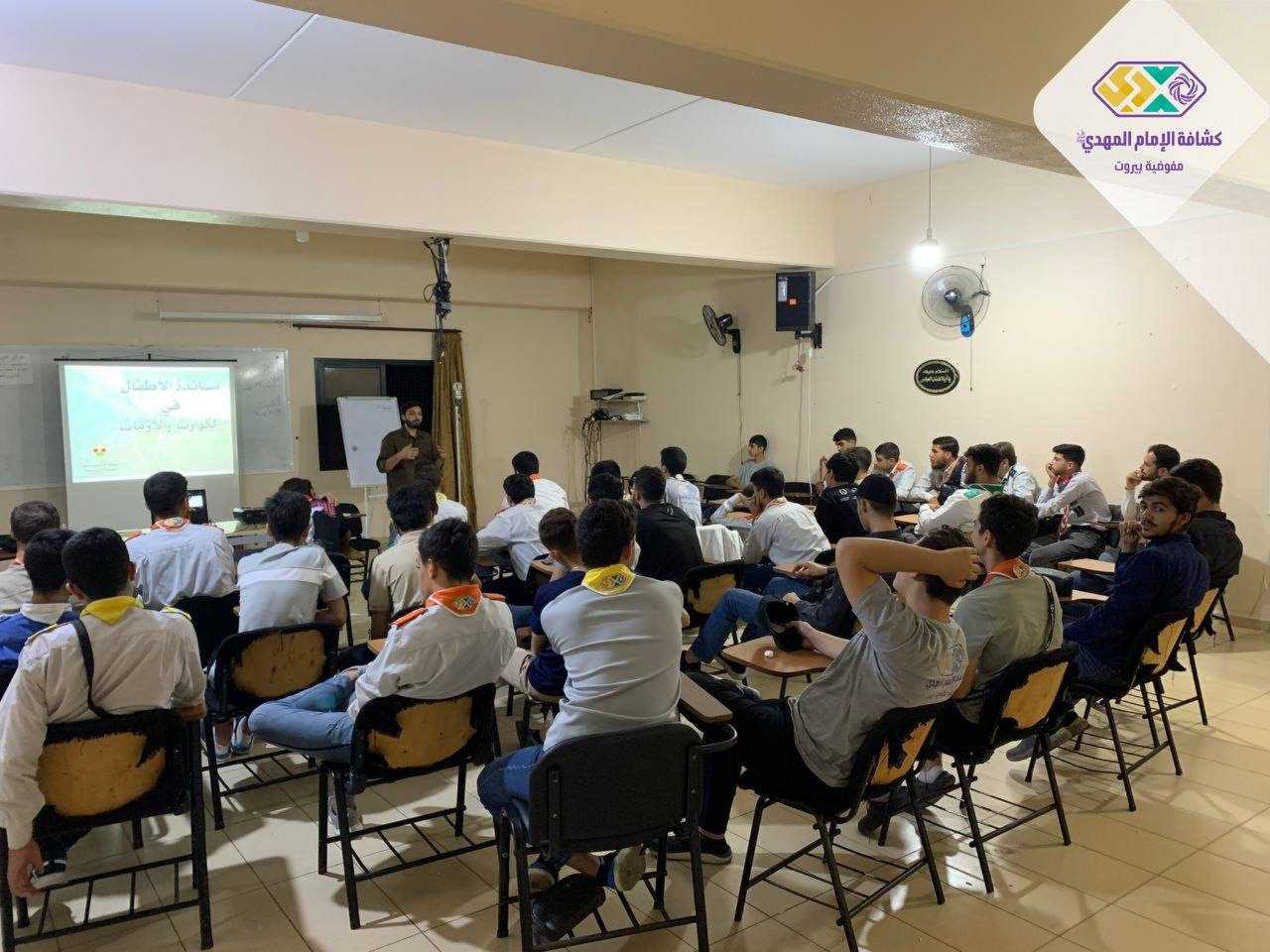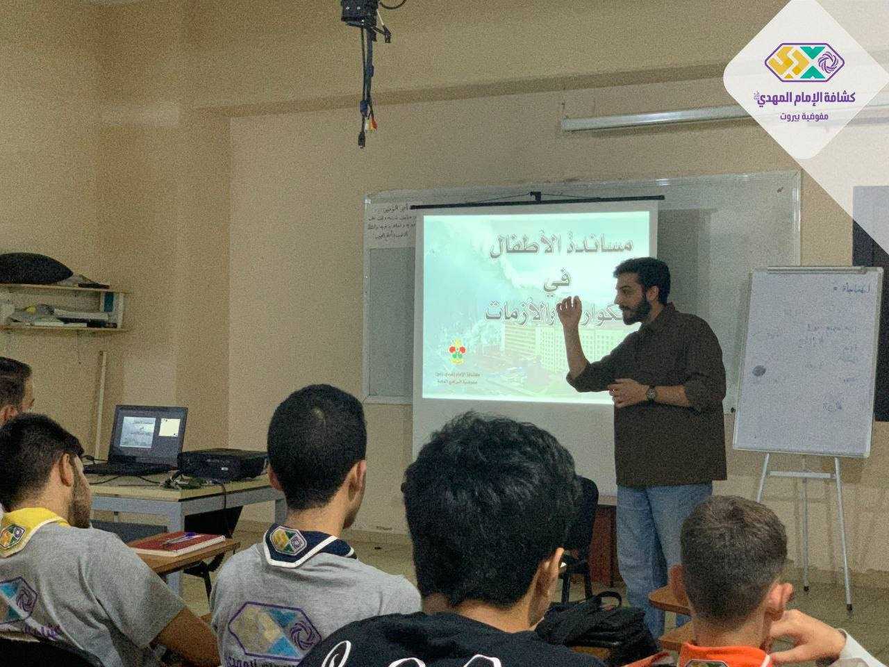 تلبية للاحتياجات التدريبية المقررة في منهاج تنمية القيادات وضمن المسار الرتبي لعضو قيادة فوج ، أقامت أمانة التدريب في مفوضية بيروت ورشة لمدربي حقيبة "مساندة الاطفال في الازمات" والتي قدمها القائد الكشفي محمد ناصر الدين ( أخصائي في علم النفس العيادي) بمشاركة بها ٢٤ قائد.