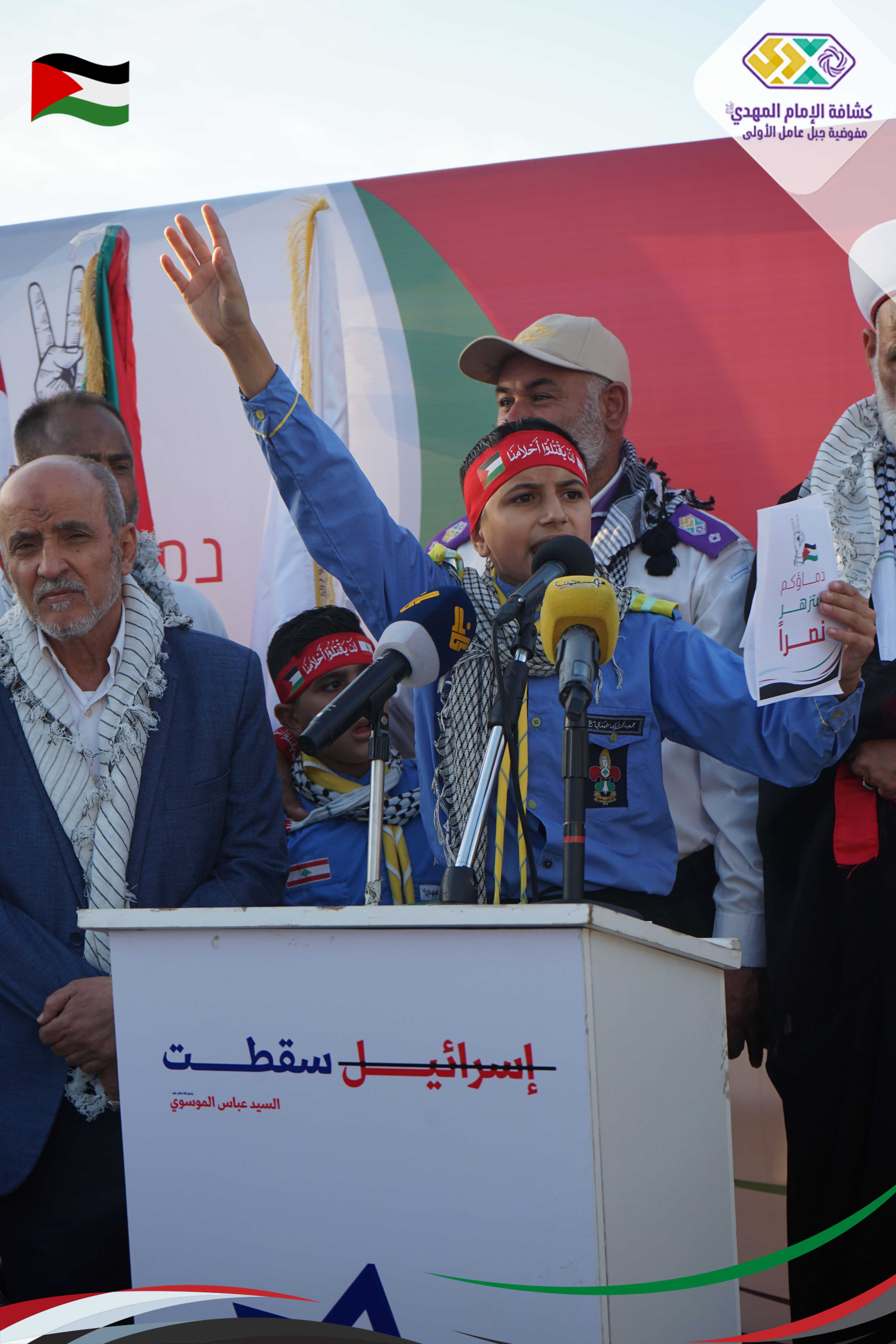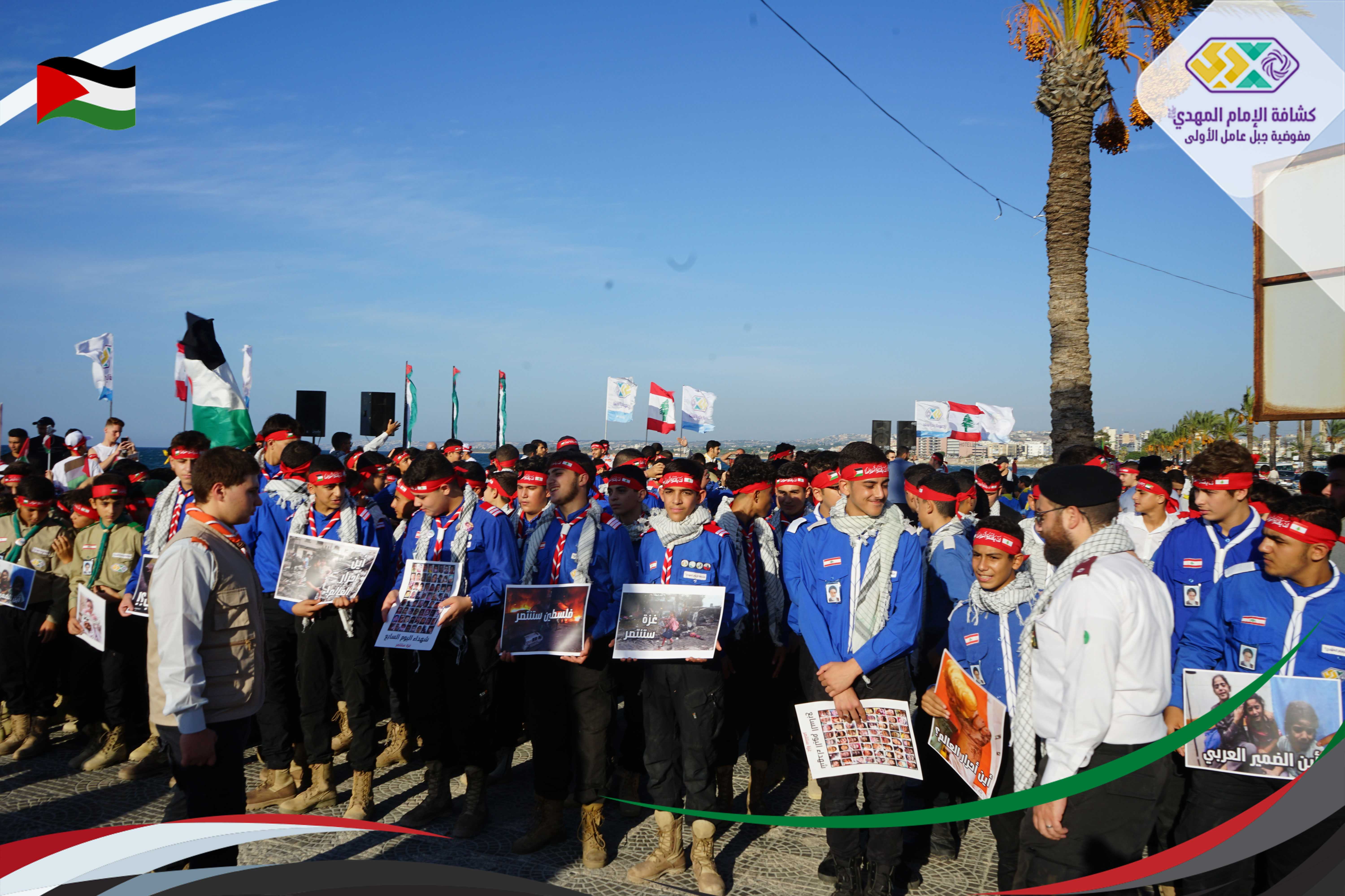 الوقفة التي أقيمت على دوار الشهـ.يد هيثم دبوق عند الكورنيش البحري لمدينة صور، شارك بها النائب الحاج حسين جشي و شخصيات كشفية، تربوية وحزبية، وقد رفع خلالها الكشفيون الرايات، ورددوا الصرخات والشعارات الداعمة لأطفال الصمود والمواجهة في غـ.زة. كما تضمنت الوقفة مرسمًا فنيًا، صاغت خلالها الكشفيات لوحات تحاكي المأساة التي يعيشها الأطفال هناك، وتحاكي كذلك صمودهم الاستثنائي. إلى ذلك، ألقى الفتية والفتيات الكشفيون والفلسطـ.نيون كلمات عبروا خلالها عن دعمهم لأطفال فلسطـ.ين والوقوف بجانبهم، ونددوا بجرائم هذا العدو الوحشية، والتي تطال الأبرياء في قطاع غـ.زة المحاصر . وخلال الوقفة، ندد النائب الحاج حسين جشي في كلمته بهمجية العـ.دوان الإسرائيلي، مؤكدا الدعم الكامل للفلسطيـ.نيين، و أن النصر آت لا محال.