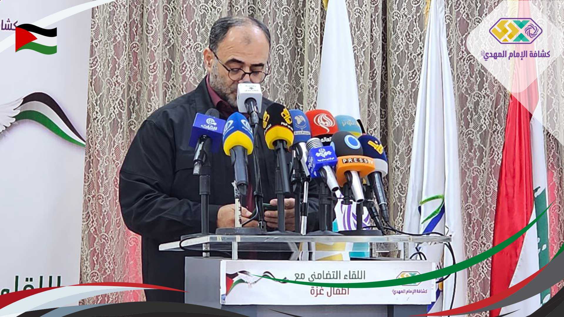 بعد نشيد الجمعية والنشيد الوطني الفلسطيني وكلمة ترحيبية من مفوض العلاقات العامة نضال شعيب توجه رئيس الجمعية الشيخ نزيه فياض بالتحية والسلام والإكبار والاجلال لصمود الصامدين في غزة وللنساء وللأطفال من الفتية والفتيات وللرضع ولعشرات الالاف من الضحايا المقتولين بدم بارد والمنشورة صورهم وصور اشلائهم الممزقة على اعين العالم وأضاف الشيخ فياض :" إن كنا نزعم أو نصدق أن في هذا العالم حقوقا للانسان وحقوقا للأطفال وحقوقا للنساء، وإن للحروب حدودا ايضا ، فإننا لن نكتفي ، ستكبر أصابع الإدانة لتدخل في أعين هذا العالم المغمضة عن دمنا المسفوك والذي يتعامى عن حقيقة ما يجري في غزة كما تتعامى عن اليمن واطفال اليمن واهل اليمن، وختم فياض :"معكم يا أطفال فلسطين معكم يا نساء فلسطين معكم يا أبطال فلسطين معكم يا كل المحرومين والمظلومين والمقتولين في العالم، واللعنة على الوحش القاتل وان موعدكم الصبح اليس الصبح بقريب"، بعدها توالت الكلمات المنددة بالإعتداءات الوحشية والهمجية للعدو الصهيوني على أطفال وشعب غزة وفلسطين، حيث استعراض المجازر وأعداد الشهداء من الأطفال والنساء وغير ذلك بالأرقام والشواهد، وأكدت المداخلات على غياب المجتمع الدولي ومنظمات حقوق الإنسان وحقوق الطفل والمنظمات الدولية.