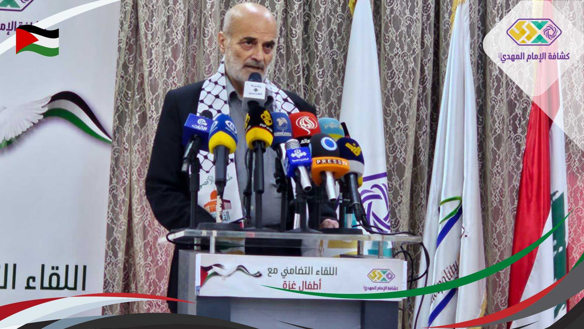 الدكتور عبدالملك سكرية رئيس جمعية مقاومة التطبيع قال :" نحن كمجتمع أهلي مقاوم لنا دور كبير وأساسي إلى جانب المقاومين، معركة الوعي جزء أساسي وهذه المعركة يجب أن ينخرط فيها الجميع، وأيضا نستطيع أن نقاوم بالمقاطعة وهو سلام فعال، ويجب أن تكون نمط حياة". الدكتورة ليلى شمس الدين تحدثت باسم التجمع الأكاديمي في لبنان لدعم فلسطين فقالت :" على المجتمع الدولي أن يتحمل مسؤولية تشيجع ومساعدة الدول للقيام بالجرائم ولكن السؤال هل هناك مجتمع دولي، وهل سيحاكم المجرمون وأين ومتى ومن سيحاكم في ظل هذه العدالة الموهومة العالمية، ولأننا أمام لحظة الحقيقية نحن هذه المرة سنصنع التاريخ ولن نسمح لغيرنا أن يكتب التاريخ، وسيحكم التاريخ عمن سكت وساند وتغافل وعمن ناصر وجاهد وقاوم واستشهد". الدكتور علي فضل الله رئيس مركز القانون الدولي والمتخصص بالقانون الدولي قدم مقاربة حول القانون الدولي، فقال إن الإتفاقية الوحيدة في القانون الدولي العام التي حازت توقيعا وتصديقا على إجماع عام 1989، فضل الله أسف على أنه في غزة كل ربع ساعة يقتل طفل، الجماية المفروضة للأطفال يجب أن تكون تامة ويجب أن نستفيد من هذه النقطة لأنها نقطة محرجة في الخطاب العام، والقانون الدولي مطلوب".