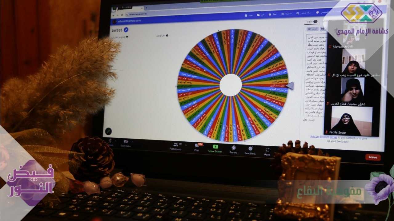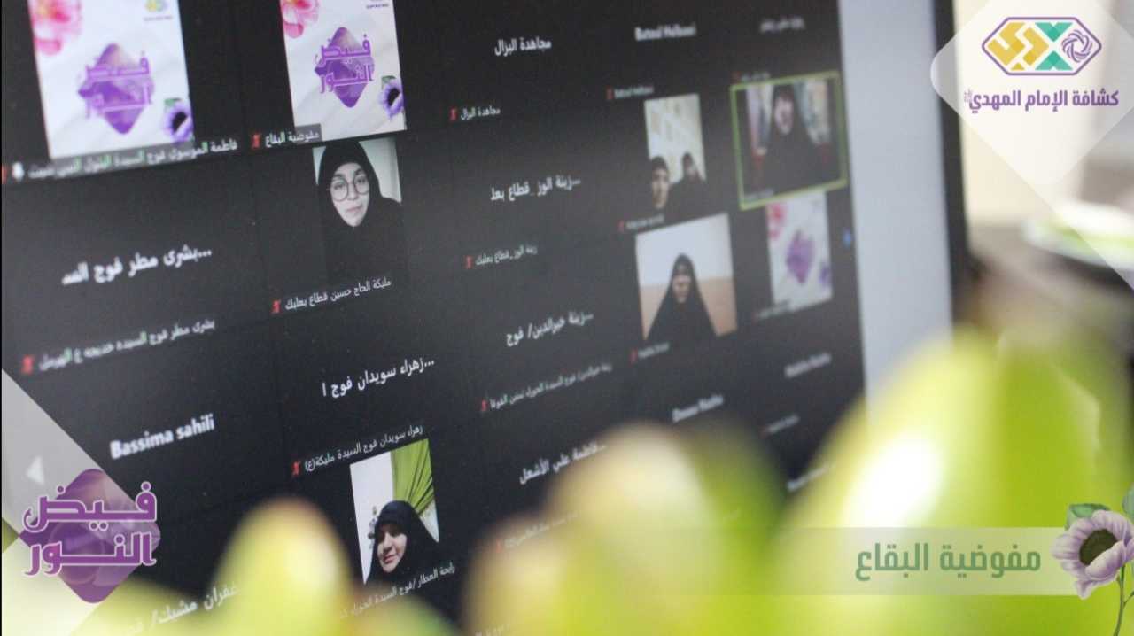 اختتاماً لفعاليات ولادة السيدة فاطمة عليها السلام اجتمع ما يقارب ال ٢٠٠ قائدة من قائدات مفوضية البقاع على منصة الزوم، في أمسية فاطمية حملت عنوان "فاطمة عليها السلام القائدة والأسوة" قدمت خلالها المدرِّسة الحوزوية الحاجة سمر عواضة قبسات من نور فاطمة وأنارت طريق القائدات بكلمات من القلب ونصائح ليكنّ مقتديات بها فعلاً وقولاً، وفي الختام اعلنت نتائج مسابقة "سأنتظرك" وسحب القرعة للمشاركات.
