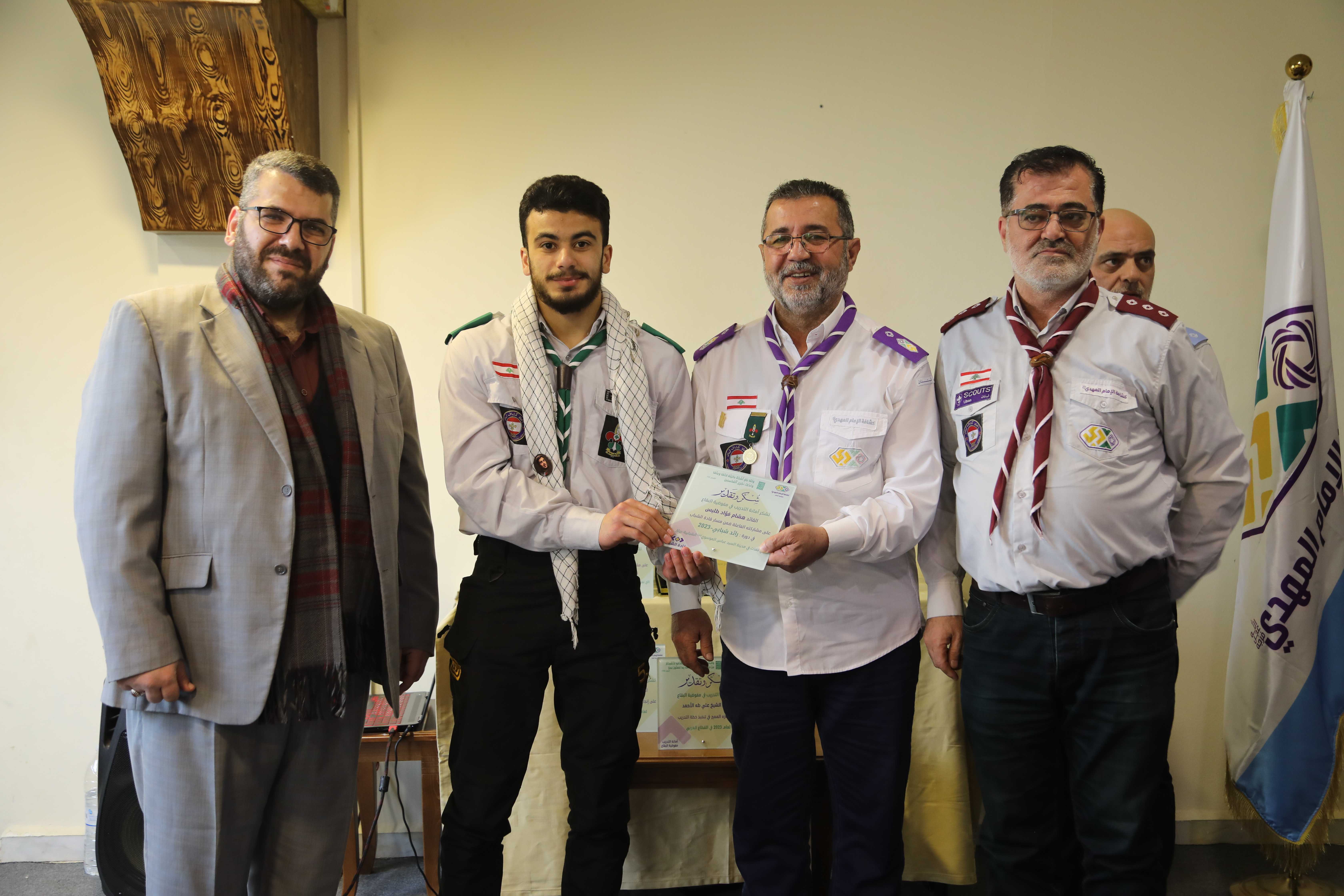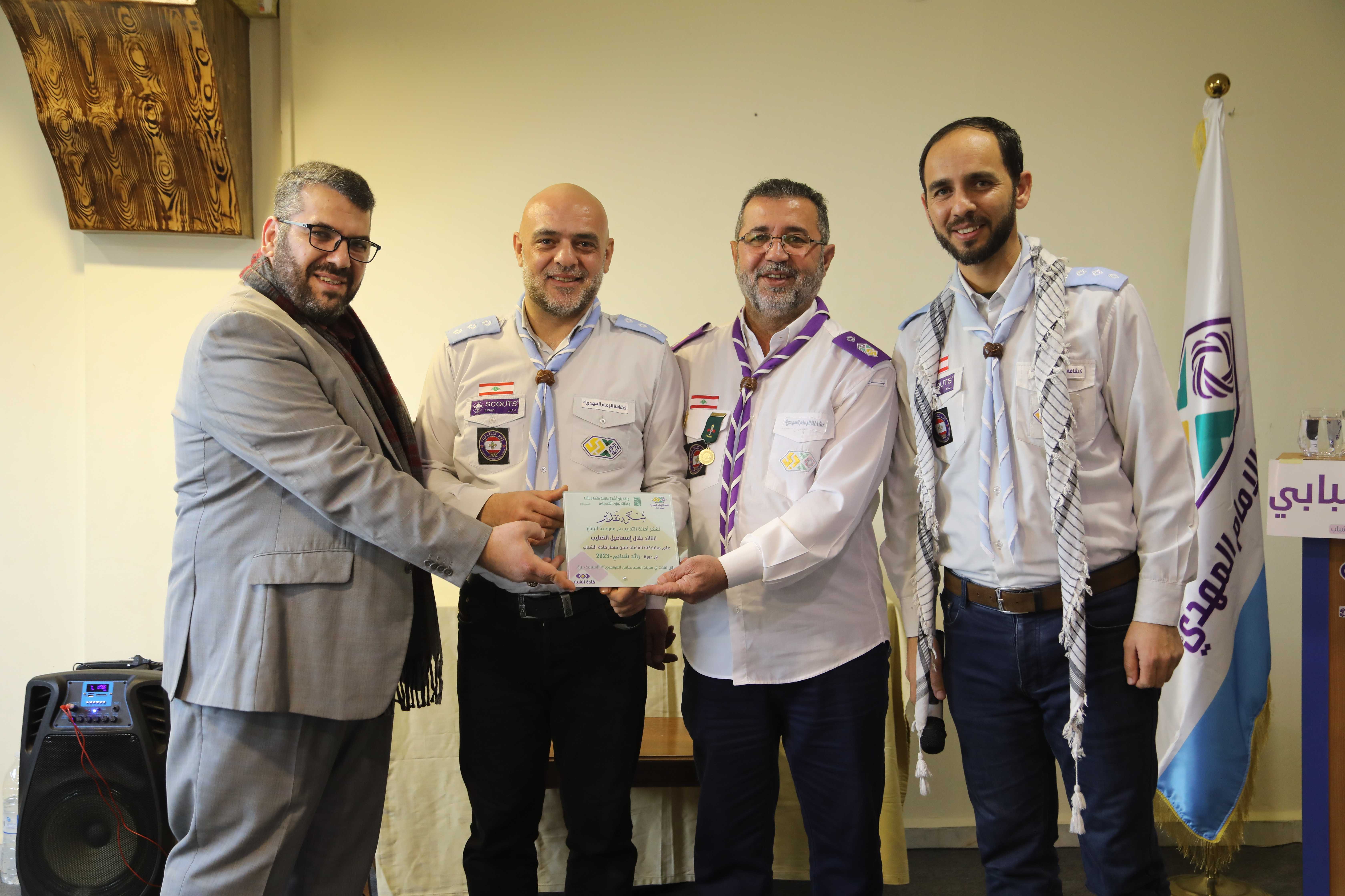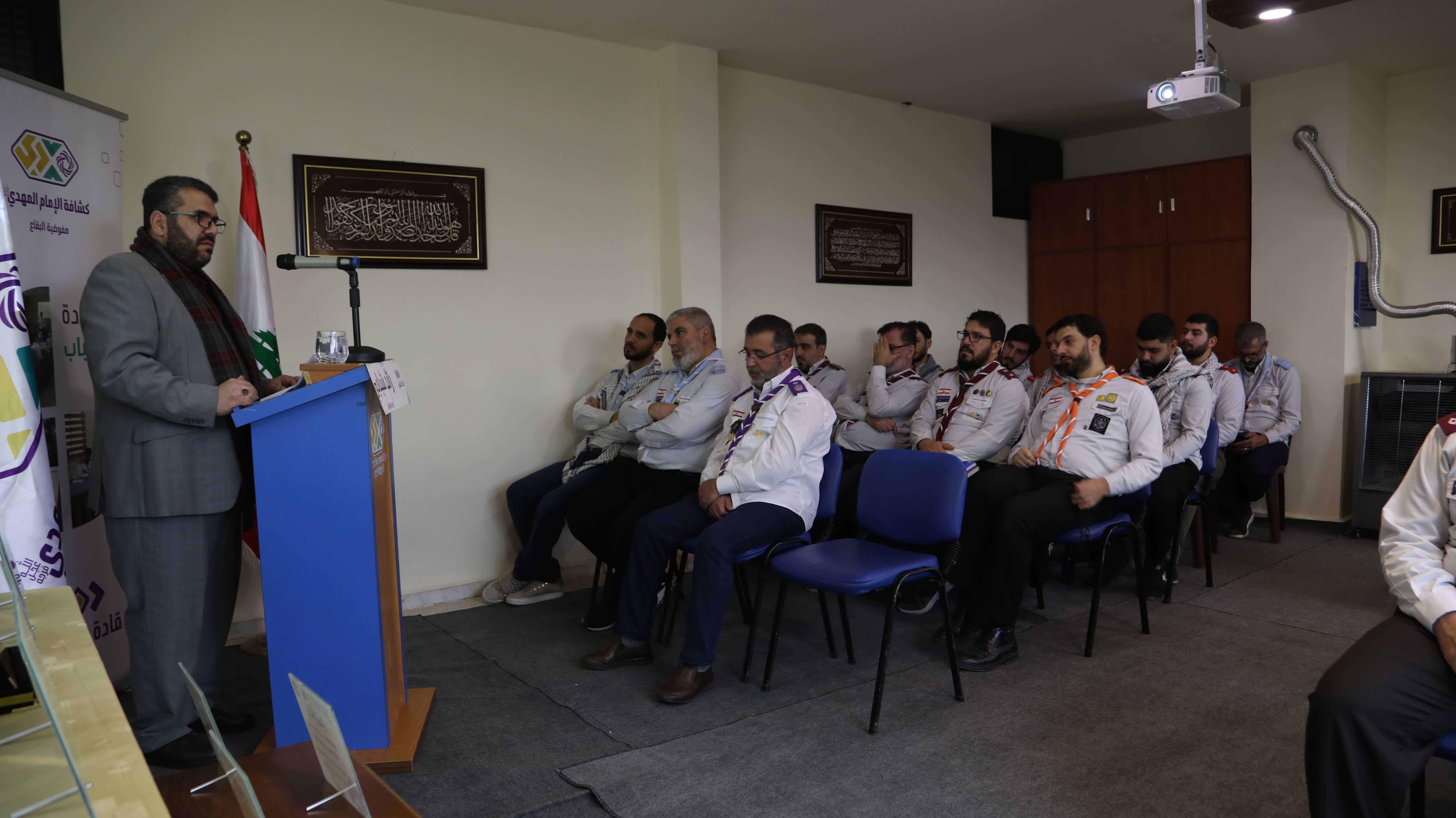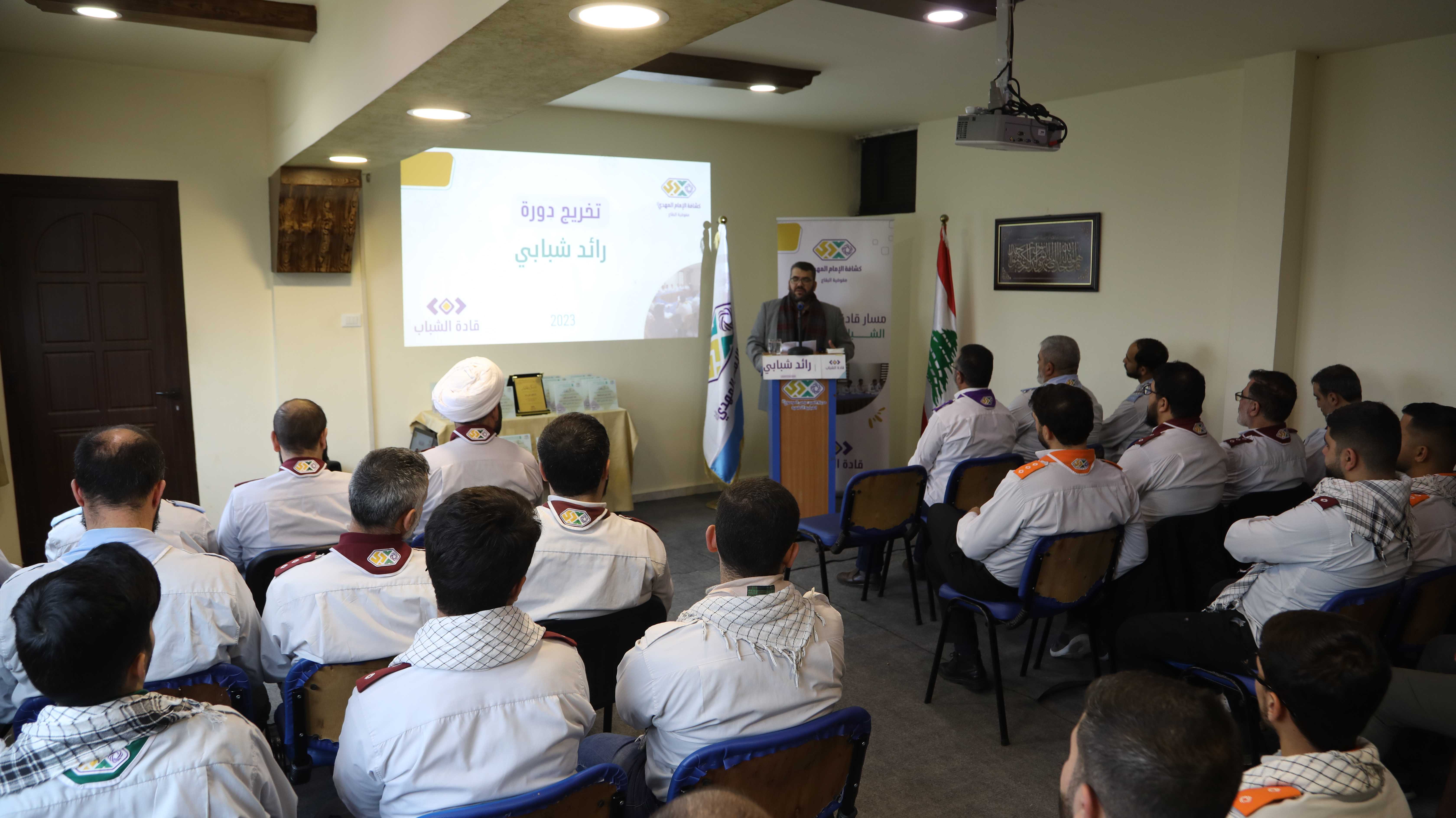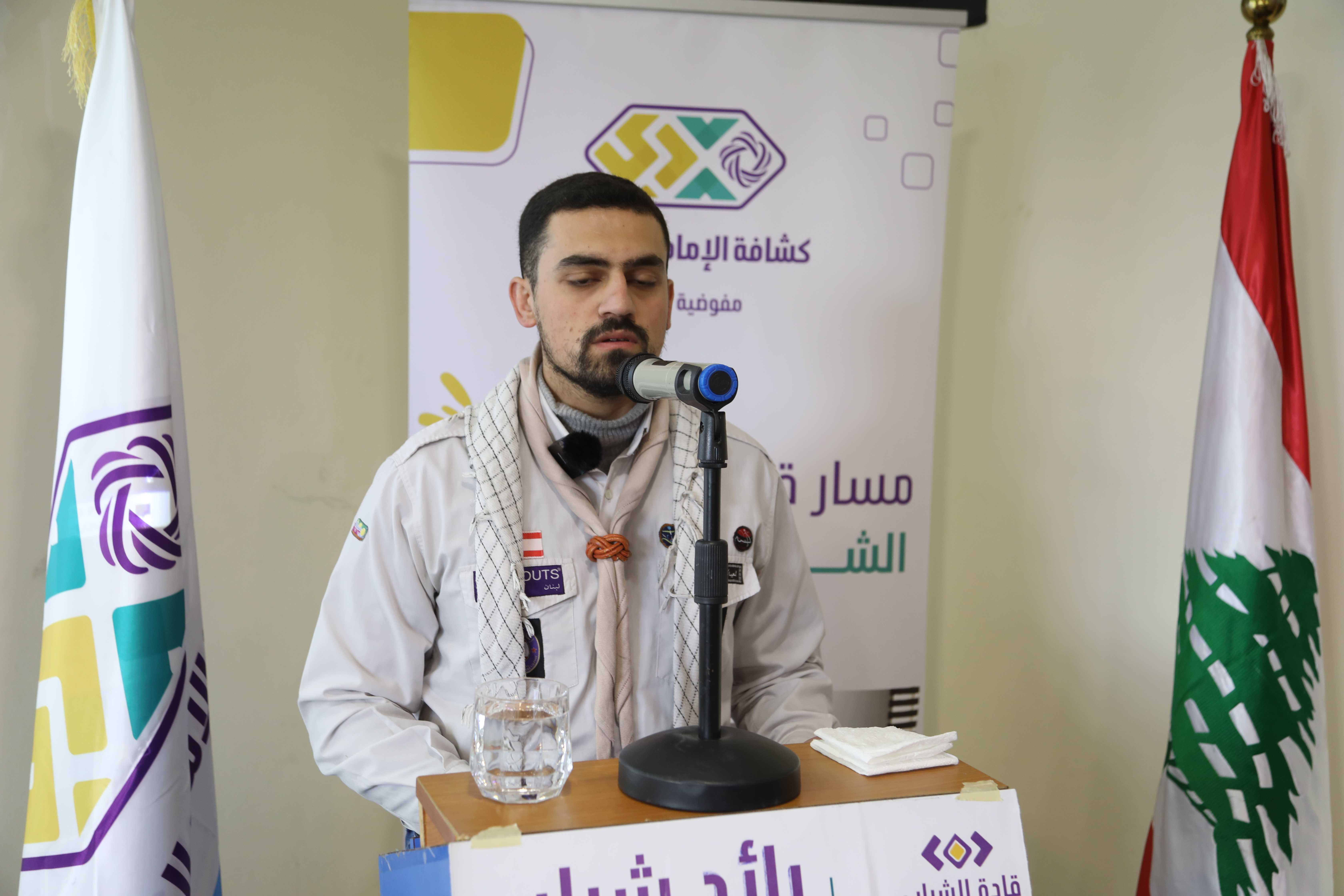بدأ البرنامج مع آيات قرآنية لتطمئن بها القلوب ومن ثم أدّى الحضور تحية الإكبار وقوفا مع نشيدي الوطني اللبناني والجمعية، بعدها كلمة شكر باسم المتدربين لكل من ساهم في الإدارة والتدريب، ليعرّج بعده الدكتور علي رباح بكلمة أكدّ فيها على أهمية ودور كشافة الإمام المهدي (عج) اليوم واصفاً إياها بقبلة اليافعين والشباب ومصنع الرجال الحاضر في كل ميادين الرقي والإقتدار وبأنها الجمعية التي تصنع الإنسان القائد، مُشيداً بأهمية مسار قادة الشباب الذي وصفه بالمشروع الشبابي المميّز، وموصياً المتدربين في نهاية الكلمة العمل على التحول النوعي في شخصياتهم وحياتهم وذلك على صعيد القناعات والأفكار والقدوات، وعلى صعيد العلاقات.