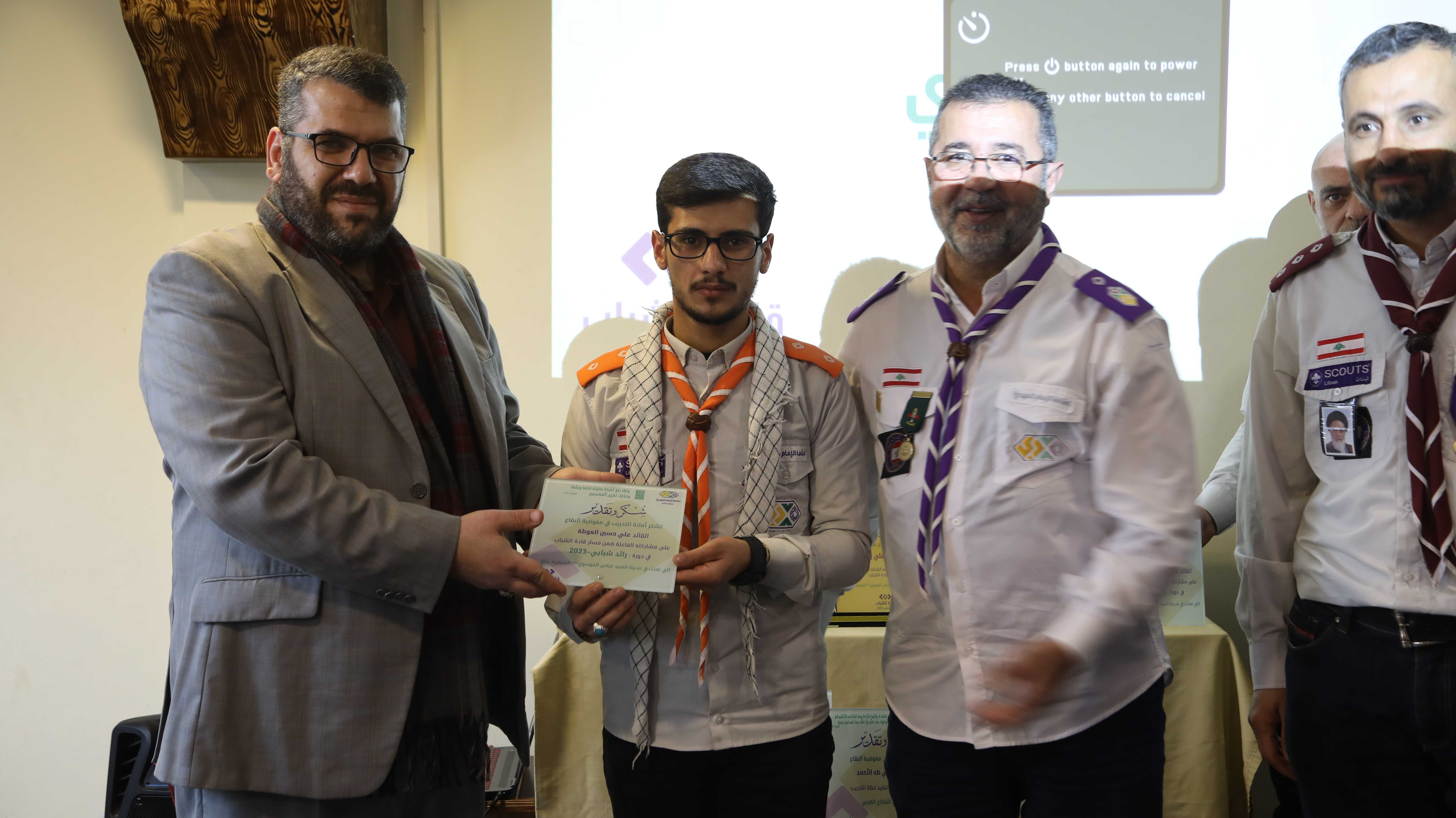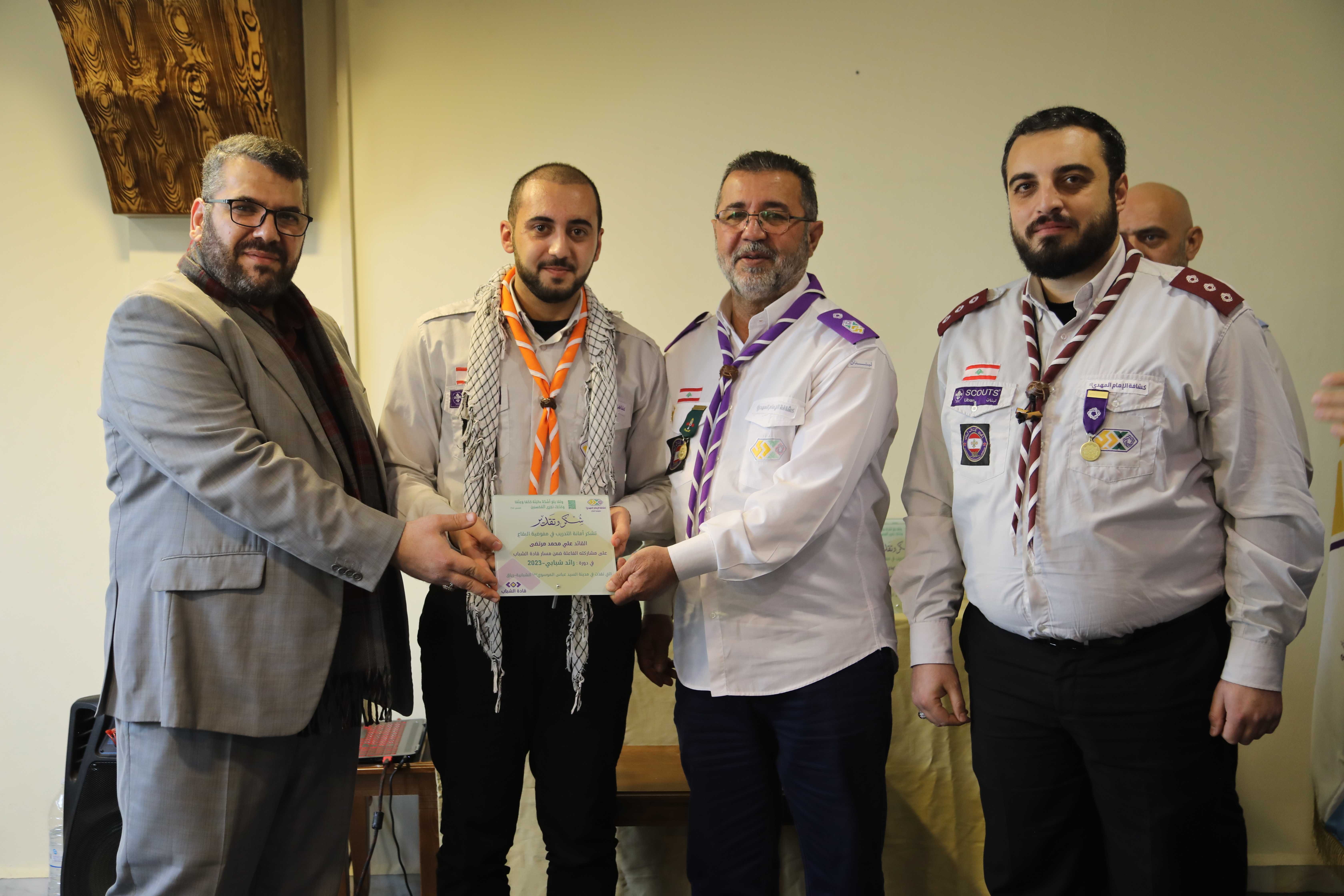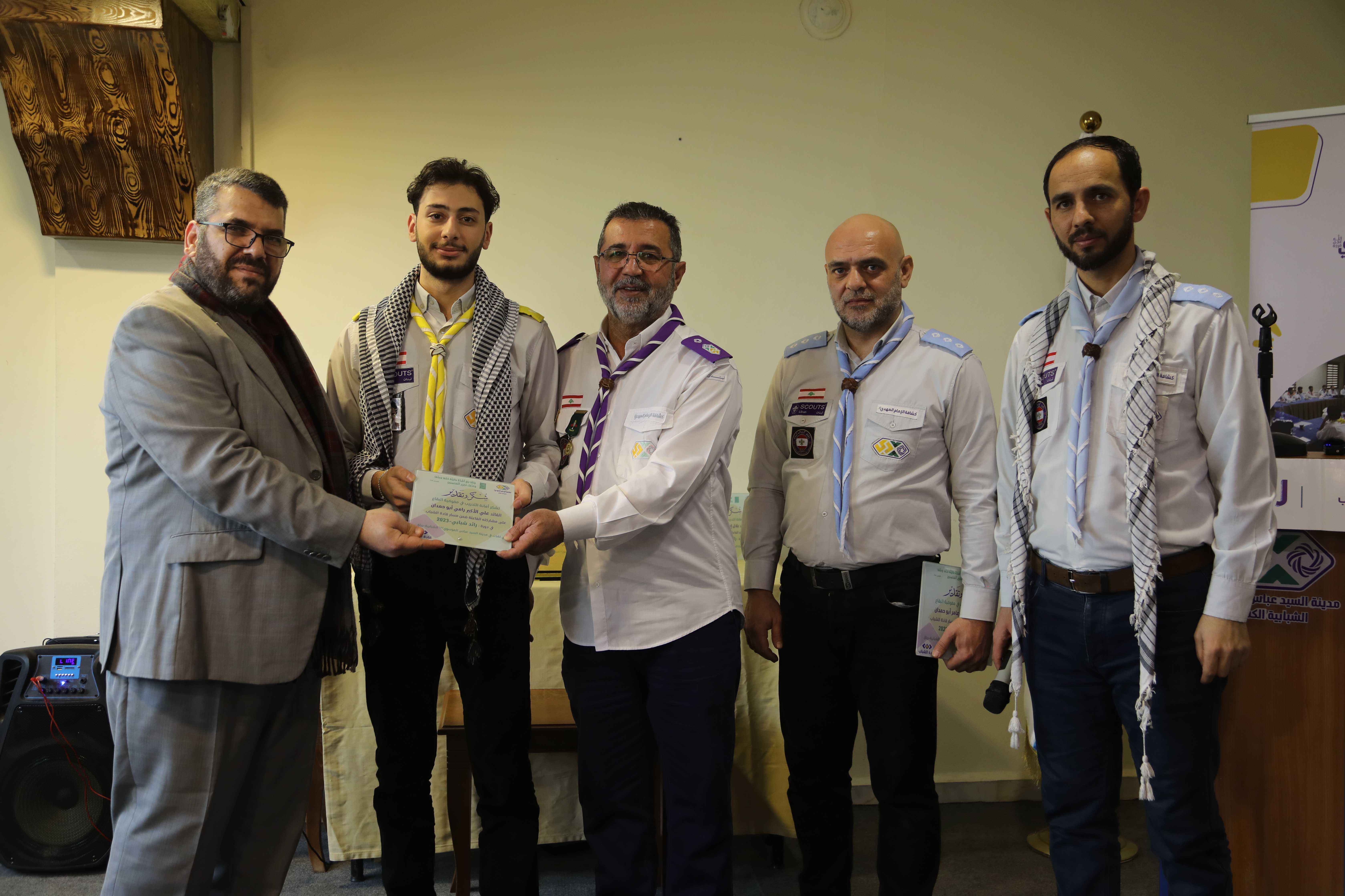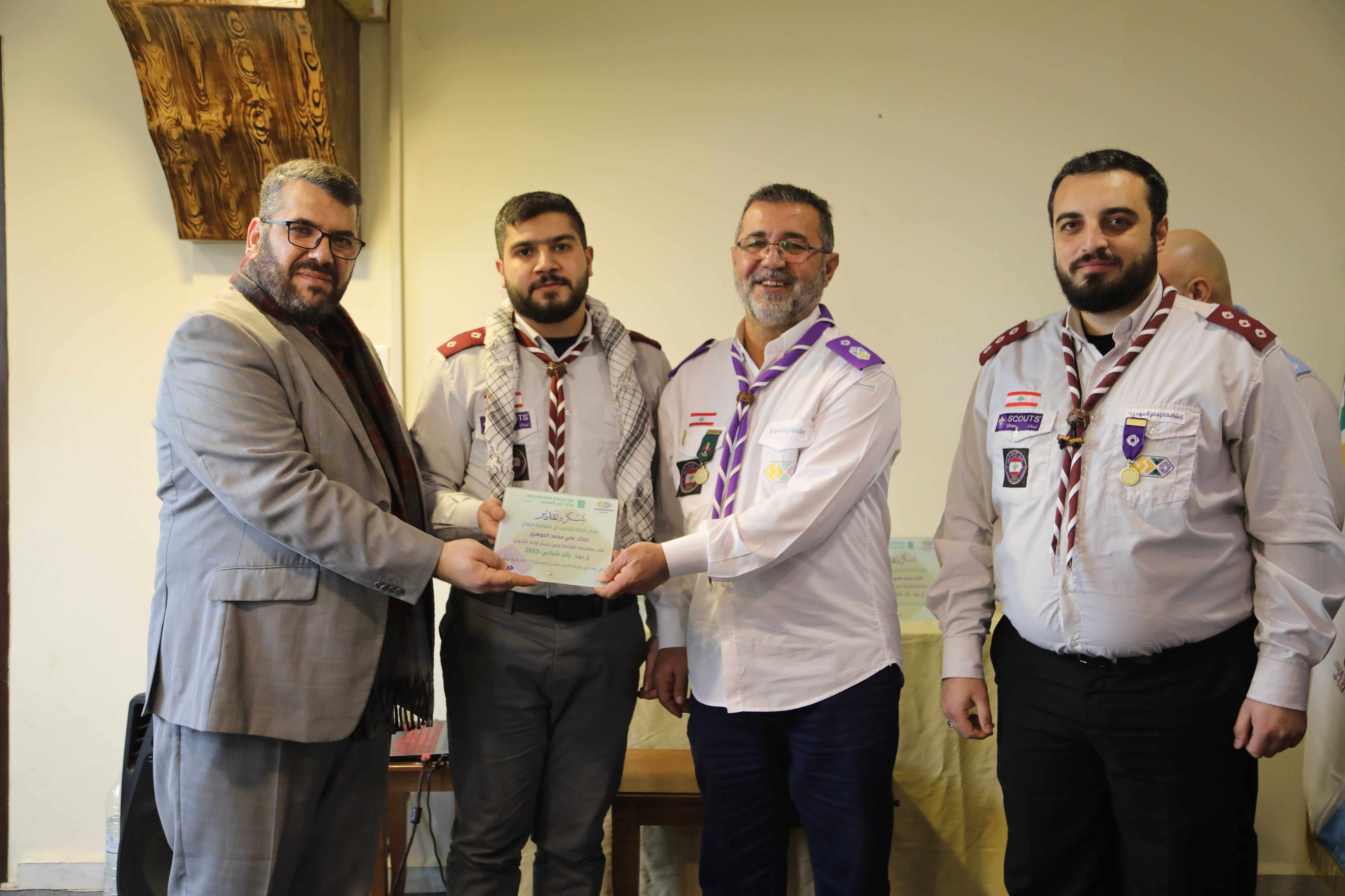 برعاية الدكتور علي رباح الباحث في الشأن السياسي وحضور أعضاء مفوضية البقاع وأعضاء الفريق التدريبي في القطاعات الكشفية، إختتمت أمانة التدريب في المفوضية فعاليات دورة رائد شبابي في مدينة السيد عباس الموسوي (رض) الشبابية الكشفية في رياق.