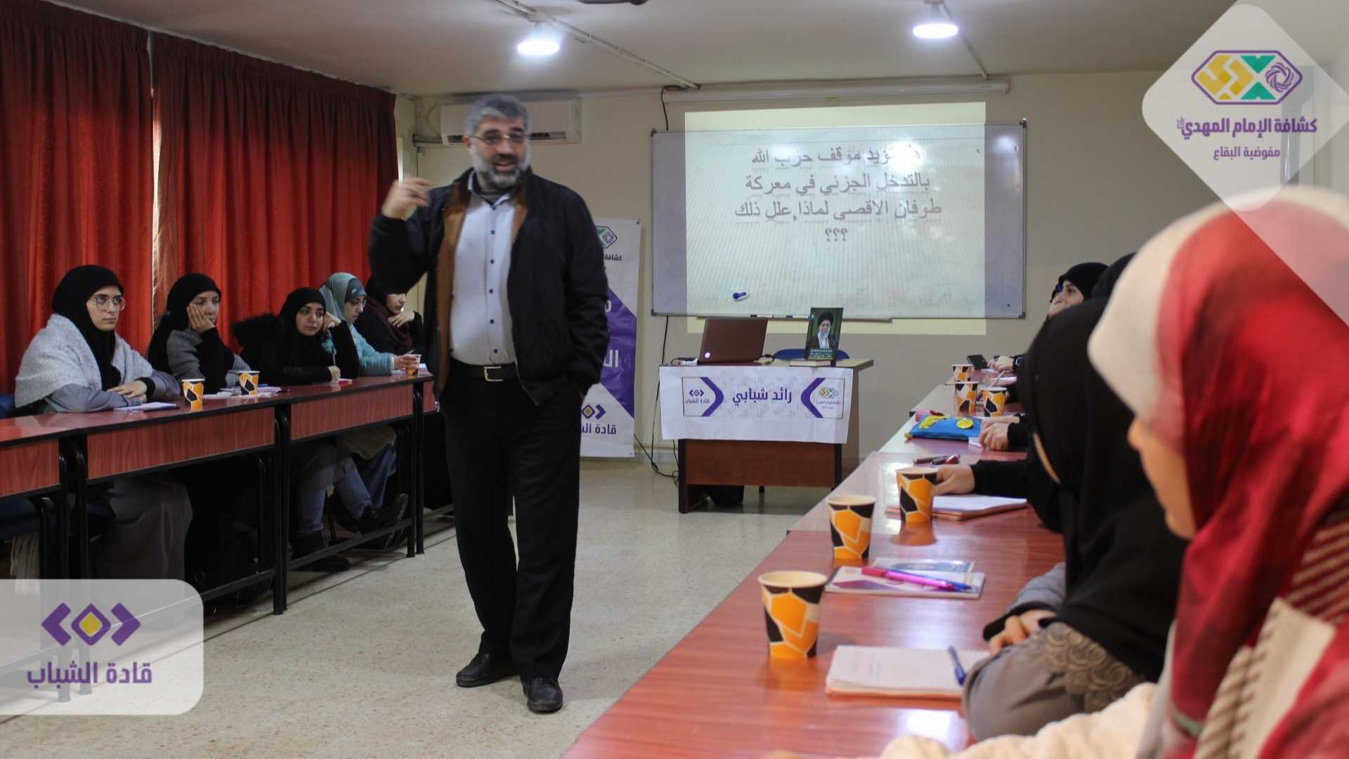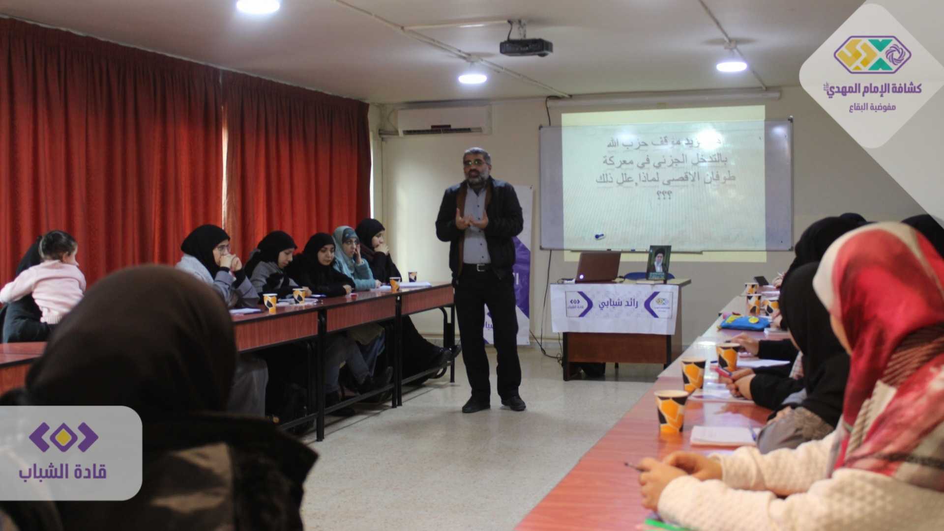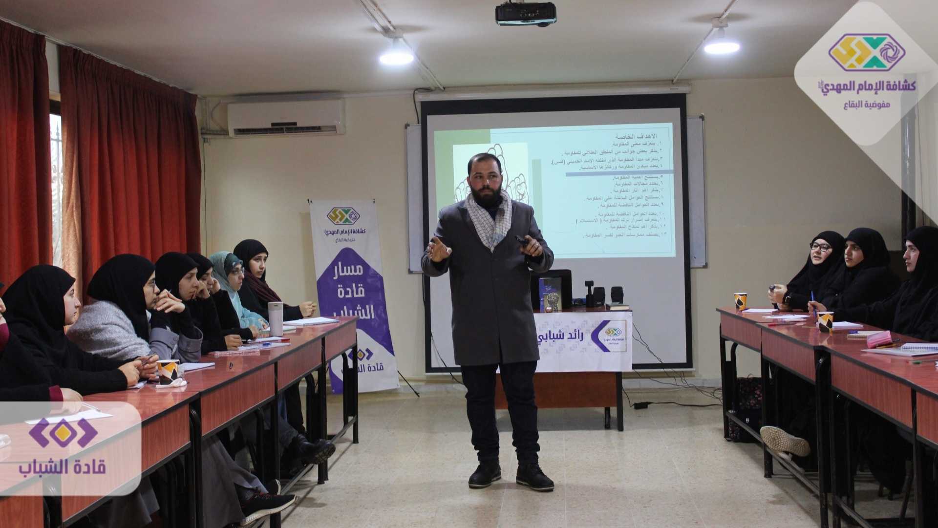 لتستقبل قيادة الدورة والمتدربات في اليوم الحضوري المدرب الحاج بلال ناصر الدين الذي قدم ورشة المواجهة مع الآخر، والمدرب الاخ علي الهق ليطل عبر ورشة حول نظرية المقاومة في فكر السيد القائد حفظه الله..ليكون ختام اليوم التدريبي حضور معاون وحده النقابات الاستاذ حسن سيف الدين الذي قدم تجربة القيادة الحكيمة مع ملف النقابات في الدولة اللبنانية وكانت ورشة مميزة وجديده من كل النواحي للمتدربات..