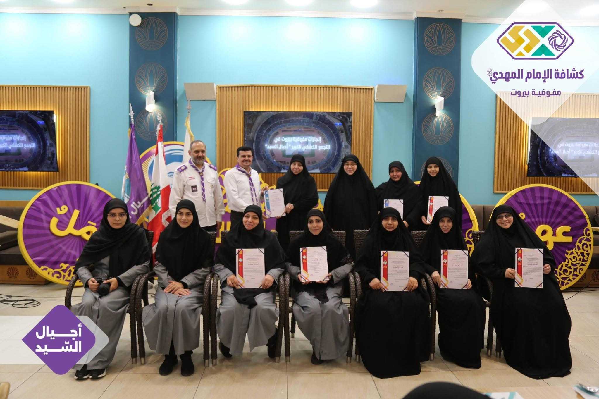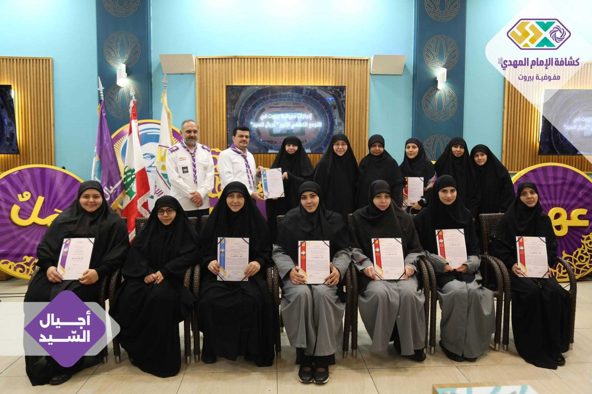برعايةٍ وحضور رئيس الجمعيّة الشّيخ نزيه فياض، أقامت مفوضيّة بيروت لقاءً تكريميًّا خاصًّا بالتّجمّع الكشفيّ الكبير “أجيال السّيد”، وذلك في قاعة مطعم الصّنوبرة في المشرفيّة، بحضور مسؤولة الهيئات النّسائية في منطقة بيروت، ومسؤولات الهيئات النّسائية في القطاعات، فضلًا عن أعضاء مفوضيّة مرشدات بيروت، وعميدات الأفواج، وأعضاء اللّجان العاملة في التّجمّع الكشفيّ الكبير.