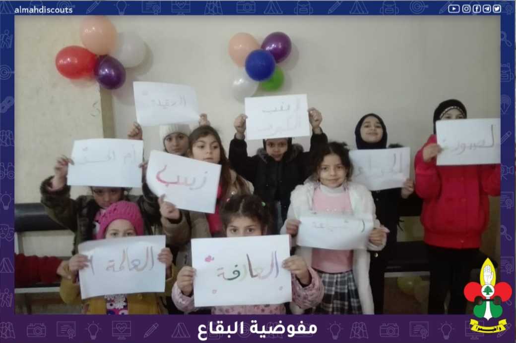 أحيا فوج السيدة زينب/ القطاع الغربي ببراعمه وزهراته ذكرى ولادة السيدة زينب عليها السلام... كان الافتتاح بالقرآن الكريم وبعدها سرد مقتطفات من حياة بطلة كربلاء، ثم قامت الكشفيات بتلوين ألقابها عليها السلام ليكون المولد المبارك ختاماً لنشاطهن مع الحلوى ودعاء الحجة...