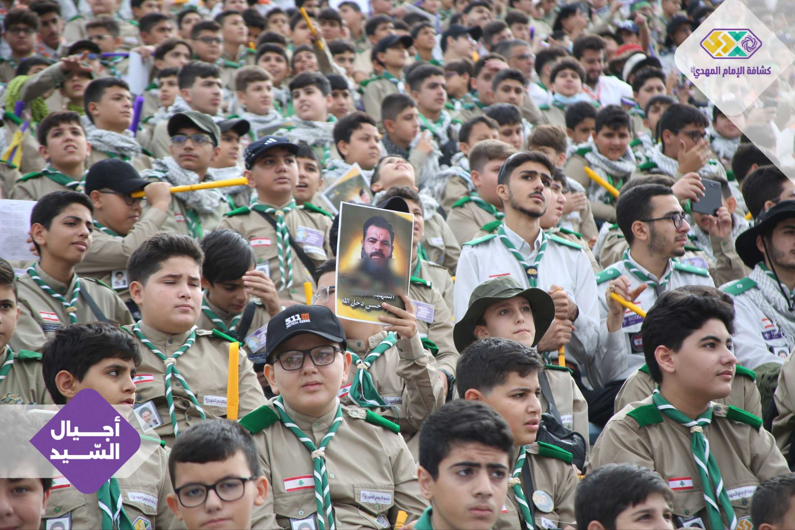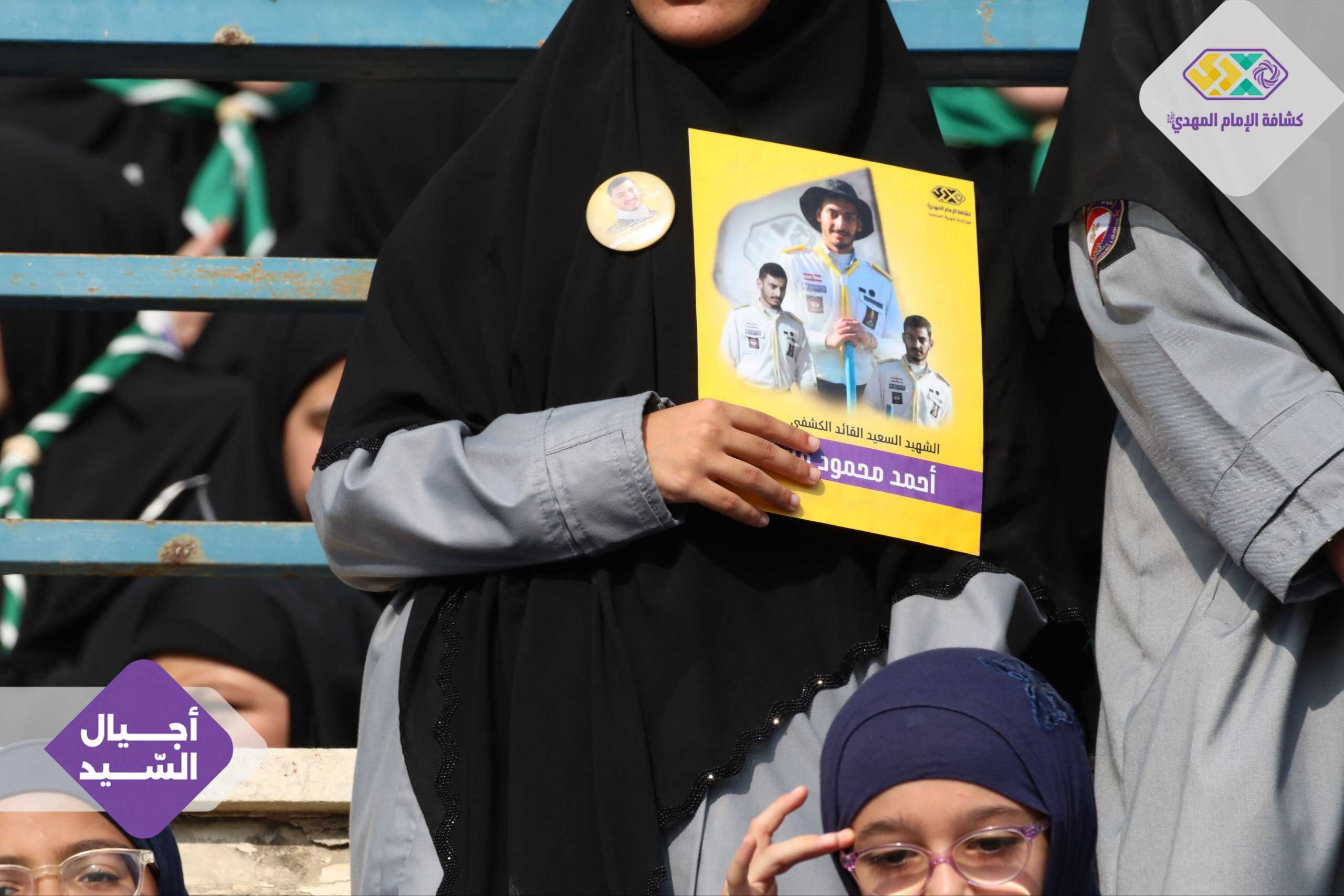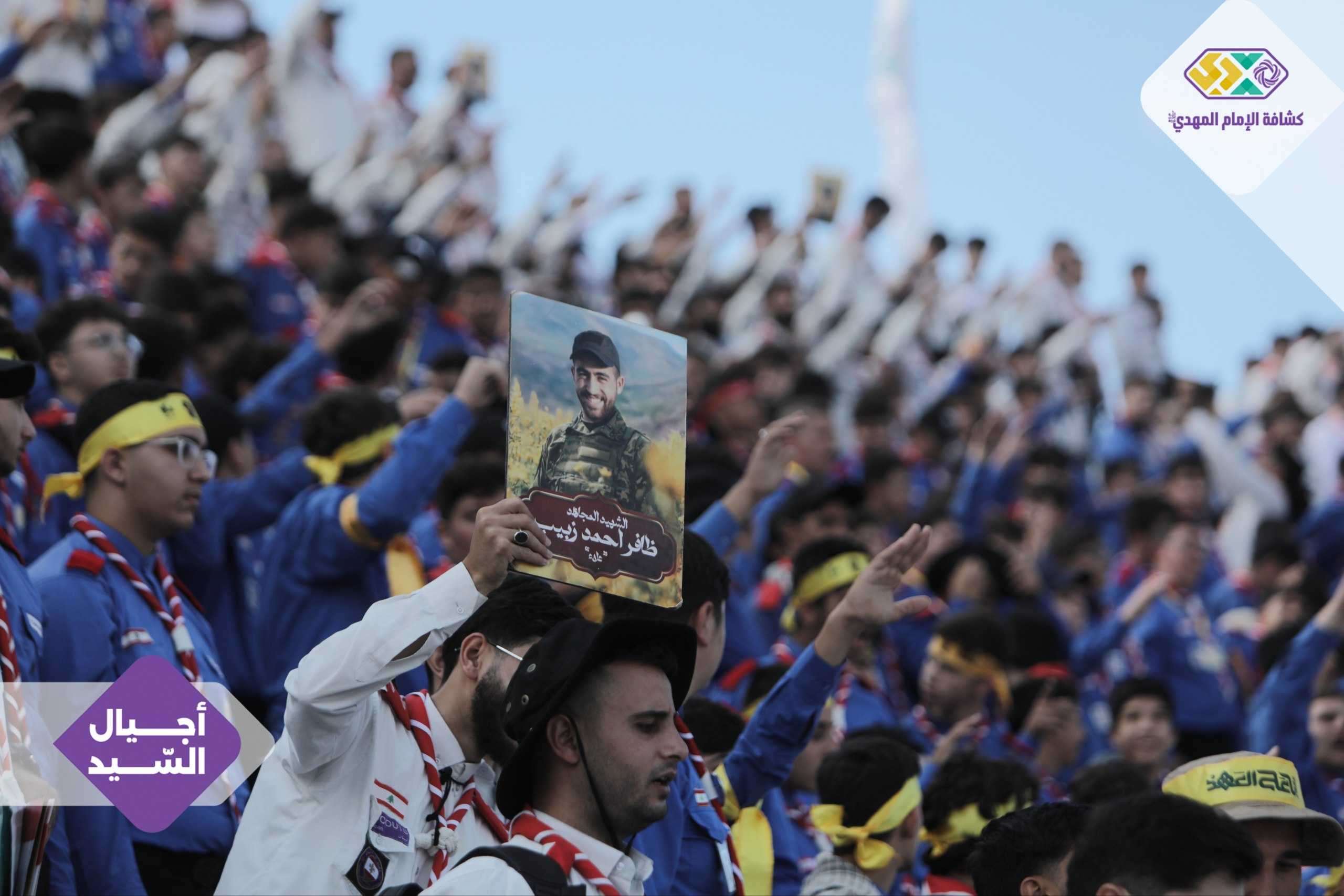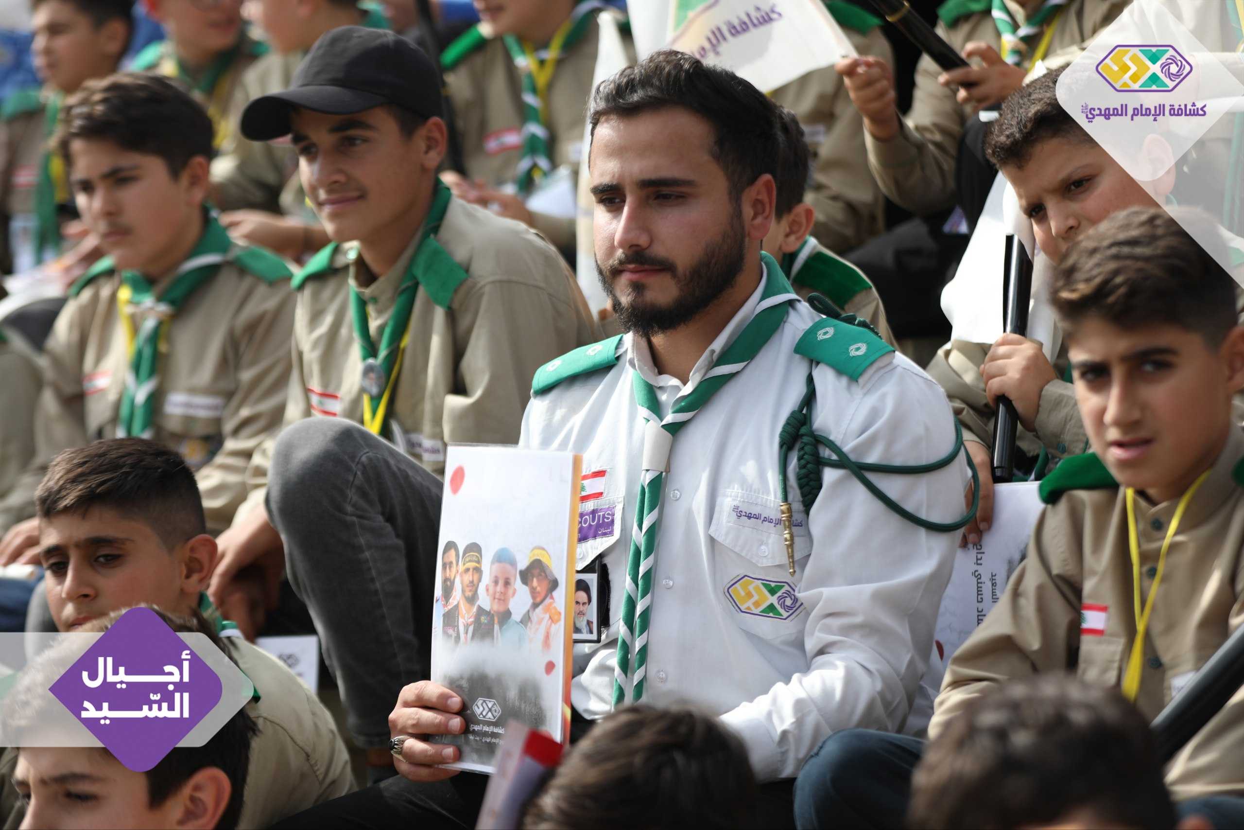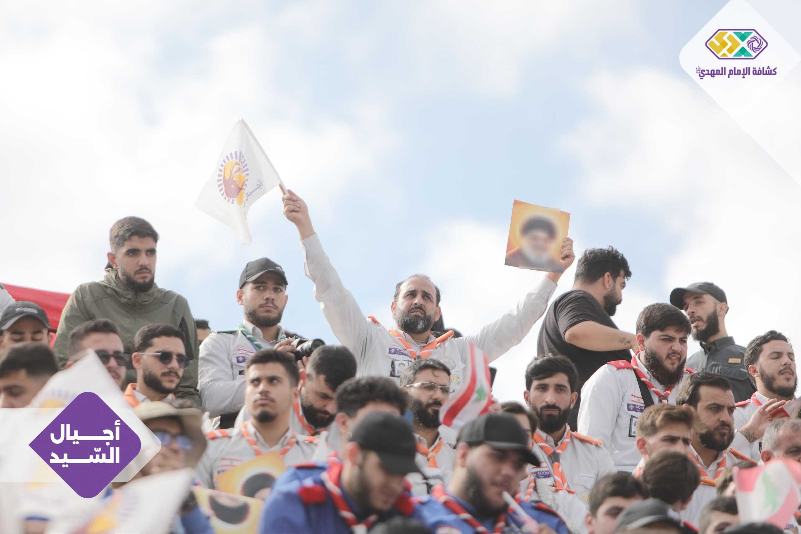 من صور المشاركين في التجمع الكشفي الكبير "أجيال السيد"، حاملين صور السعداء
