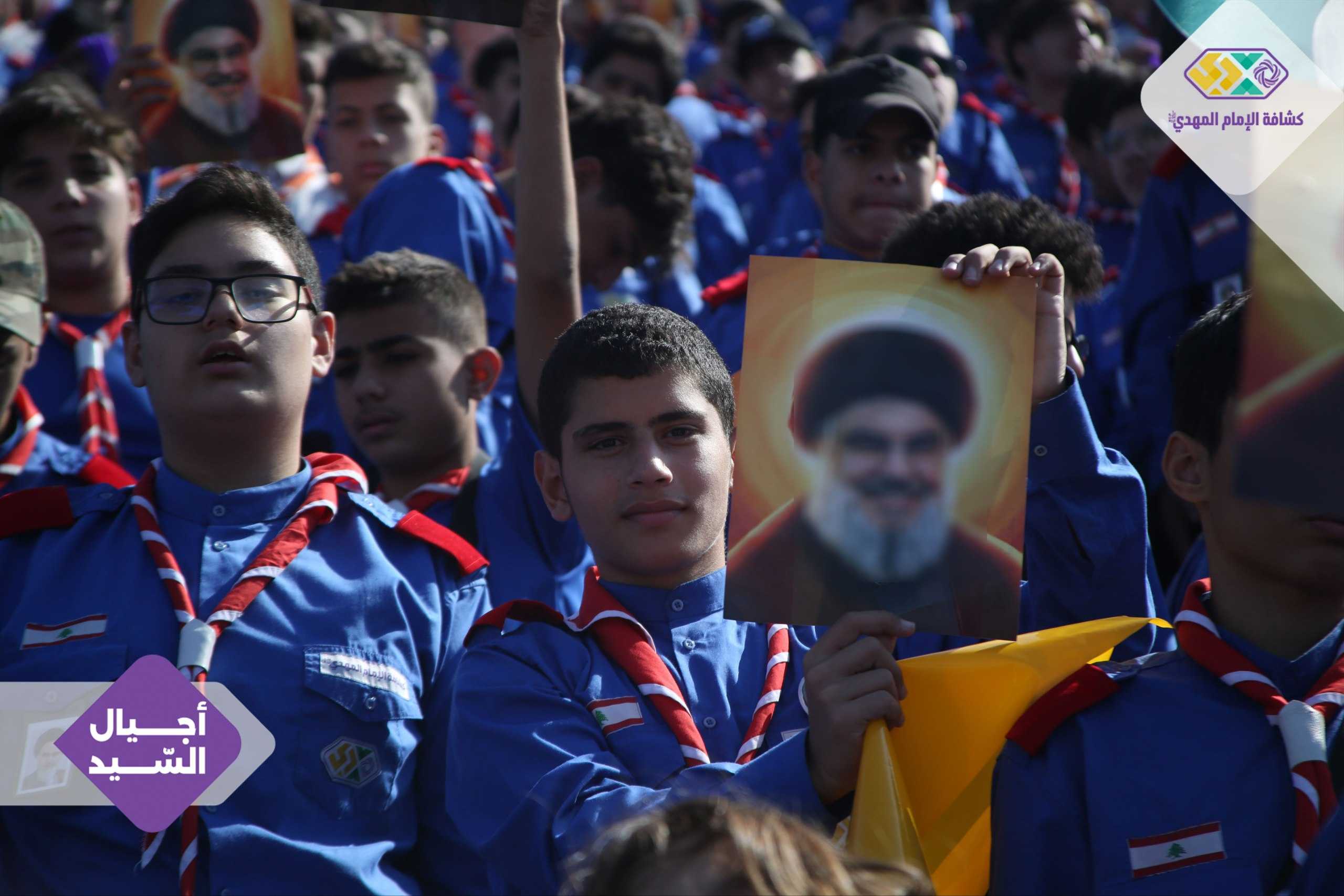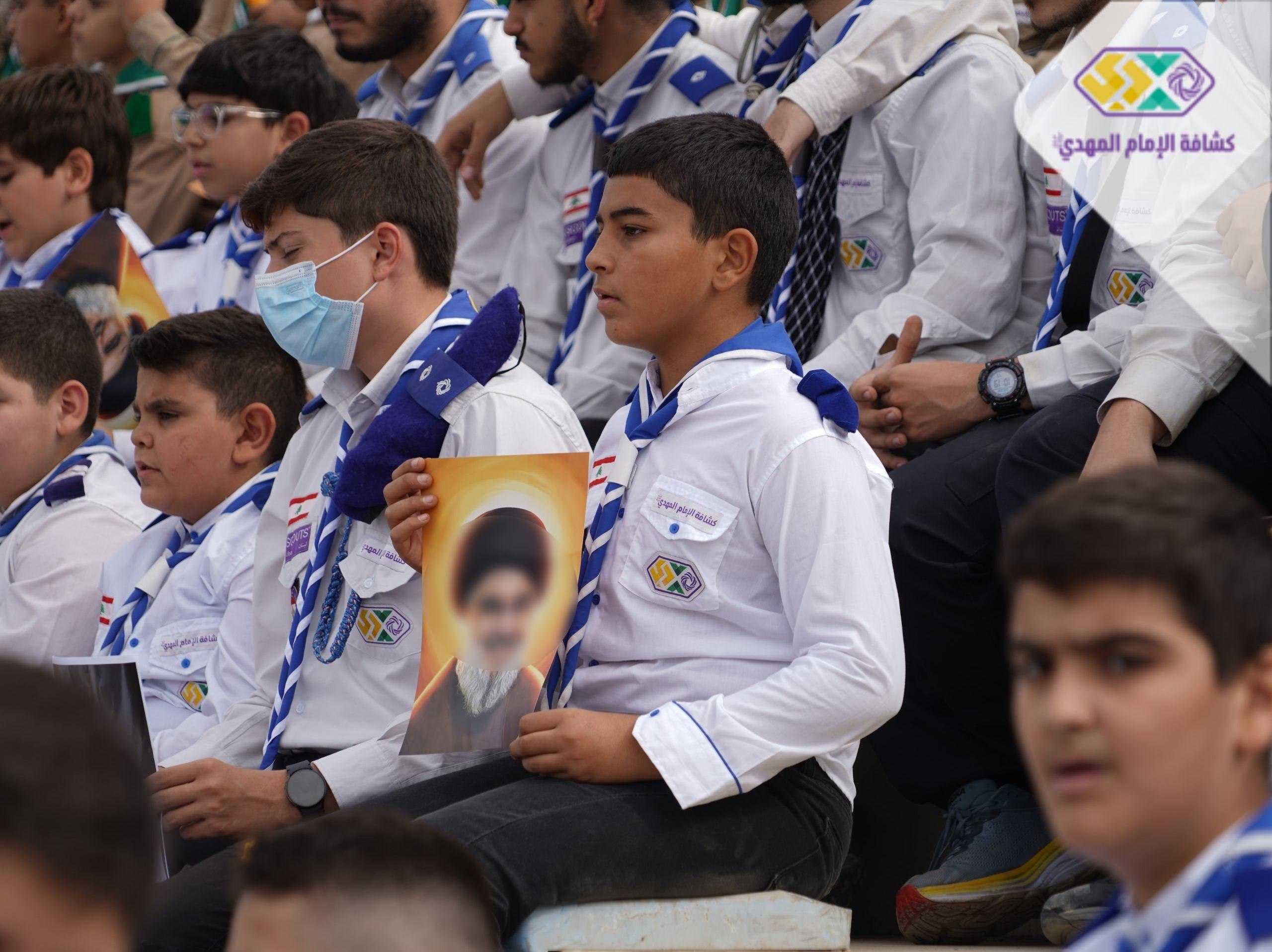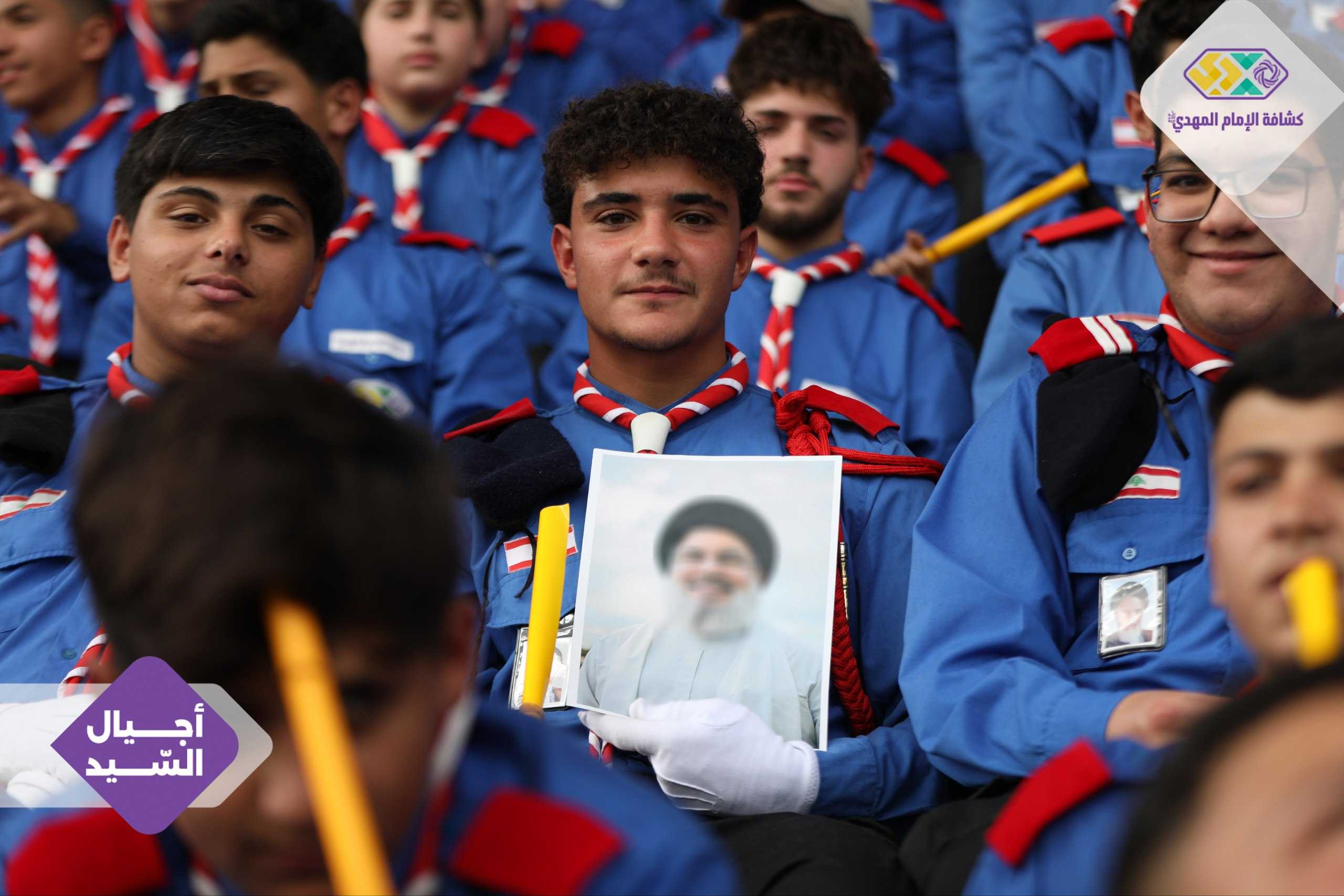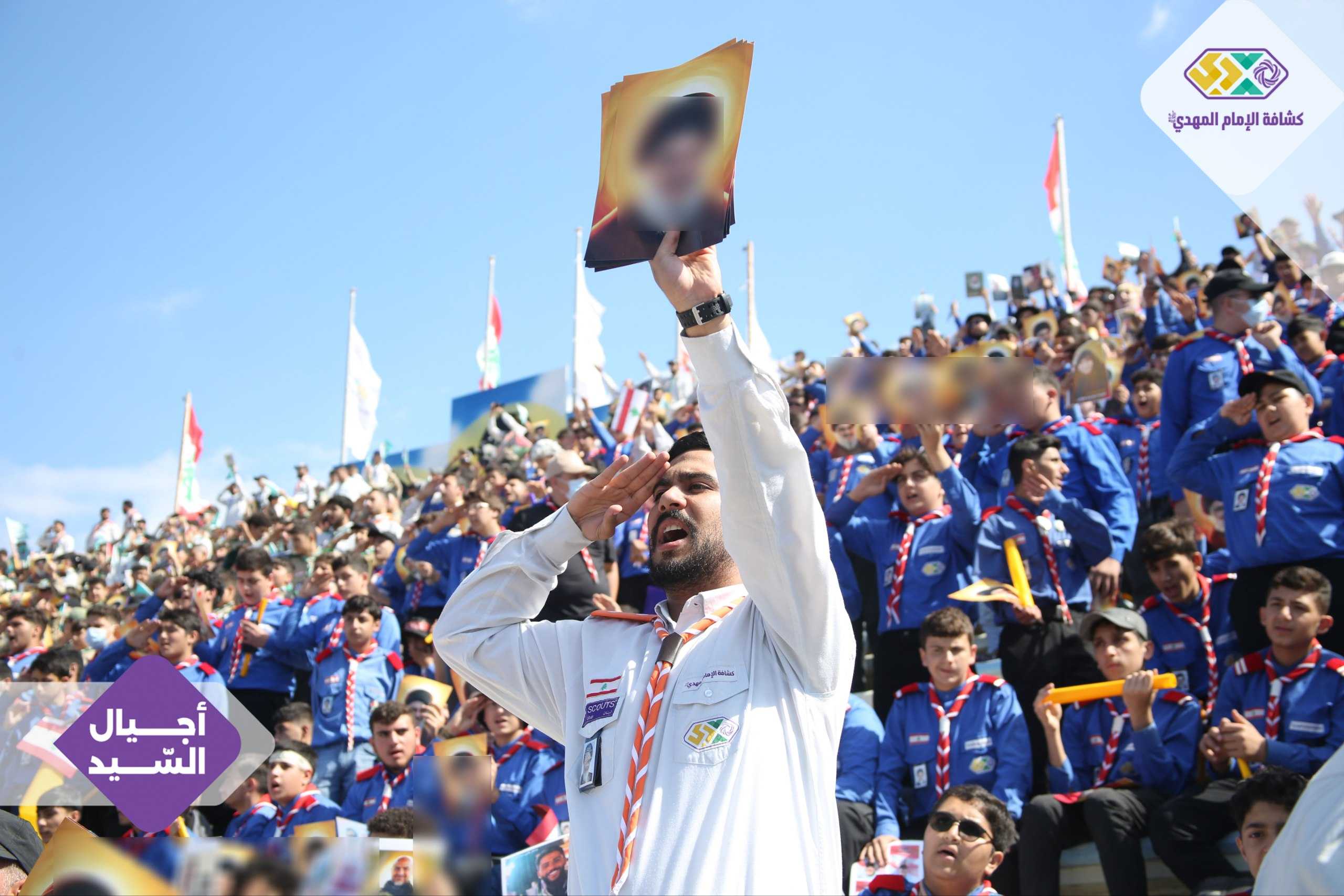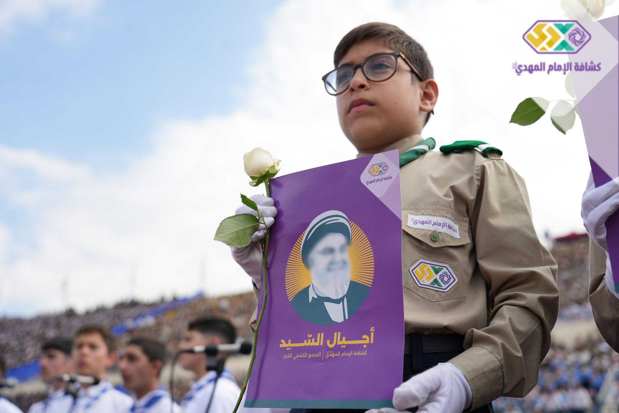 من صور المشاركين في التجمع الكشفي الكبير "أجيال السيد"، حاملين صور السعداء