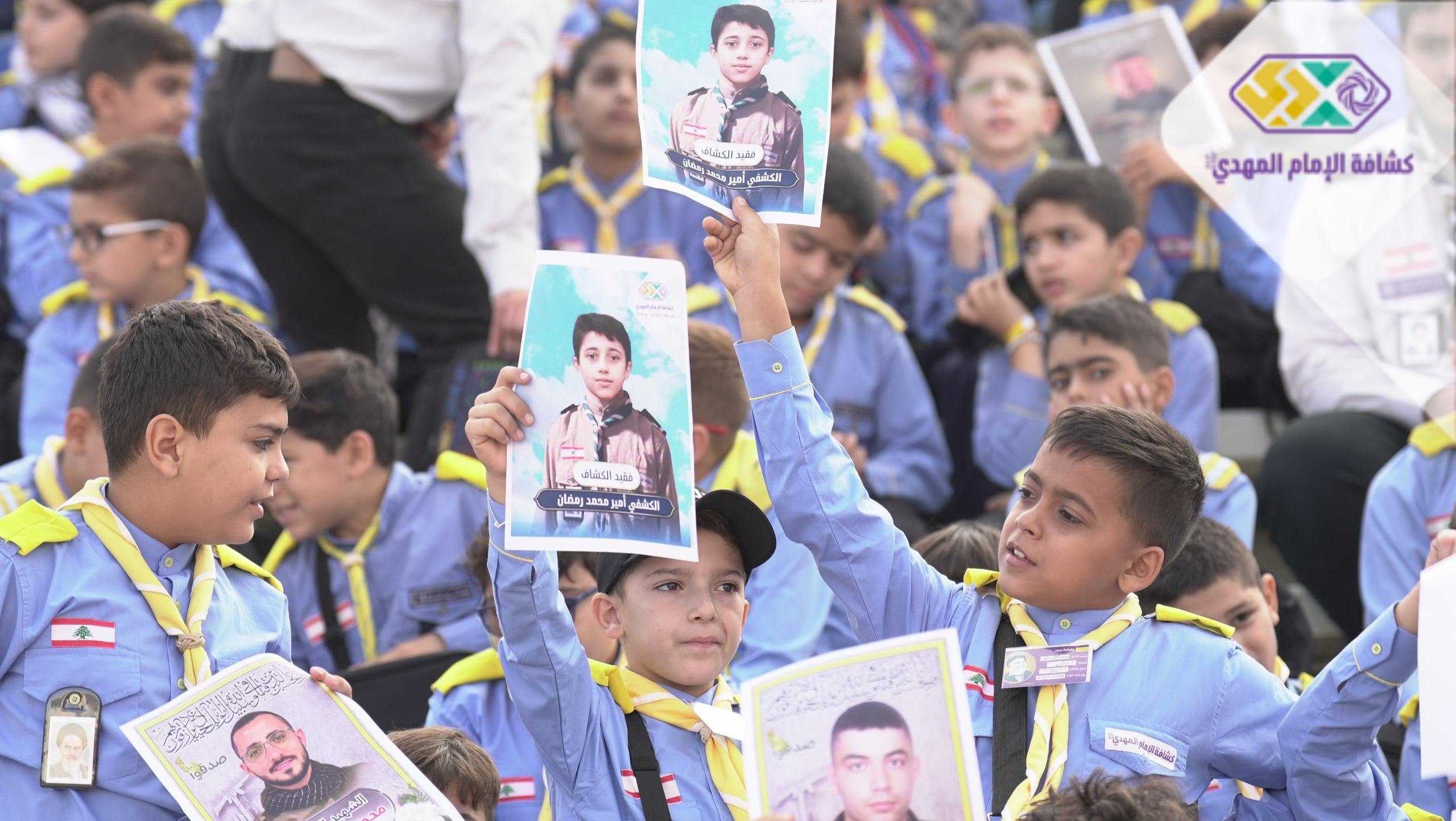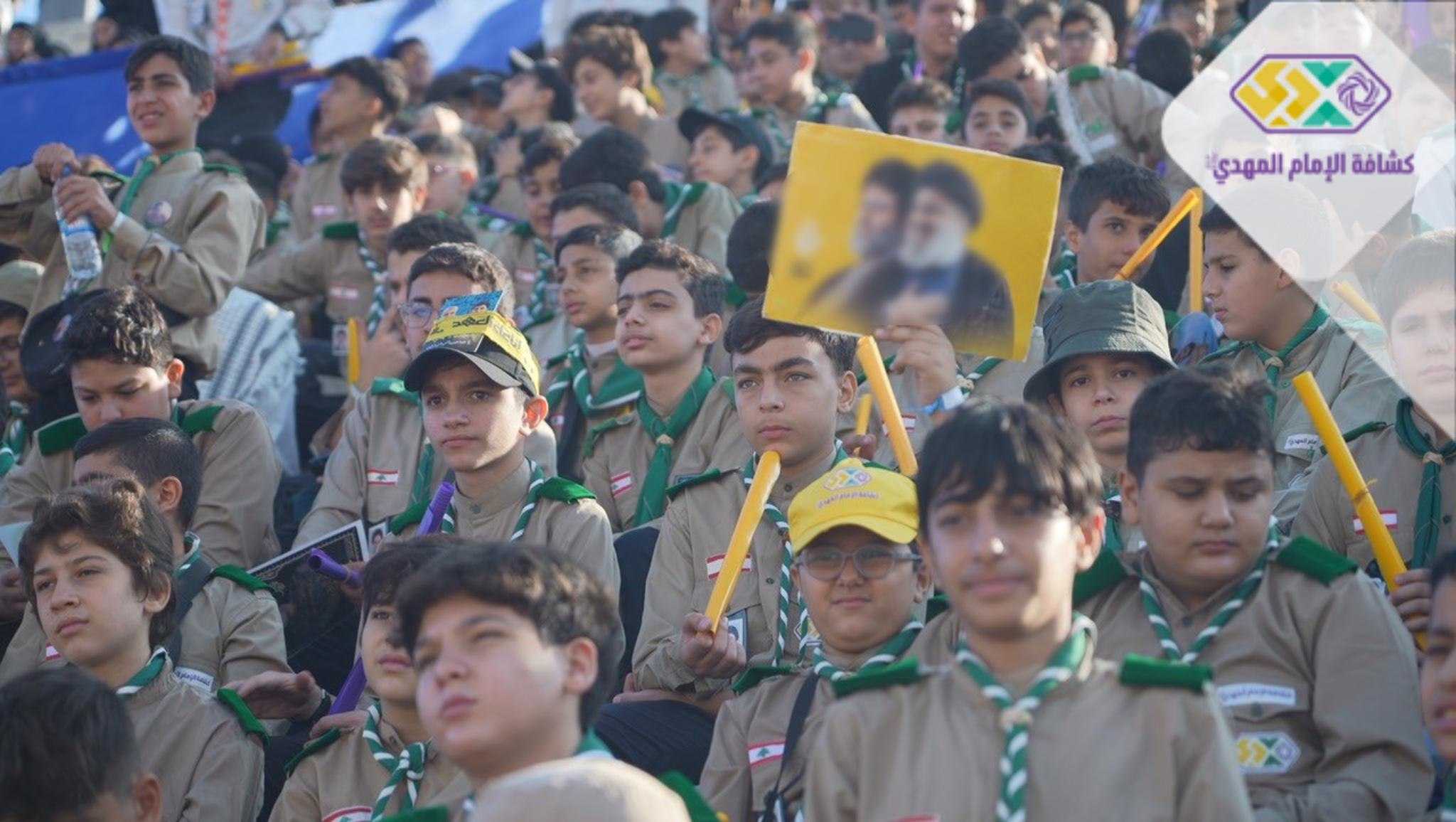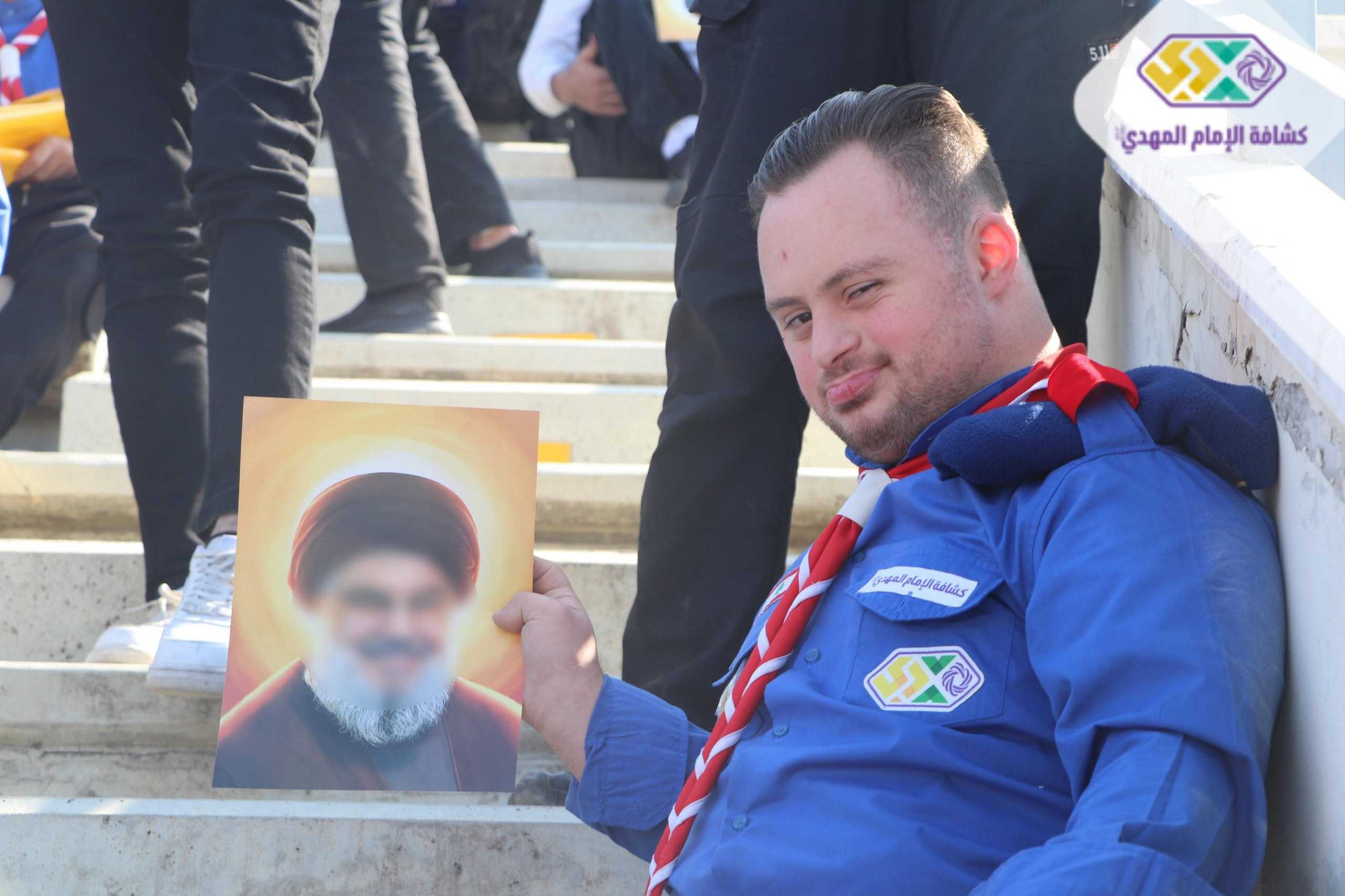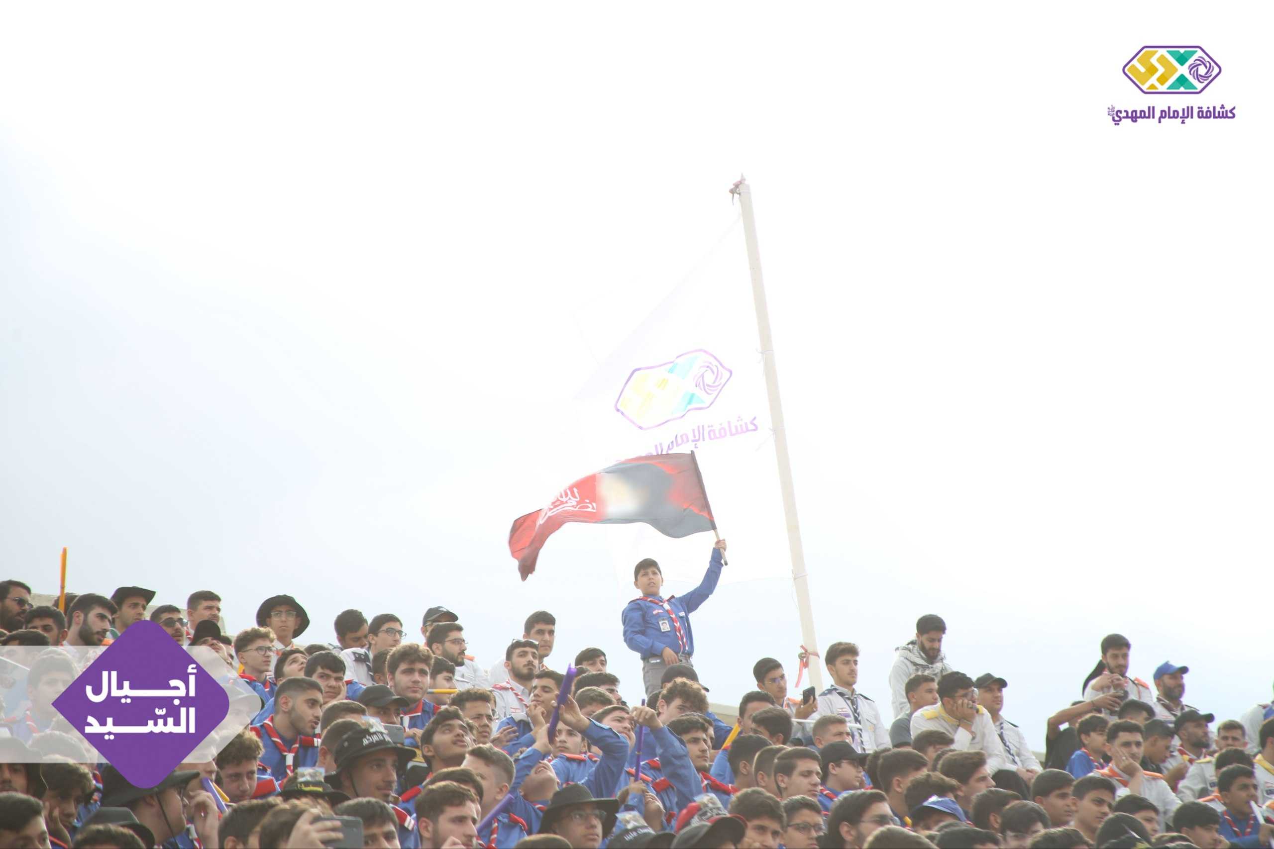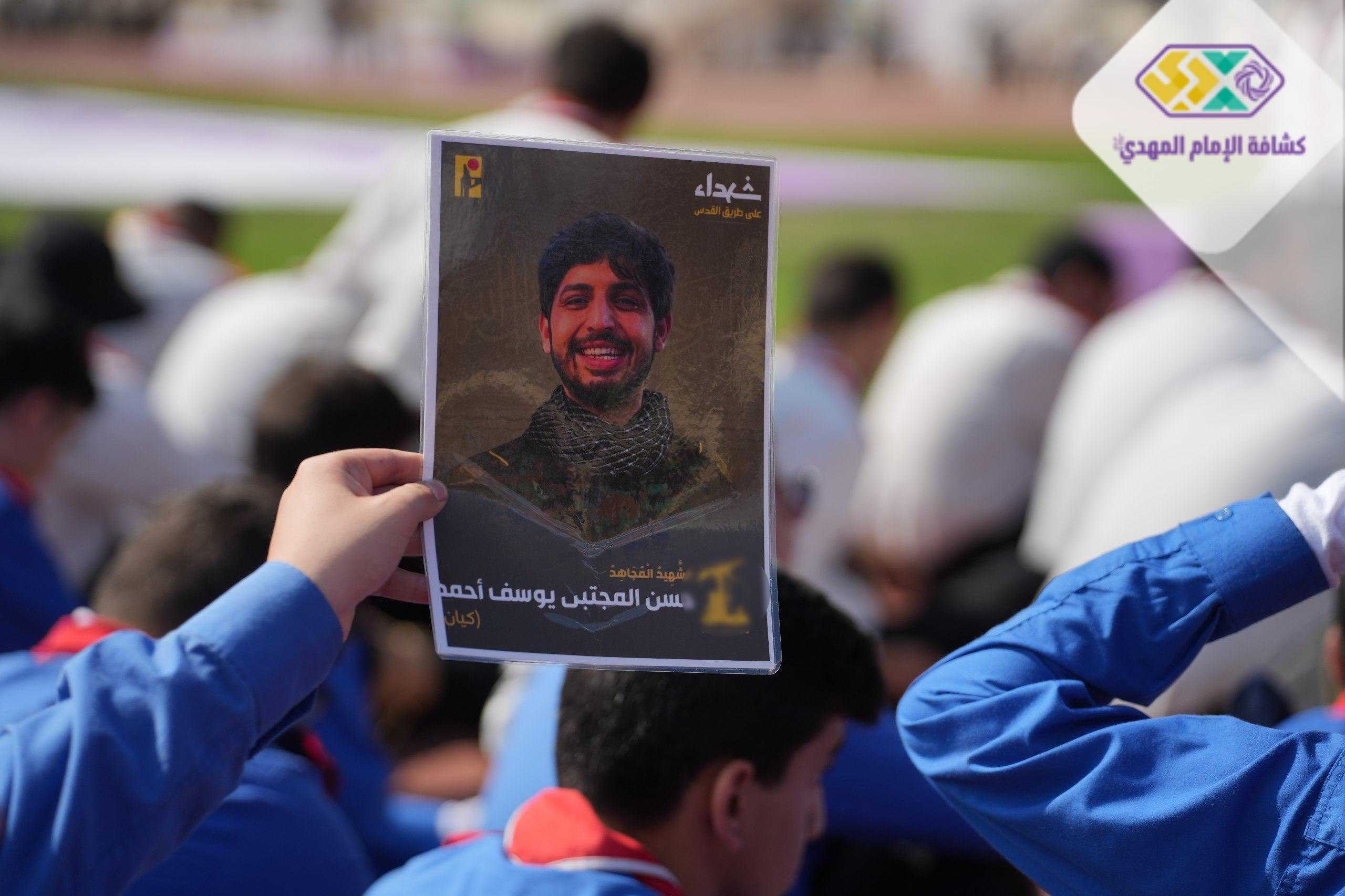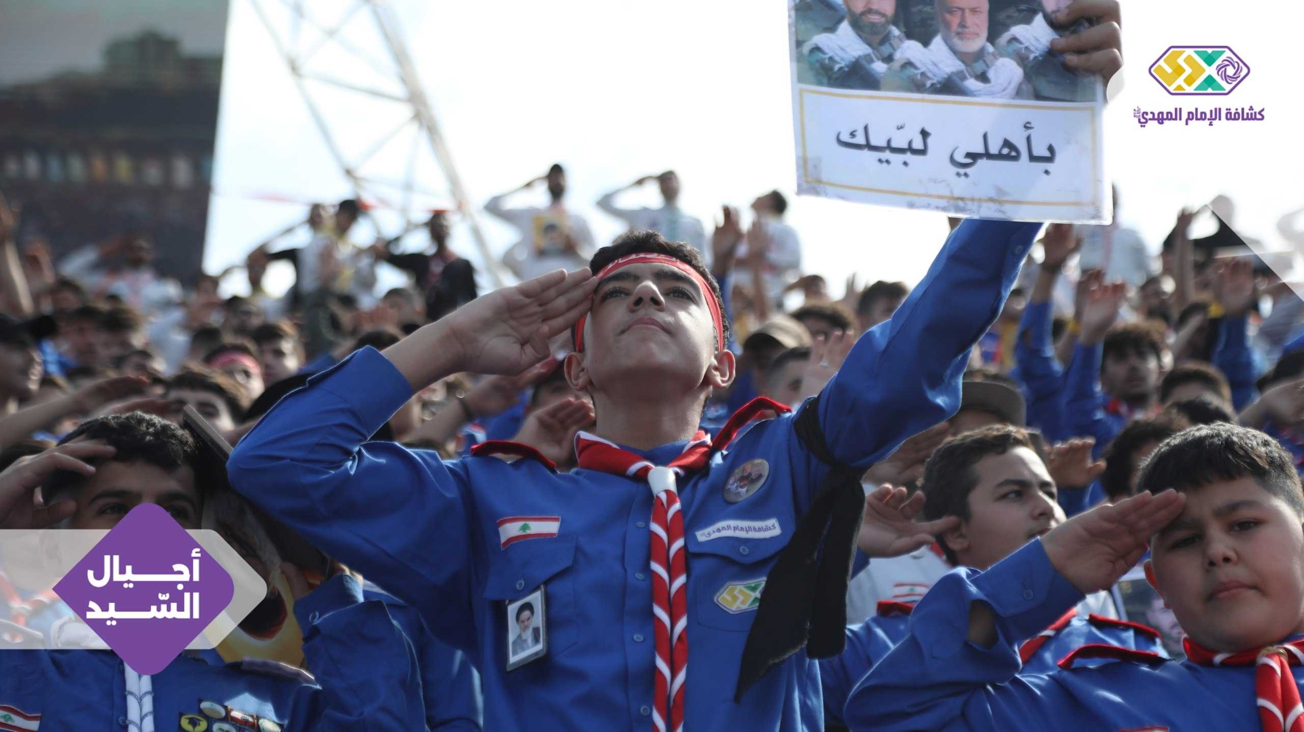 من صور المشاركين في التجمع الكشفي الكبير "أجيال السيد"، حاملين صور السعداء