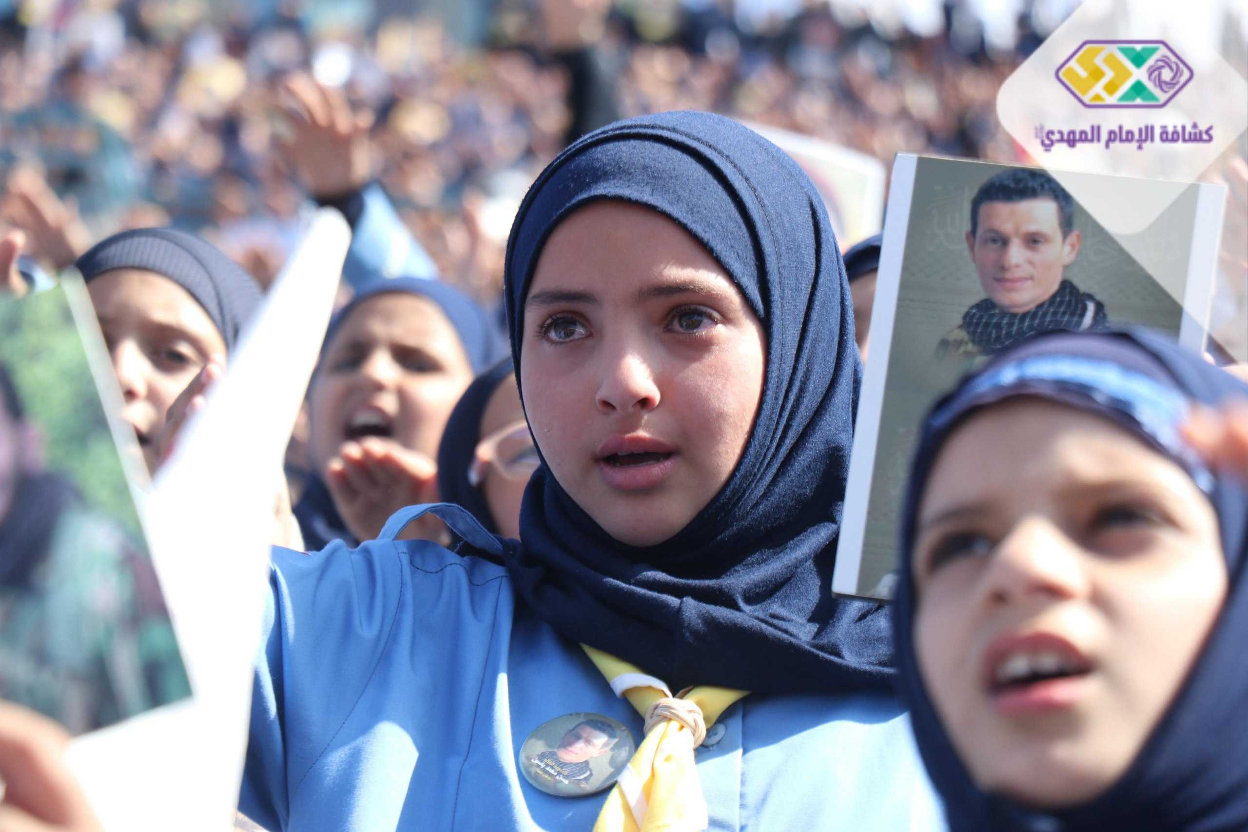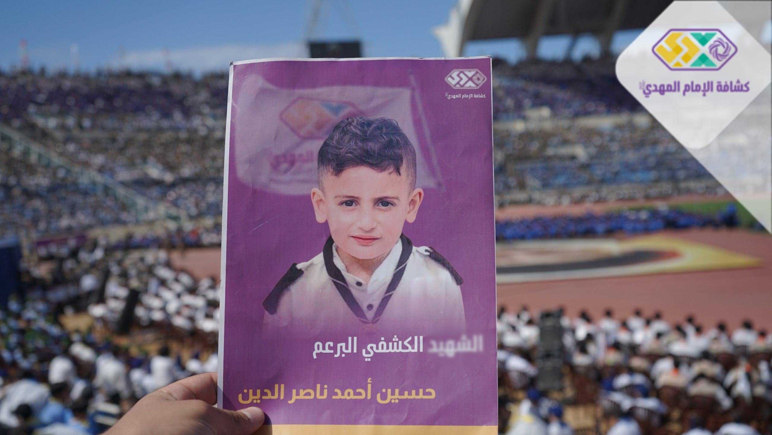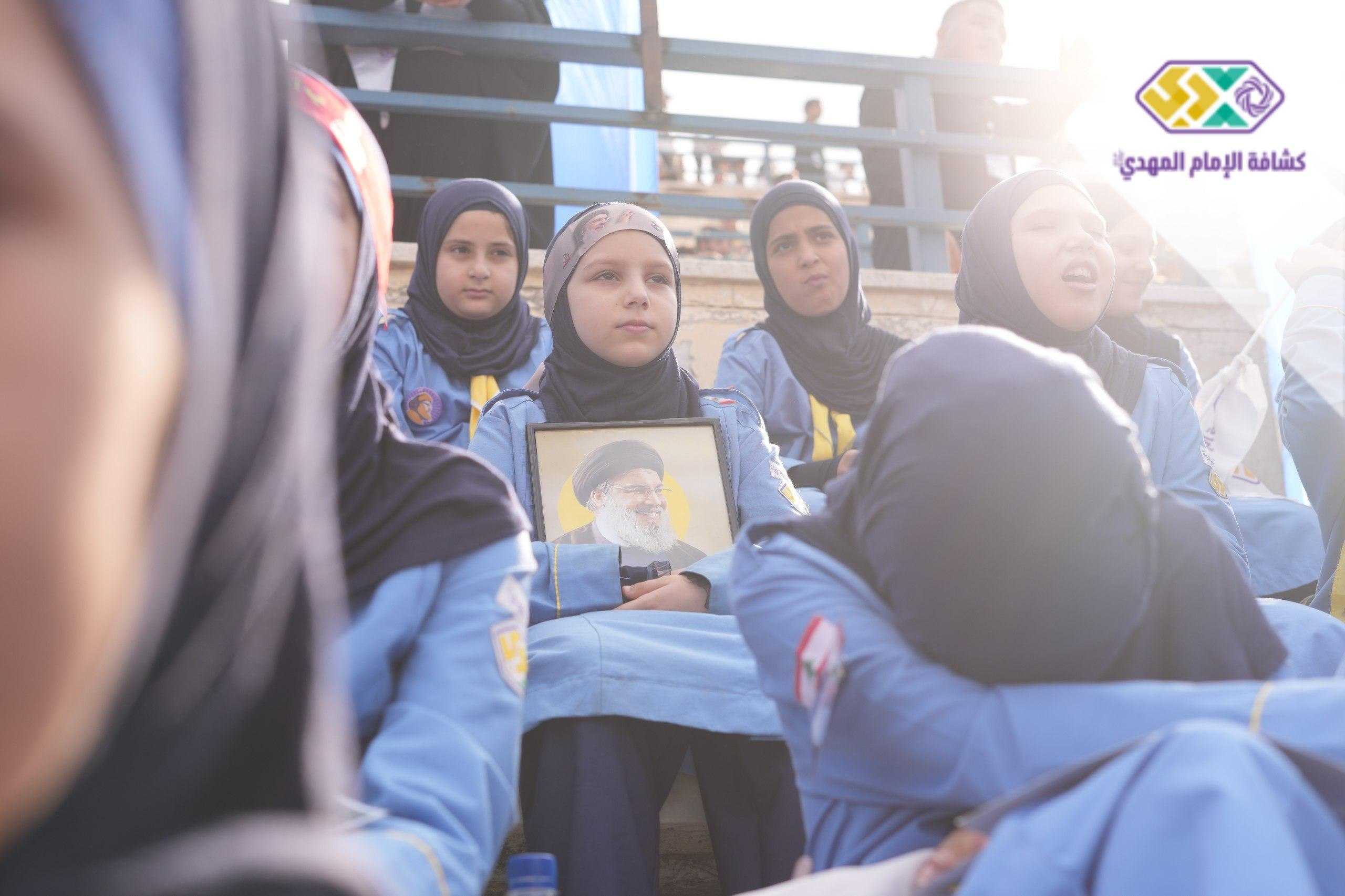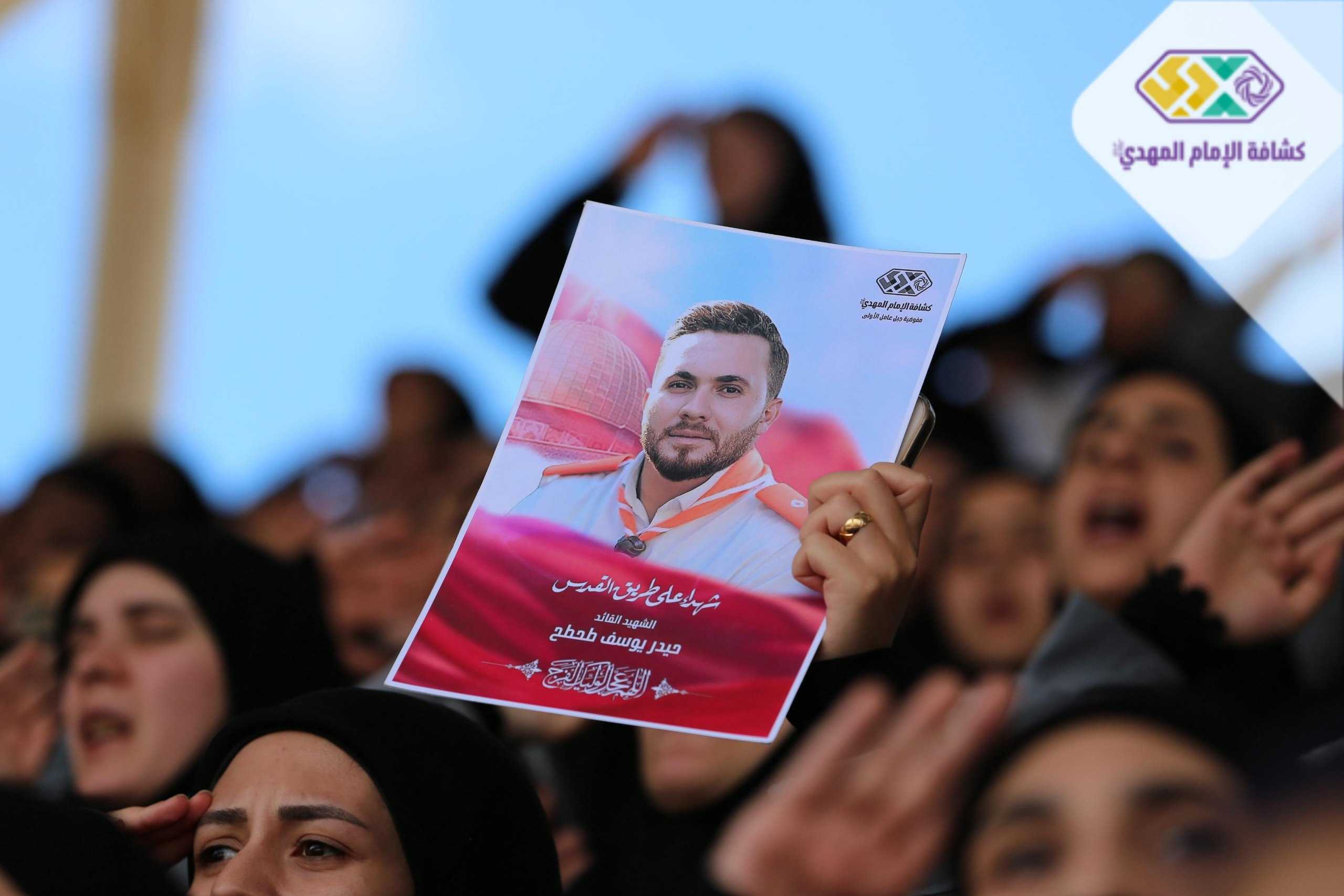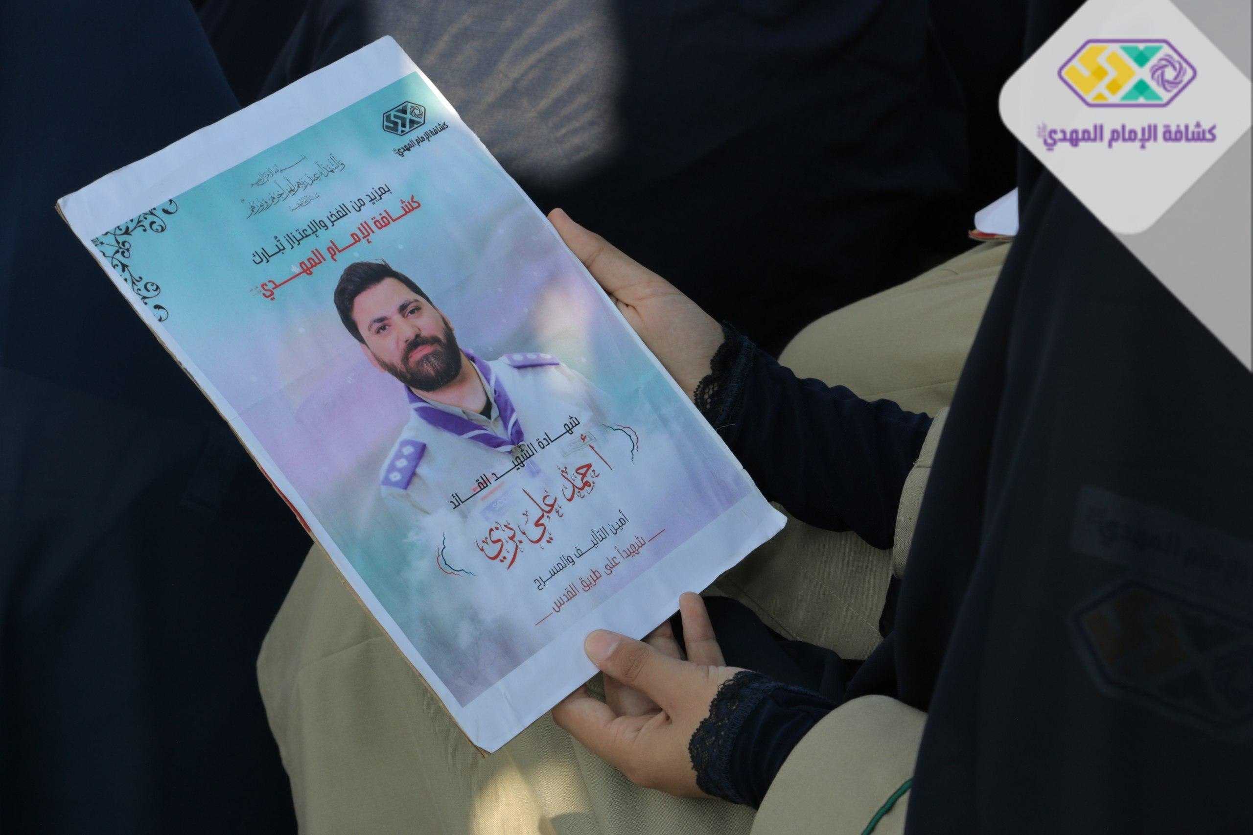 من صور المشاركين في التجمع الكشفي الكبير "أجيال السيد"، حاملين صور السعداء