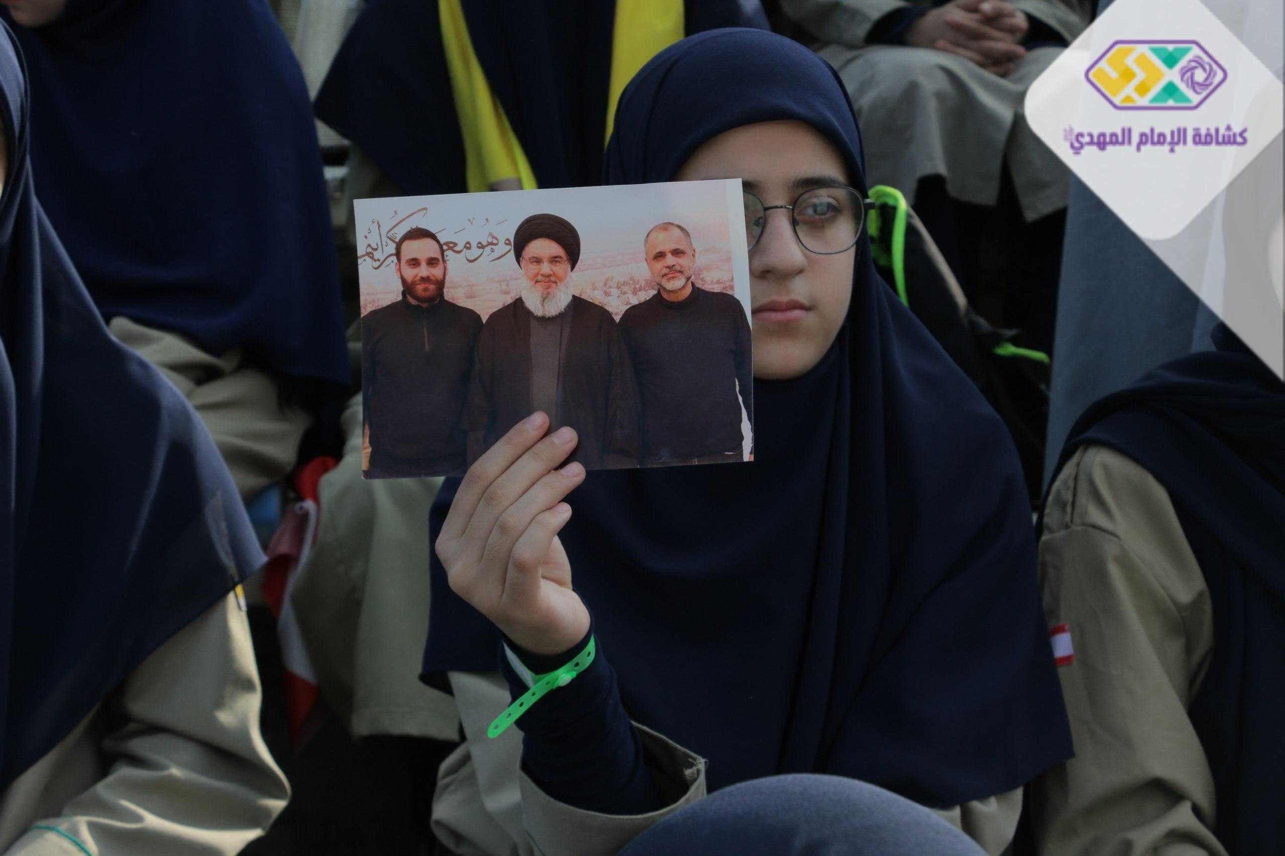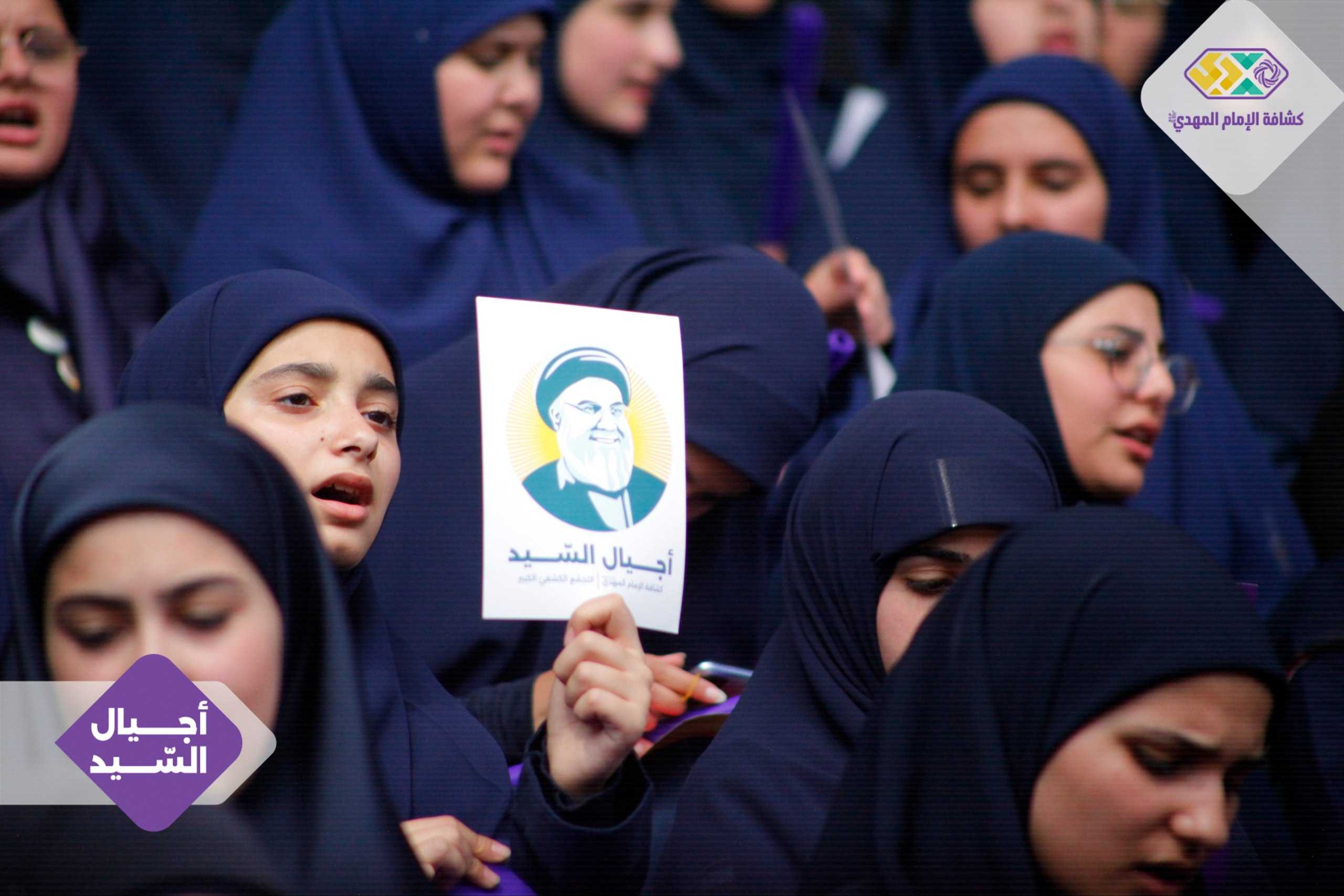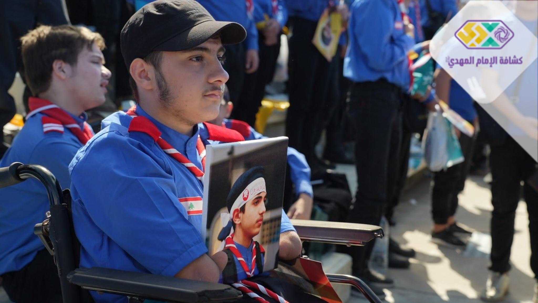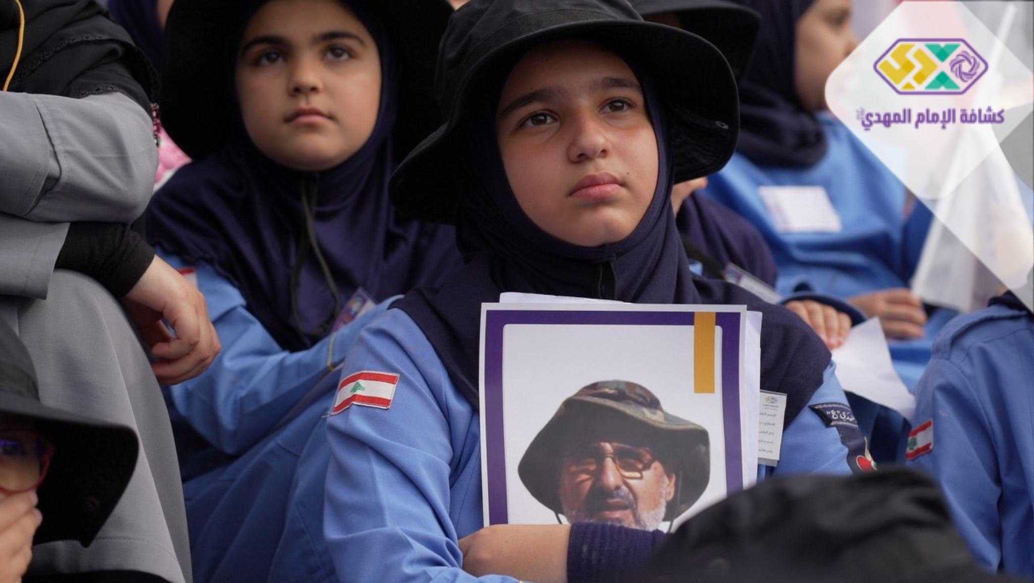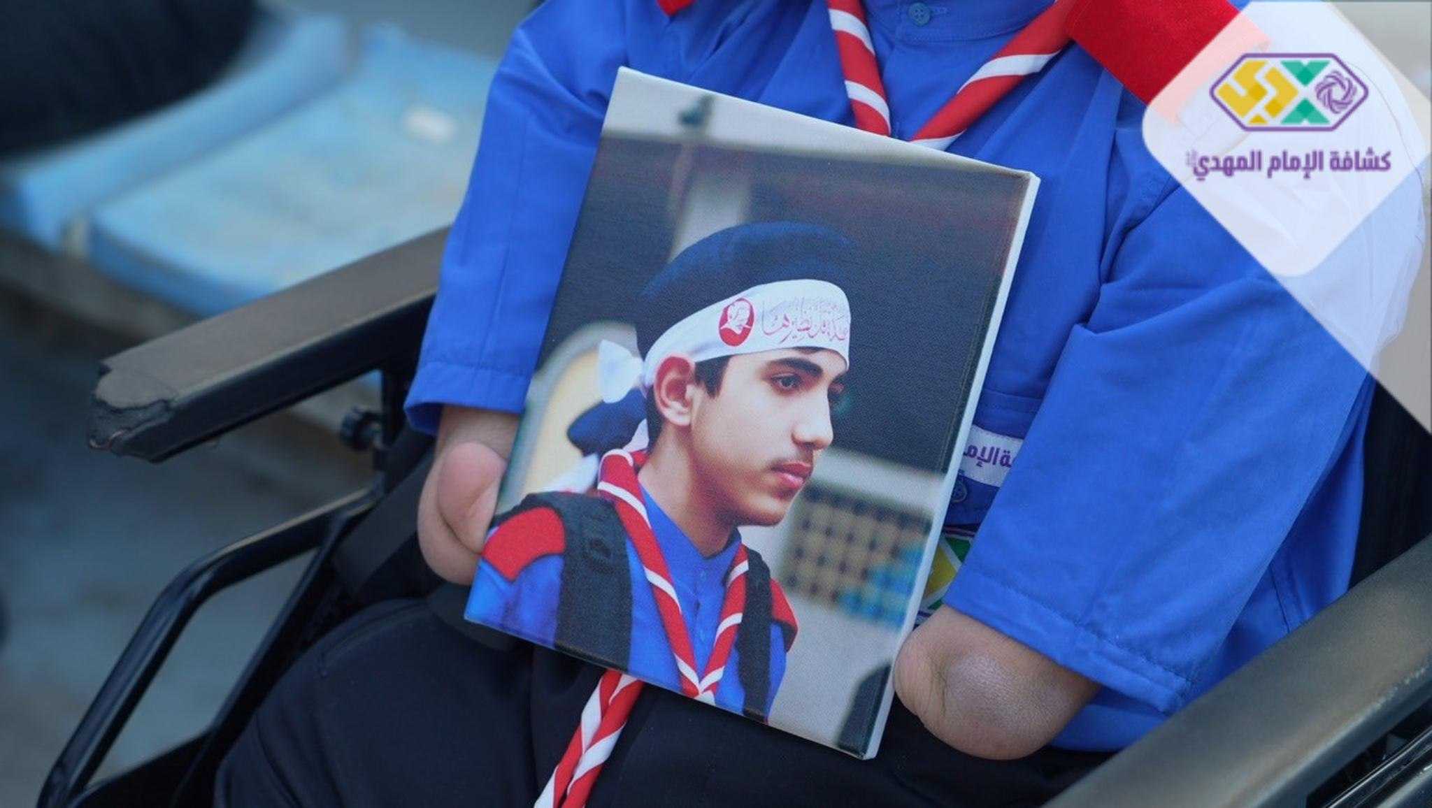 من صور المشاركين في التجمع الكشفي الكبير "أجيال السيد"، حاملين صور السعداء