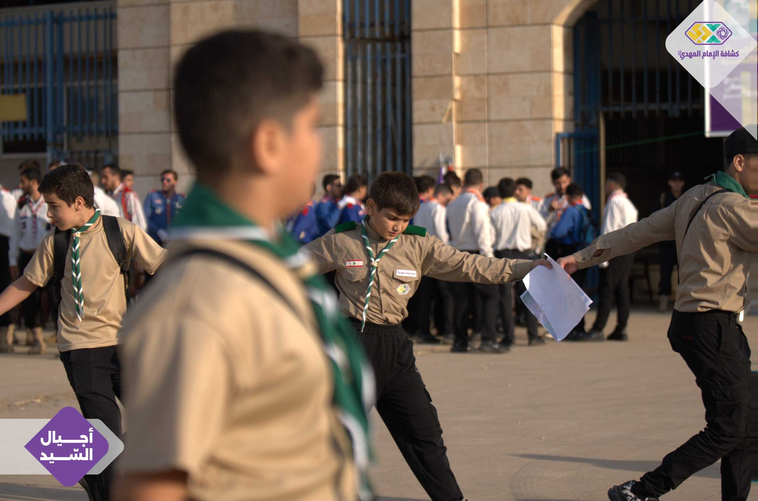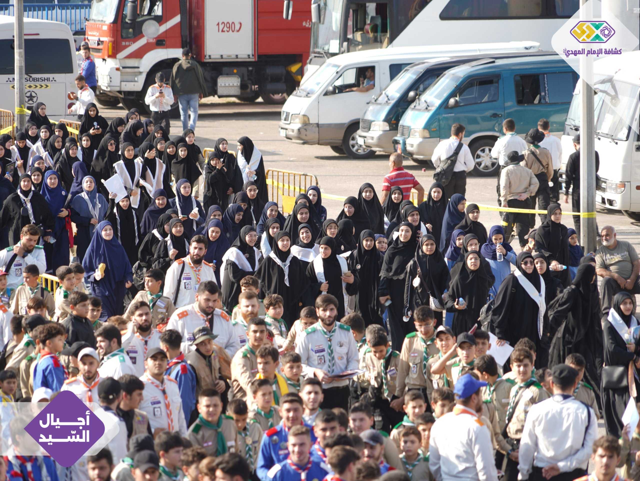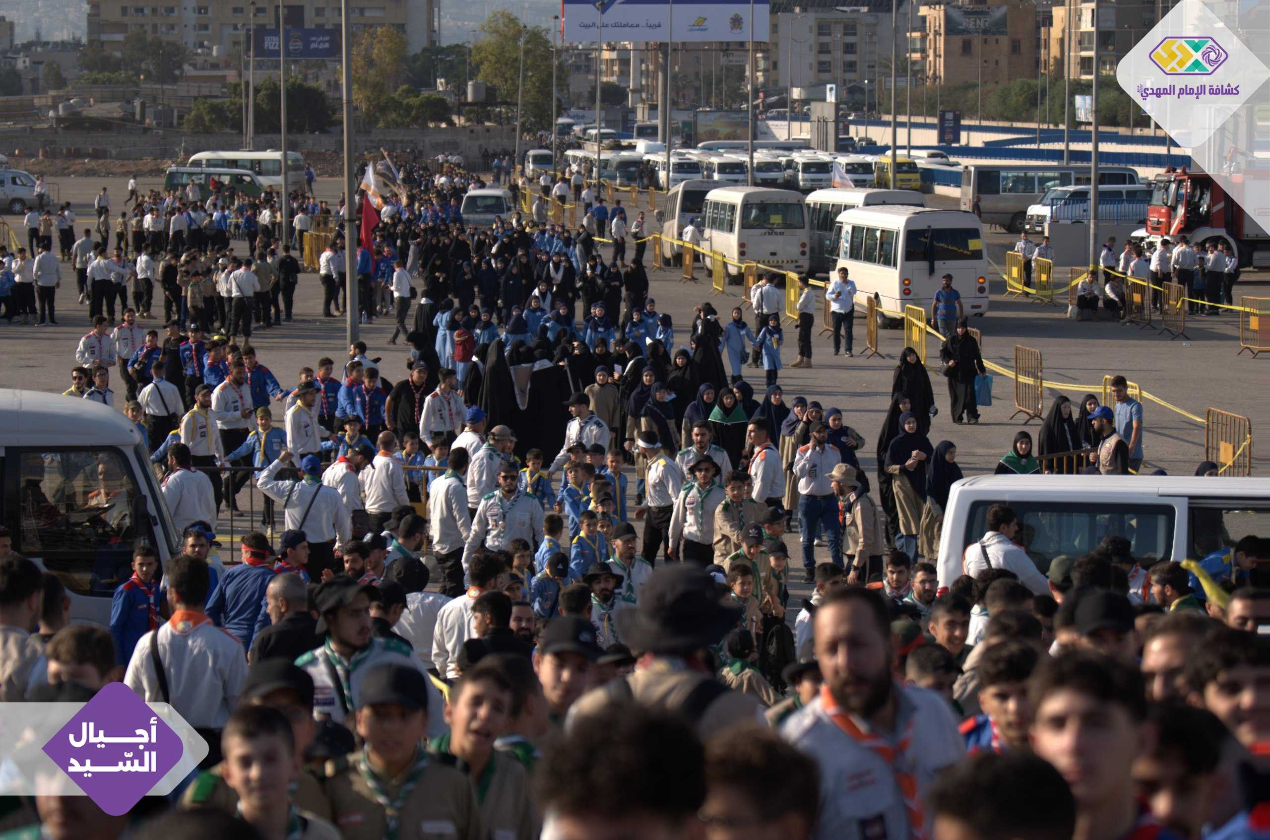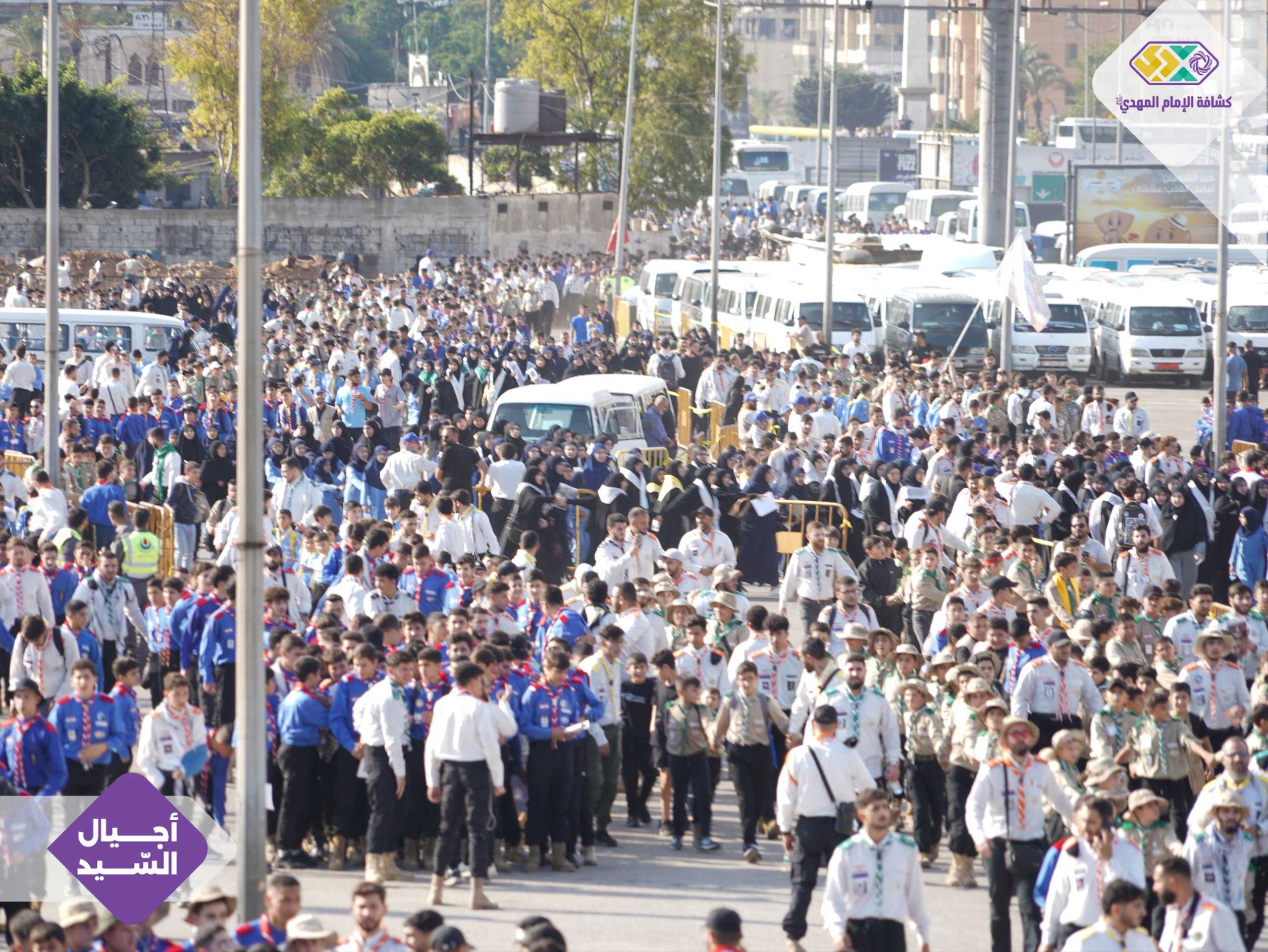 لقطات من لحظات الاستقبال الأولى للكشفيين والكشفيات. عيون تلمع بالحماس، خطوات ثابتة نحو الميدان، وقلوب تنبض على عهد واحد.