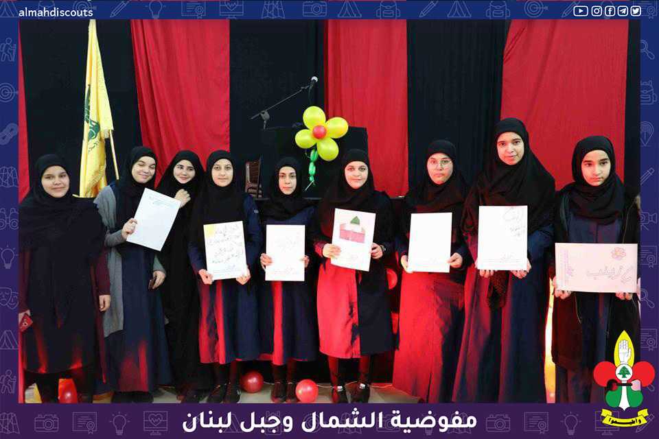 اميرة الفردوس المرسم الفني الذي اقامته مفوضية الشمال وجبل لبنان بالتعاون مع جمعية ابداع بمناسبة ولادة السيدة زينب عليها السلام والذي جمع اكثر من 500 مشارك من مختلف اقطار القطاع . اقيم النشاط في مجمع الامام الصادق عليه السلام في رويسات حذره مفوض المنطقة ومفوضة مرشدات المنطقة ورئيس جمعية ابداع وعدد من الشخصيات الفنية والفعاليات البلدية والاختيارية وختاما بنوزيع الجوائز والهدايا على المشاركين