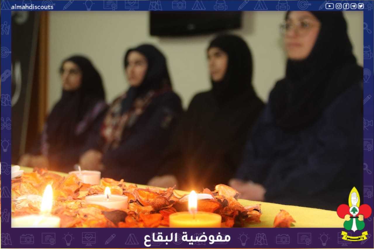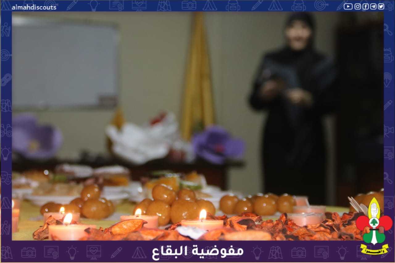 في أجواء ولادة السيدة زينب عليها السلام أقام فوج السيدة نرجس /بدنايل /القطاع الاوسط يوماً خاصاً للدليلات في عيدهن بحضور ٢٠ كشفية من خلال مقدمة تليق بزيارة العقيلة مع أمينة التدريب في القطاع وقصة تحاكي أخلاقيات زينبية، ورشة كلوا واشربوا من منهاج درب السعادة مع أمينة مرشدات القطاع، ليختتم النشاط بمسابقة زينبية، توزيع الجوائز،ضيافة على شرفهن وتقديم هدية لممرضة من فرقة الدليلات.