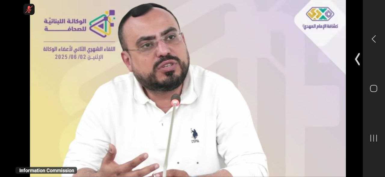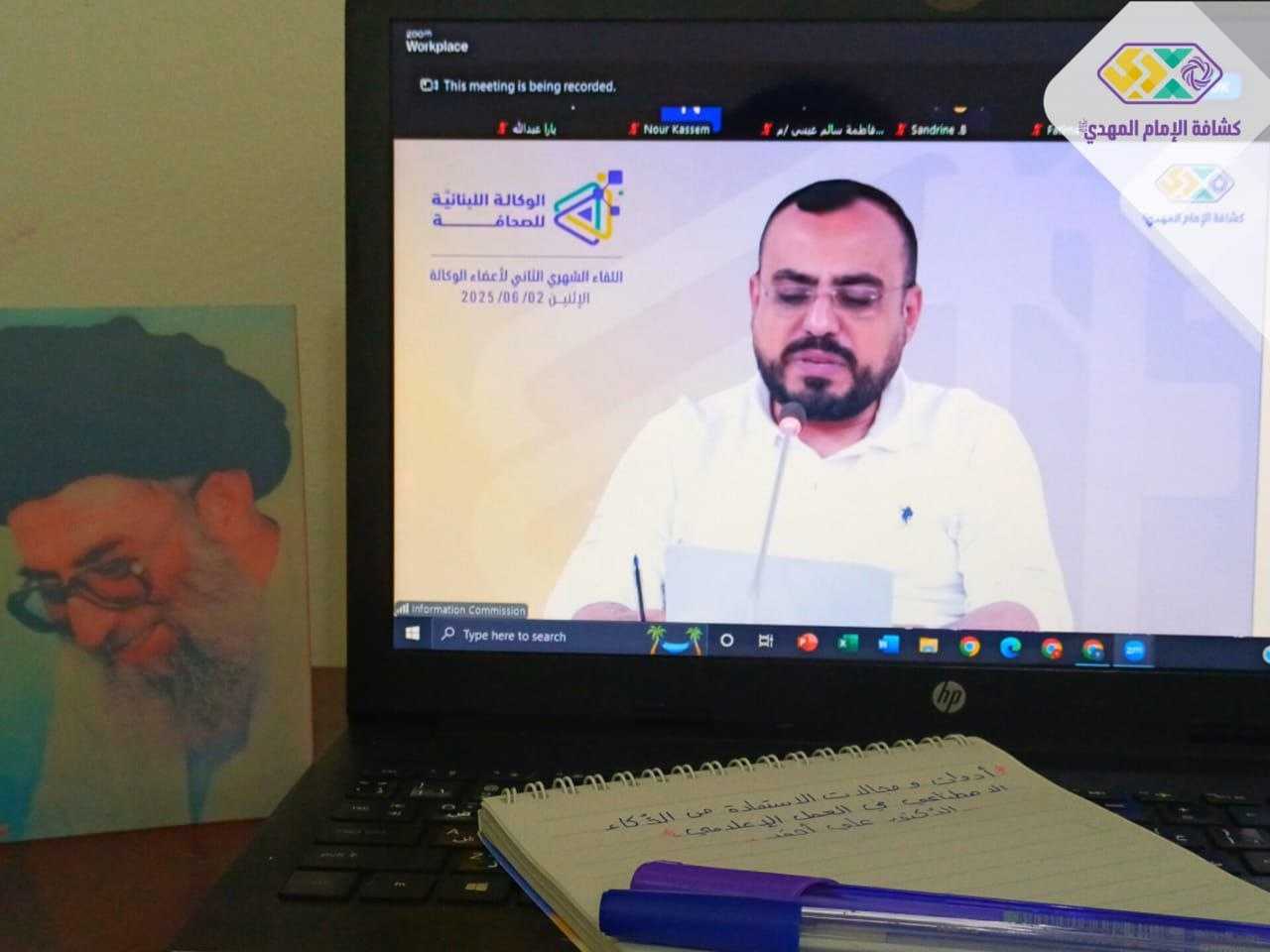 اللقاء الذي قدّمه المتخصص في علوم الإعلام والاتصال الدكتور علي أحمد، أقيم عبر منصة الزوم، وتخلله كلمة افتتاحية لمدير عام الوكالة الحاج ماهر قمر رحّب فيها بالحضور شاكرًا جهودهم ومؤكدًا على أهمية موضوع اللقاء وانعكاسه على عملهم الإعلامي.