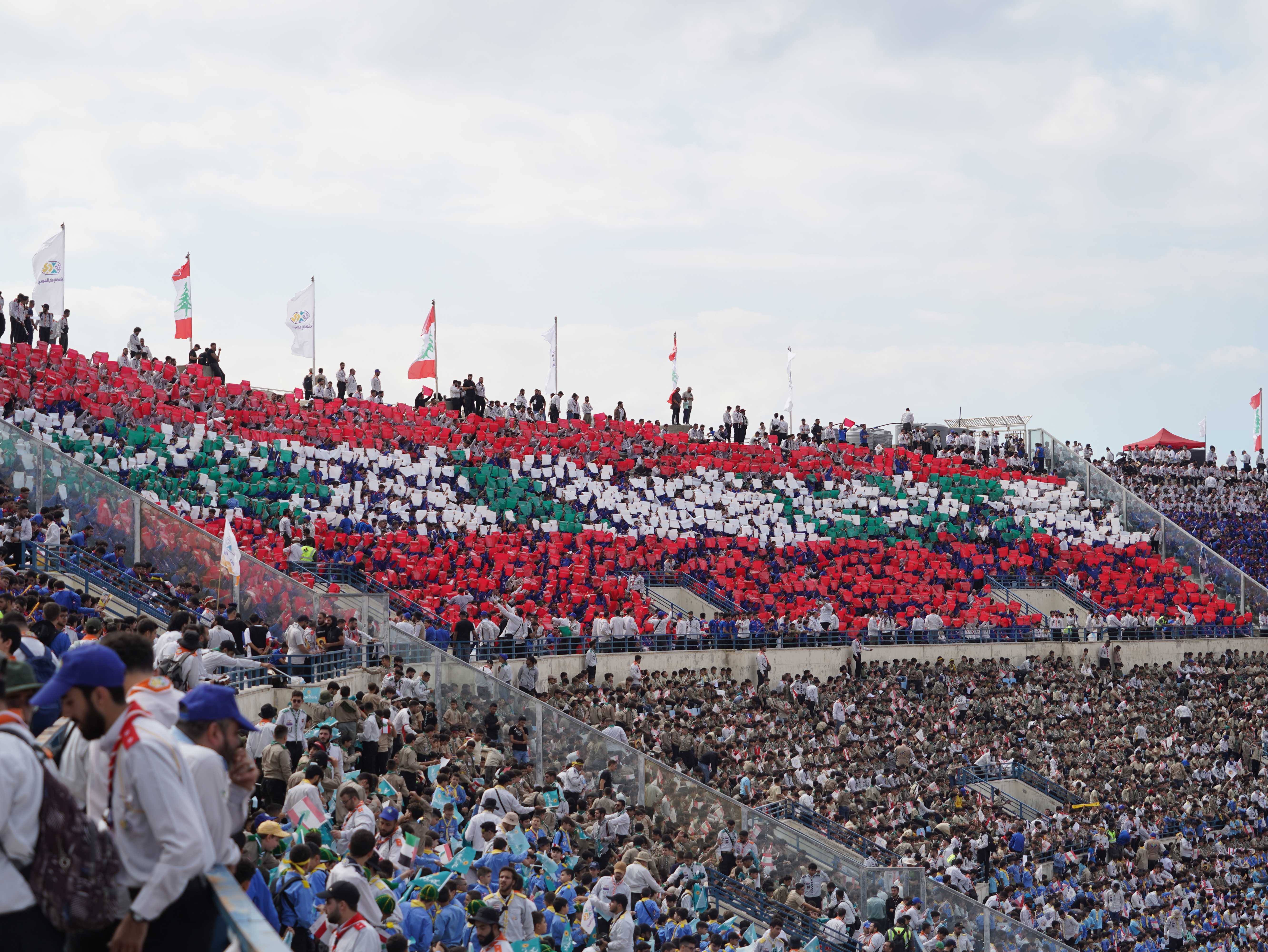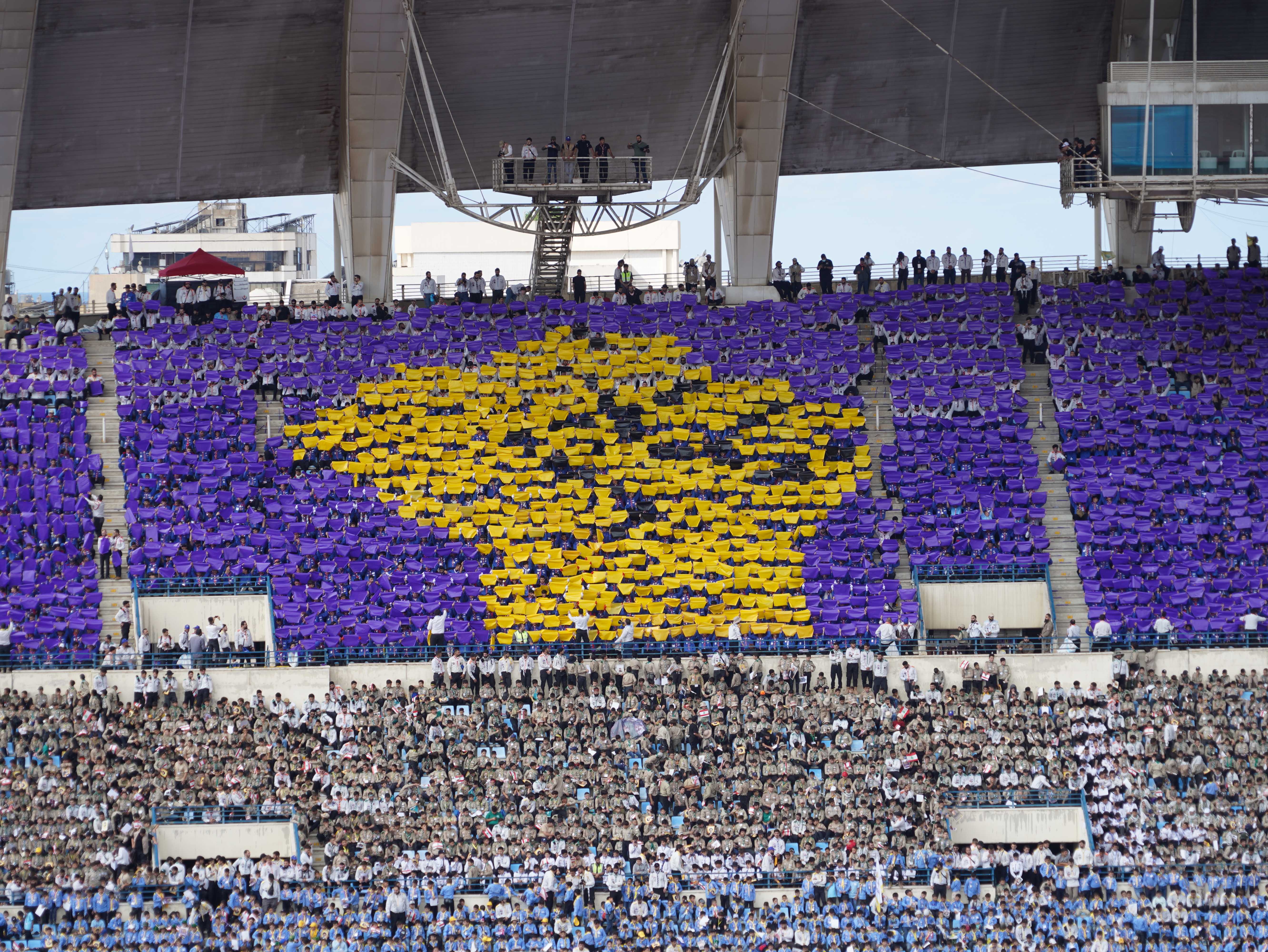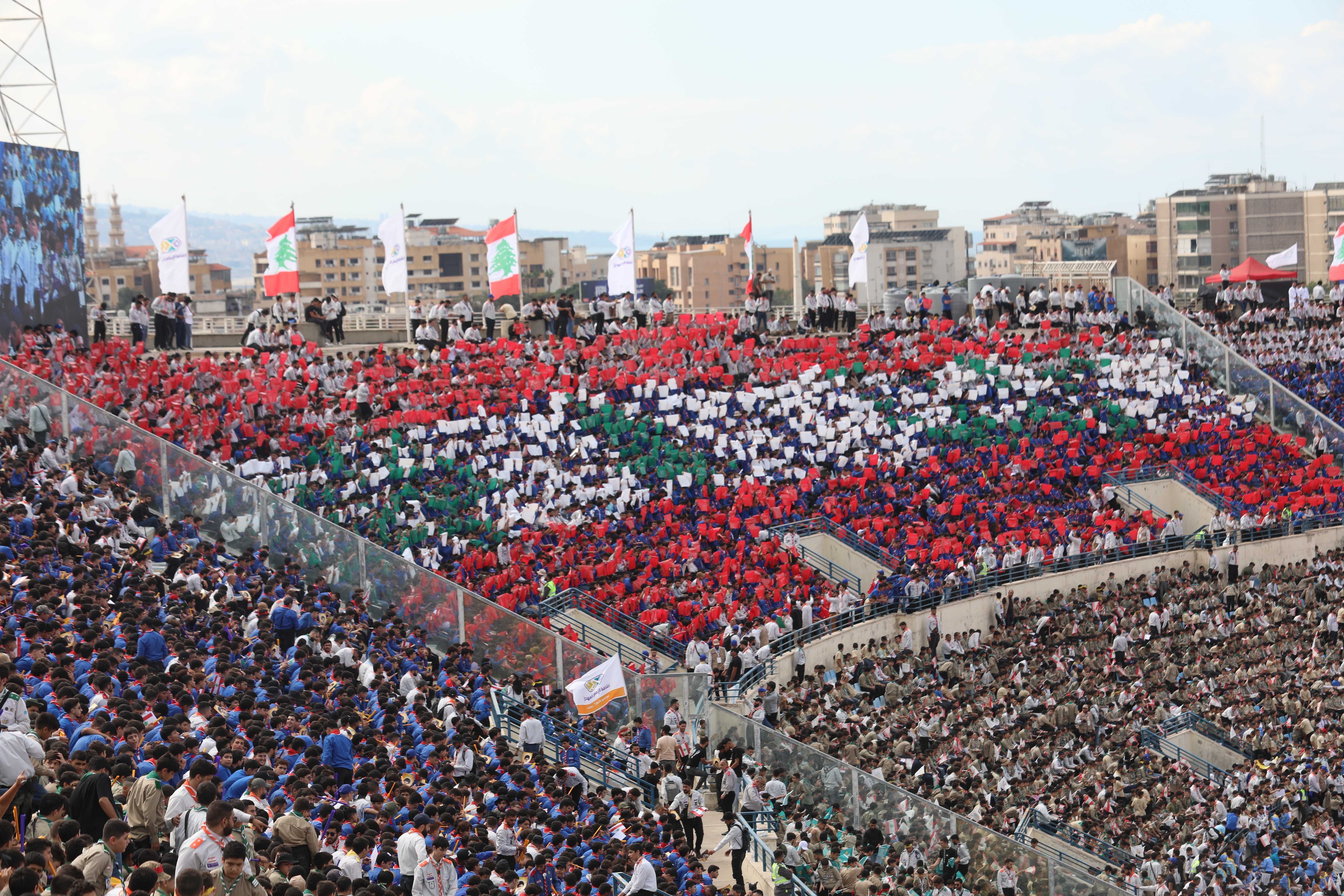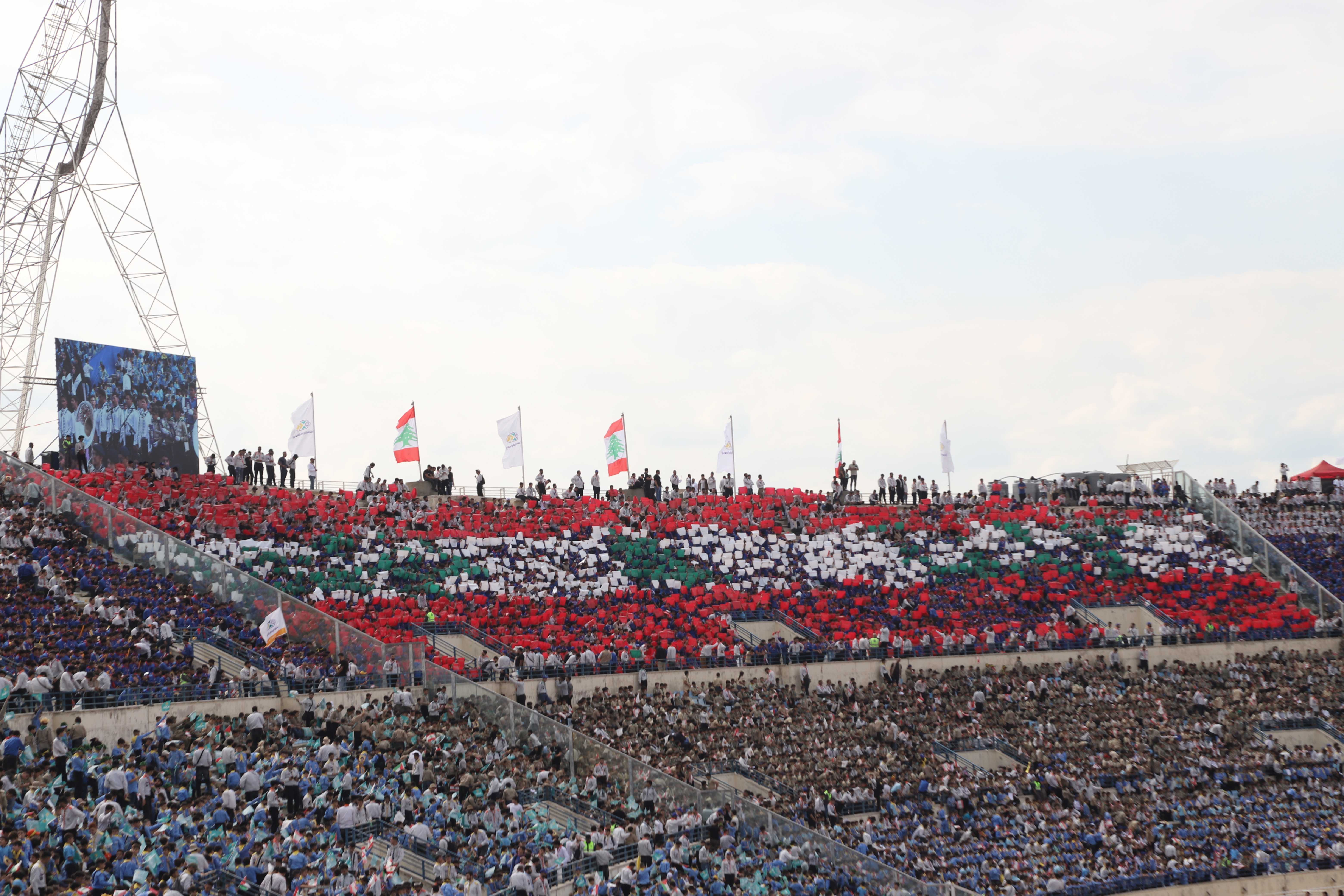مشاهد للتيفو الذي عُرِض خلال التجمّع الكشفيّ الكبير، حيث عبّرت اللوحات عن الإنتماء والوحدة بطريقة بصريّة جاذبة.