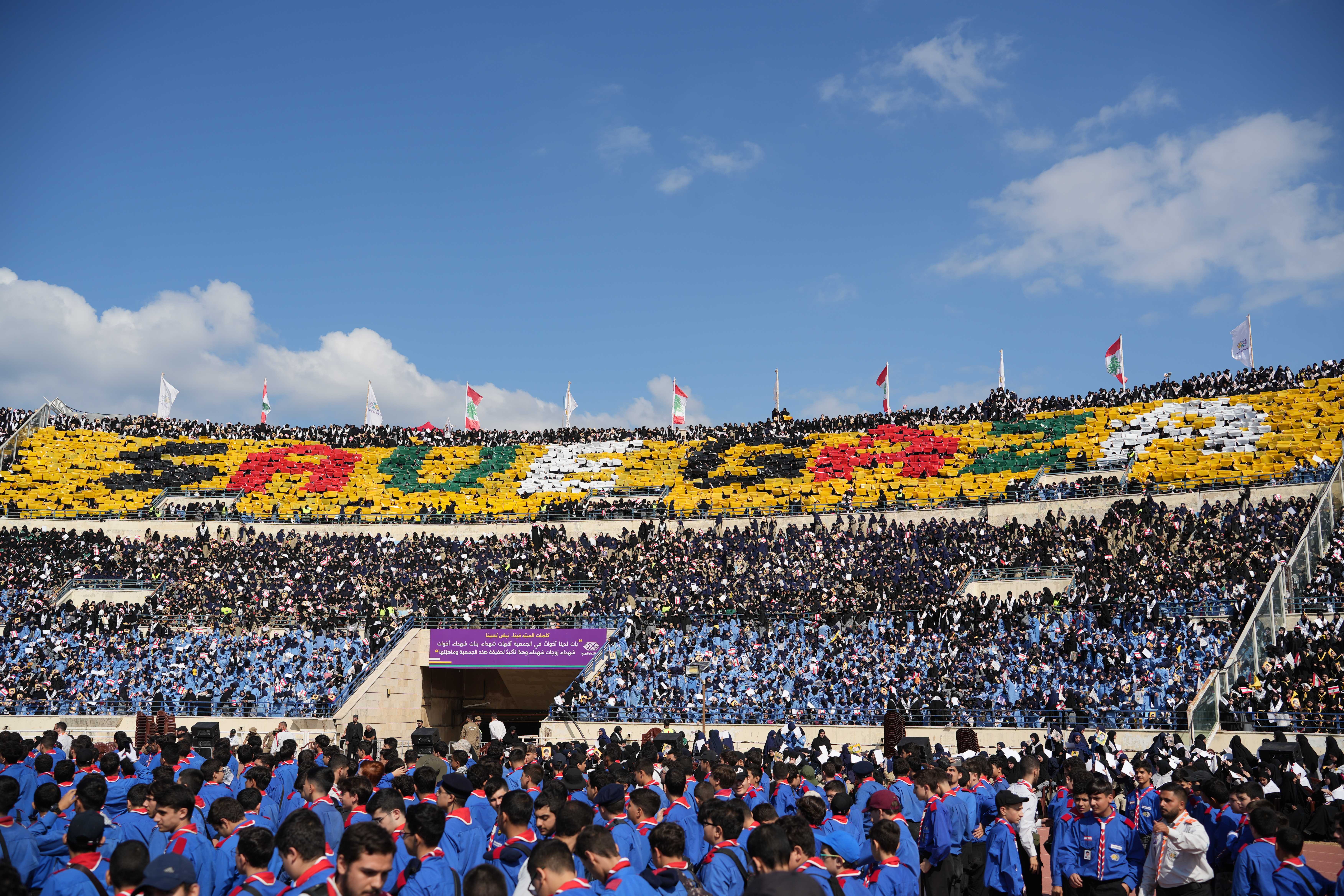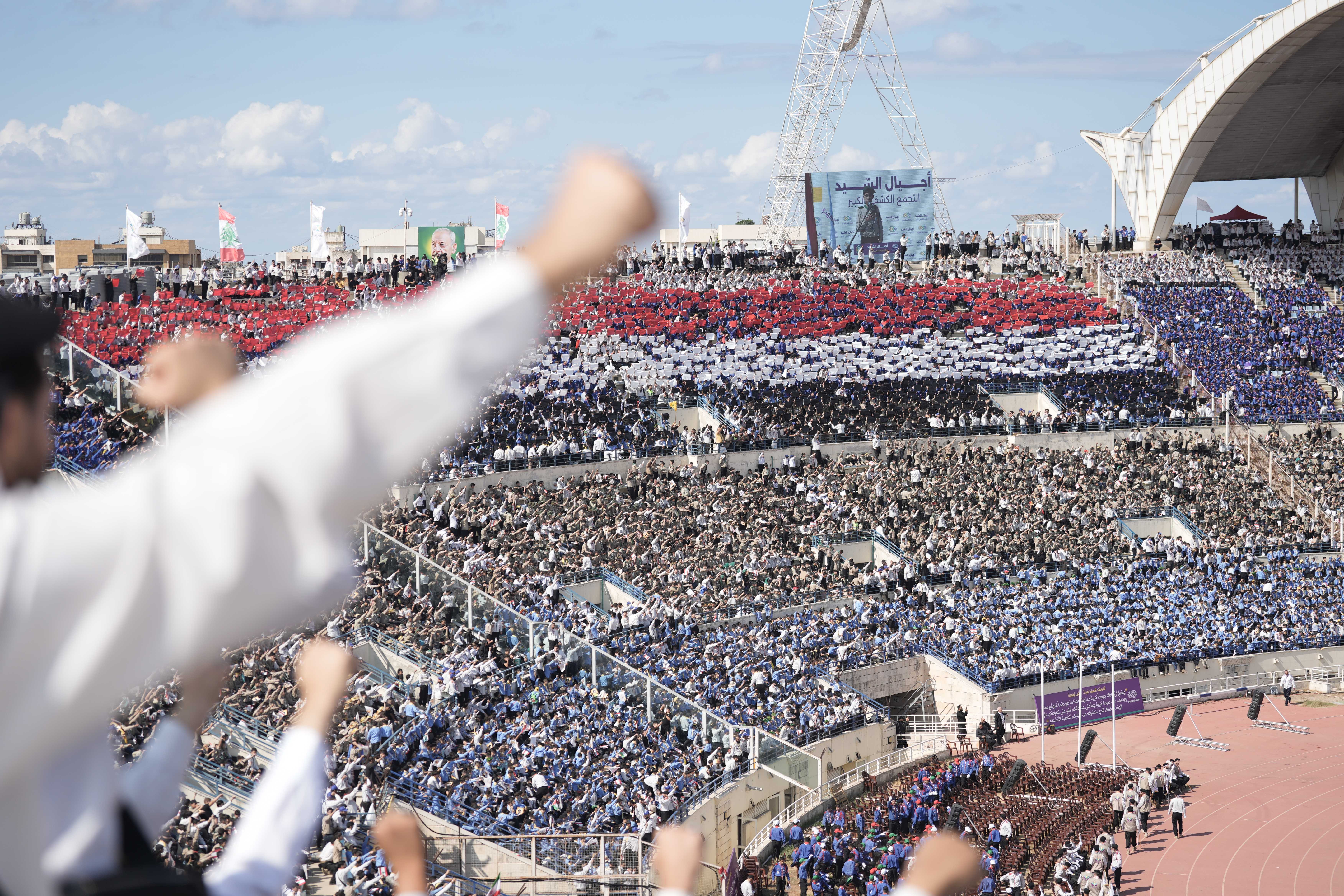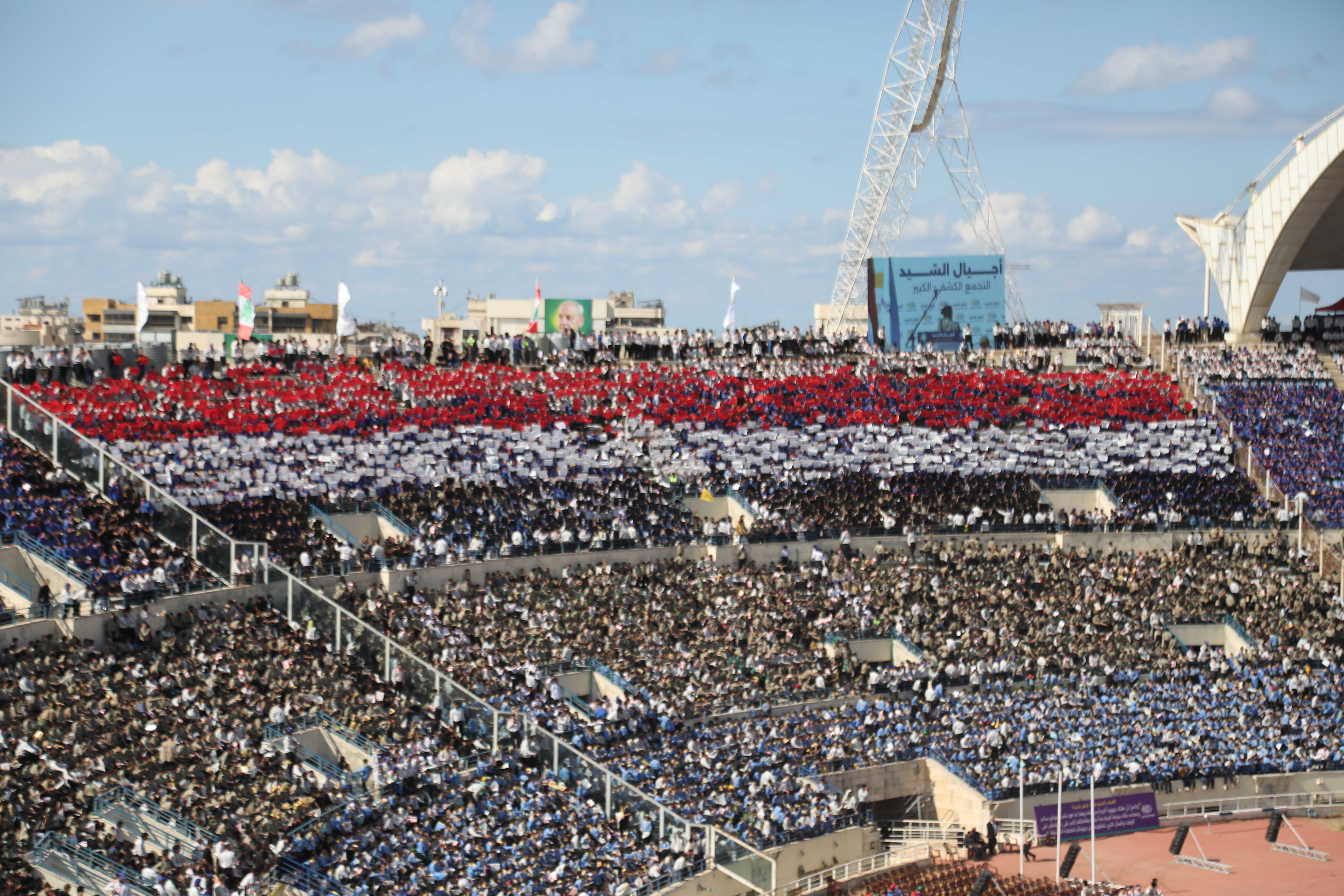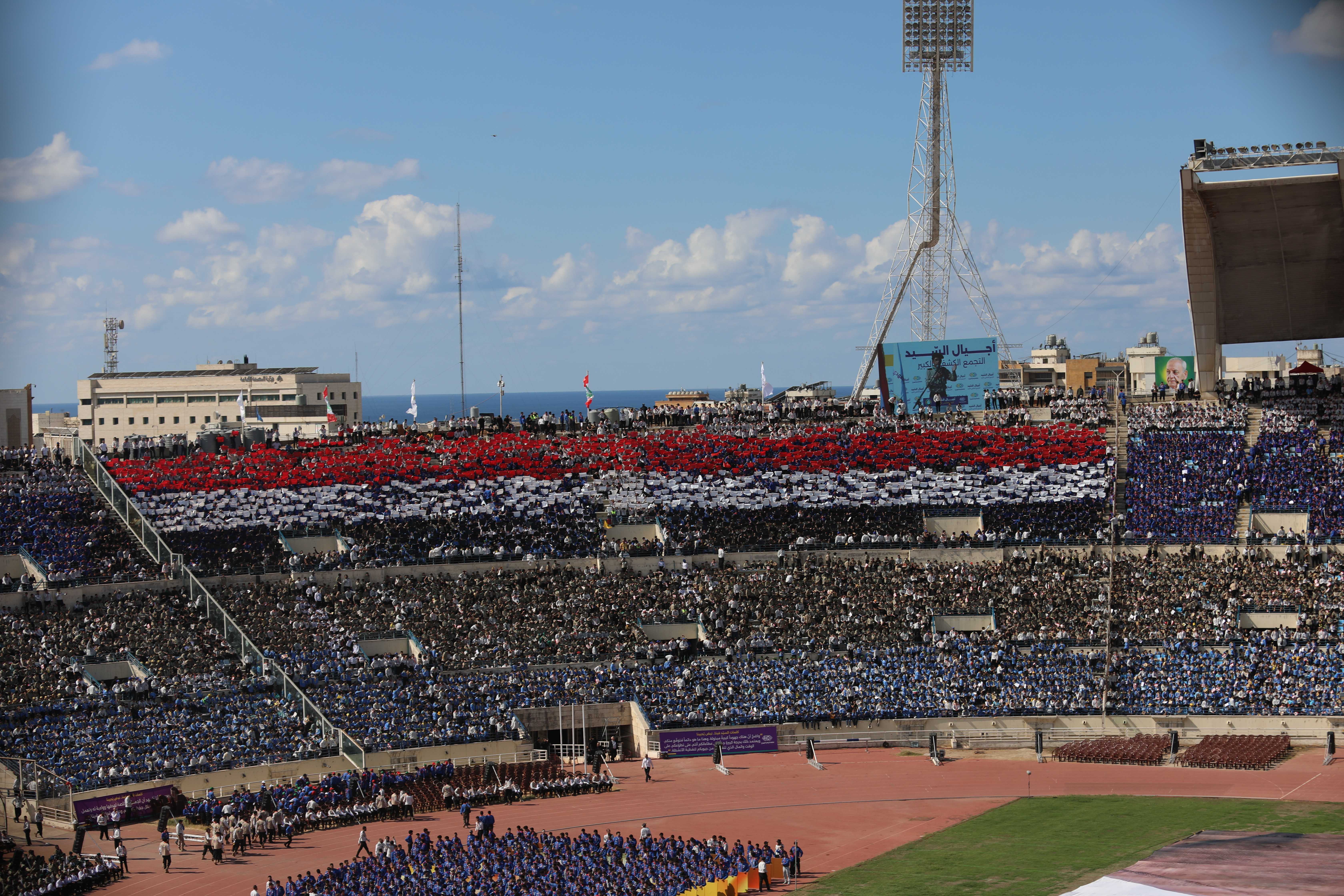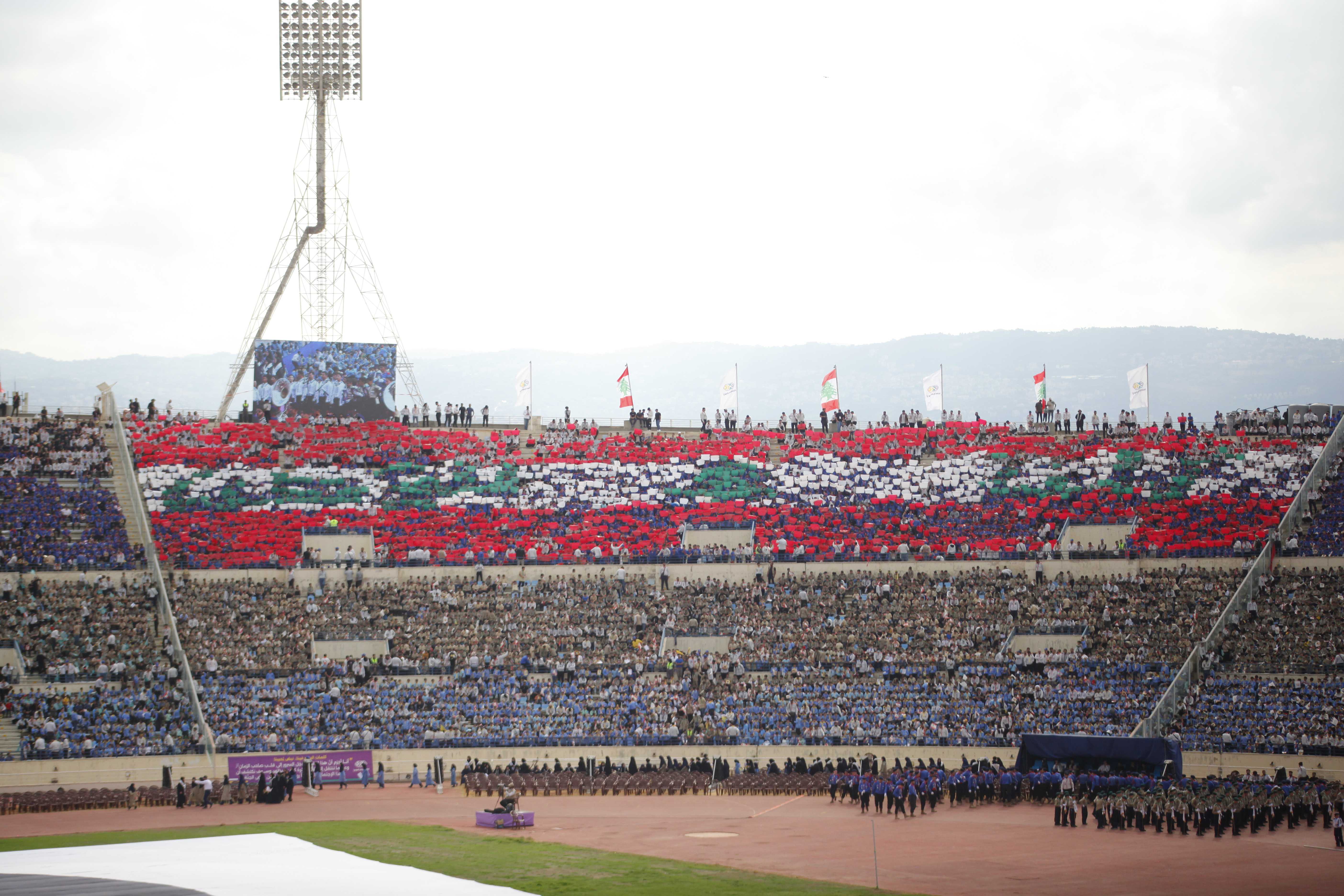 مشاهد للتيفو الذي عُرِض خلال التجمّع الكشفيّ الكبير، حيث عبّرت اللوحات عن الإنتماء والوحدة بطريقة بصريّة جاذبة.