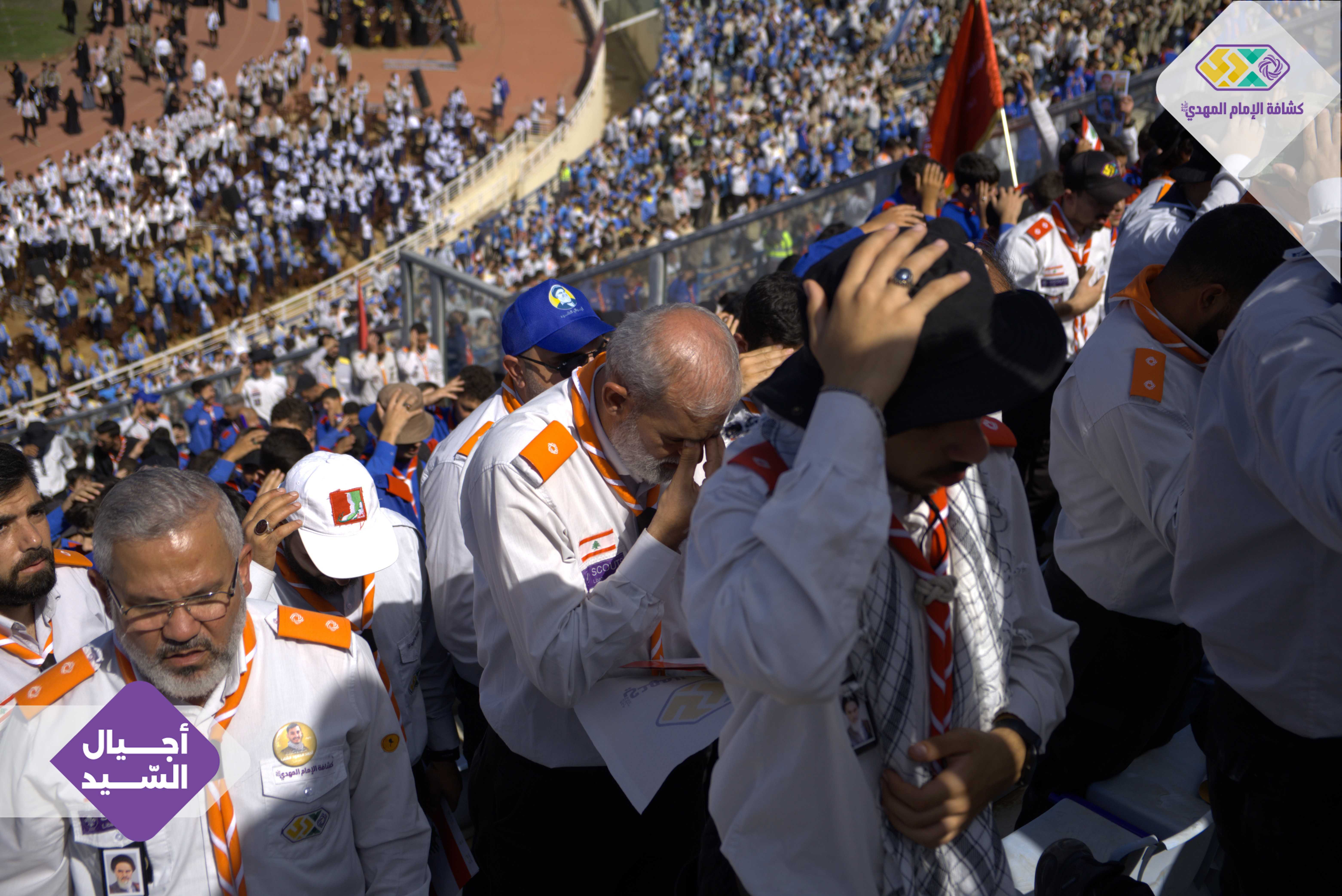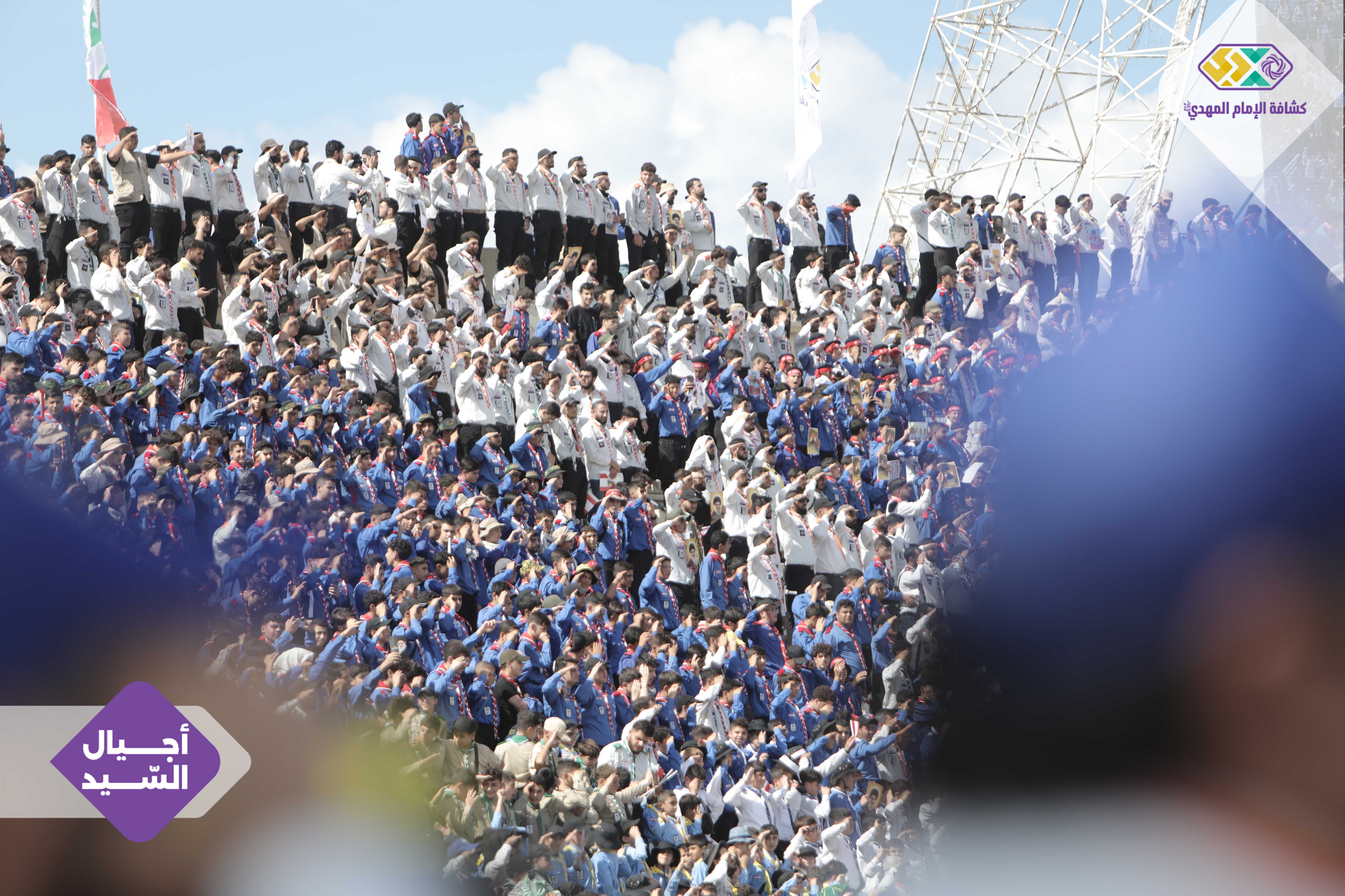 لقطات للحشود وهم يؤدّون دعاء الحجّة والتّحيّة الكشفيّة خلال التّجمّع، في مشهد يعكس المحبّة والإرتباط بالامام "عج" وقِيَمه.