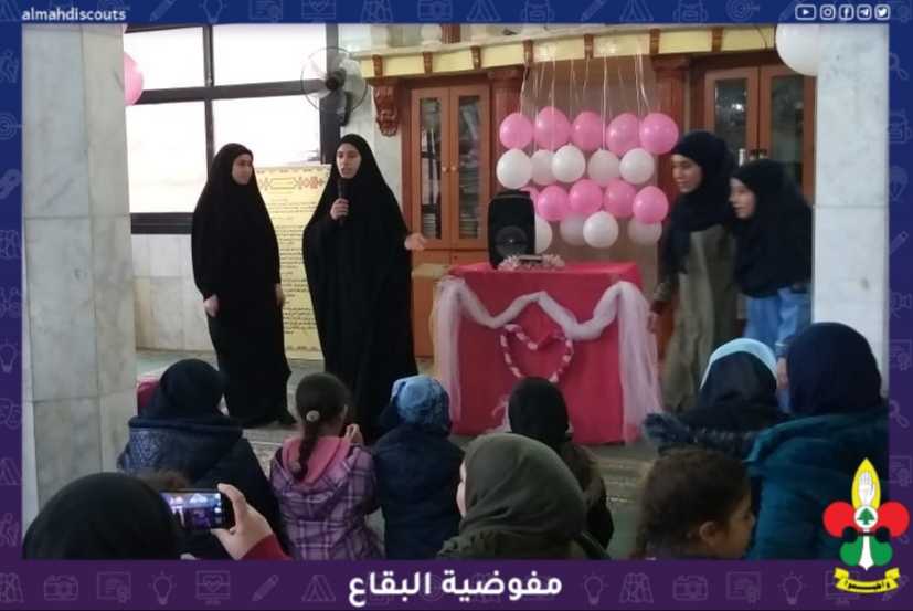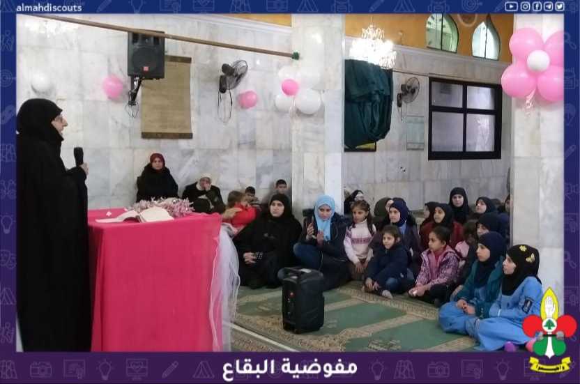 في احواء ولادة السيده زينب عليها السلام، ويوم الدليله أقام فوج السيدة خديجة/ المرح الجنوبي/ قطاع الهرمل بالإشتراك مع الهيئات النسائية احتفالاً بهذه المناسبة العطرة تخلل الإحتفال قرآن كريم، كلمة، حوار من وحي المناسبة بين الدليلات، مولد والختام بدعاء الحجة عليه السلام