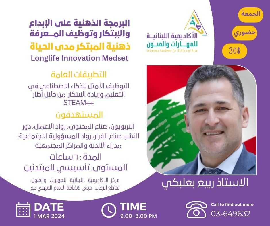 موعد الدورة: الجمعة 1 آذار 224 التوقيت: 9:00 - 3:00 ب.ظ
