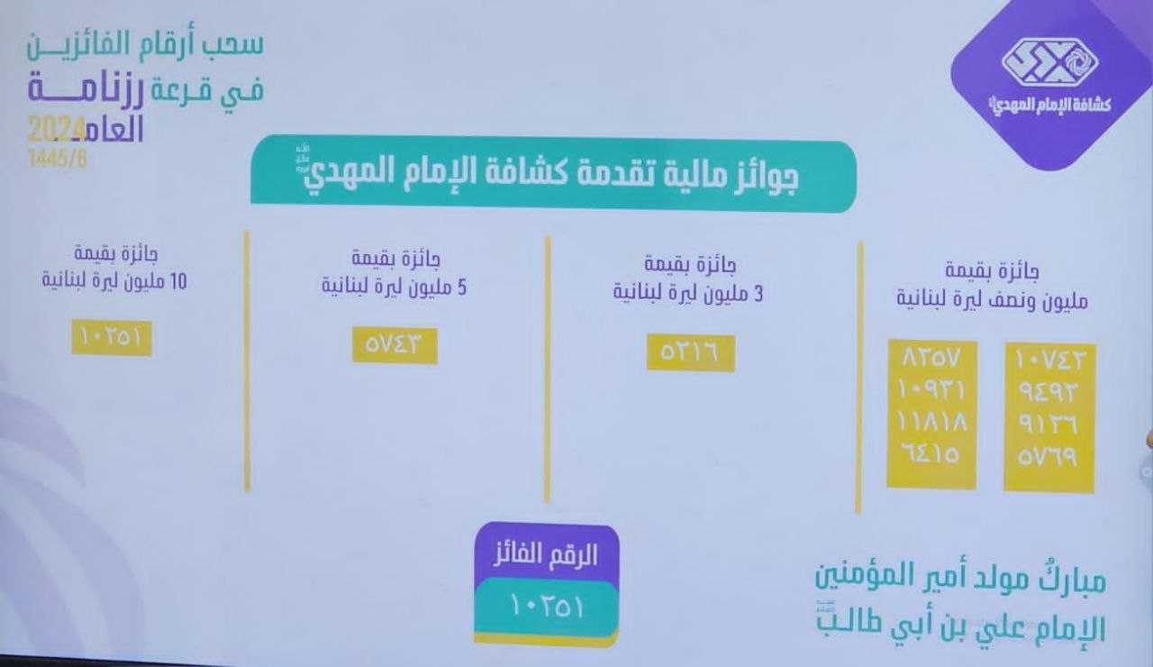 الأرقام الفائزة في قُرعة رزنامة الجمعية للعام ٢٠٢٤