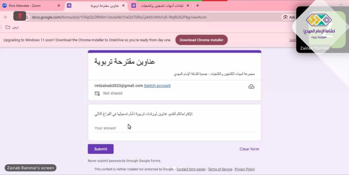 نفذت مفوضية مرشدات بيروت لقاءً تحضيرياً للجنة المكلفة بمتابعة أنشطة أمهات الكشفيين والكشفيّات حيث جرى التباحث ومناقشة العناوين المقترحة في المجالات المختلفة سياسية واجتماعية وثقافة دينية وغيرها..