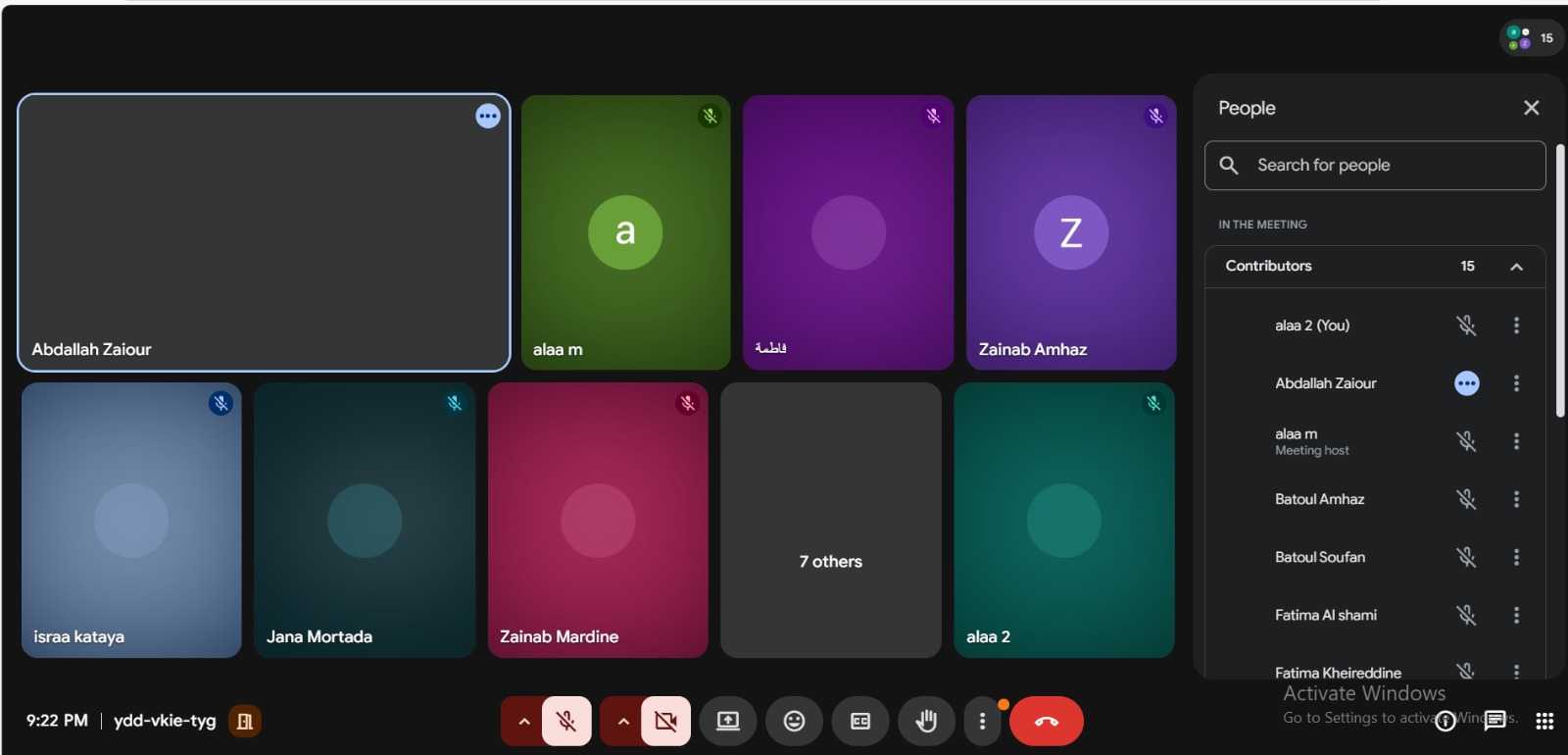 اللقاء الخاص بقائدات مسار قادة شباب بلغ عدد مشاركاته ١٧ قائدة وكان عبر تطبيق غوغل ميت حيث