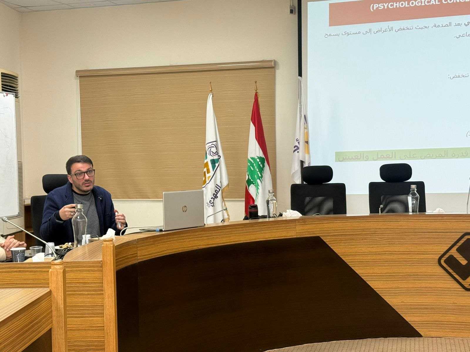واختُتمت الدورة بورشةٍ تدريبيّةٍ قدّمها الاختصاصي محمّد سبيتي، تناول فيها دور الأسرة والمجتمع في دعم ومساندة علاج حالات اضطراب ما بعد الصدمة (PTSD).