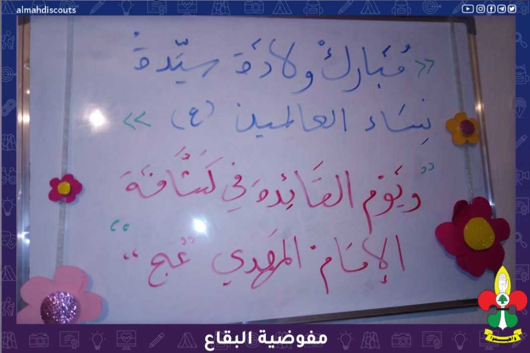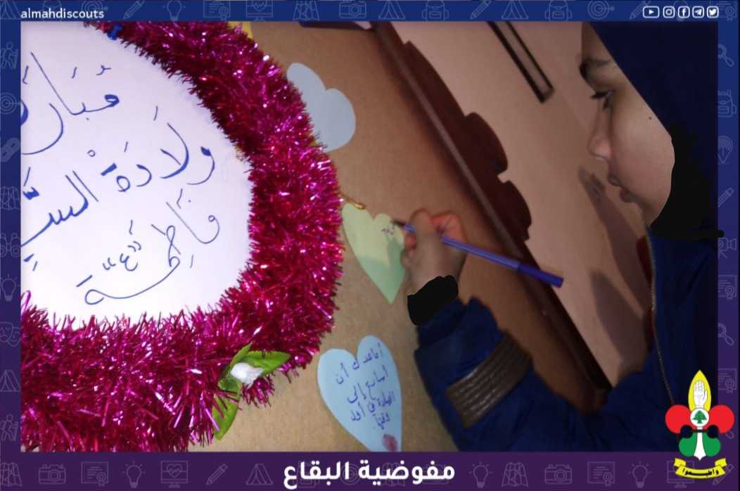 على حب فاطمة وفي أجواء يوم القائدة اجتمعت مرشدات ودليلات فوج السيدة الزهراء(ع)/ حزرتا/ القطاع الأوسط ليحيوا هذه المناسبة العطرة فكانت البداية مع فيديو استحضرت فيه الفتيات مزايا وسمات السيدة الزهراء(ع) وكانت هناك وقفة امام أهم محطات حياتها كقدوة مثلى ليكون العهد خير ميثاق بينهن. بعدها قامت العناصر بتهنئة القائدة في يومها وتكريم عميدة الفوج ومع فقرة "كلمة من القلب" كانت العبارات كعربون شكر لهن، لتختتم الجلسة بتوزيع الحلوى