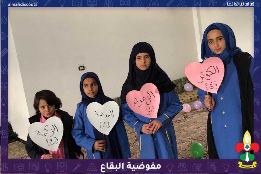 نظم فوج السيدة الطاهرة/ قطاع الولاية احتفالاً بحضور الكشفيات وامهاتهن، بذكرى ميلاد السيدة الزهراء عليها السلام ويوم القائدة افتتح النشاط بآيات من الذكر الحكيم، بعدها نبذة عن حياة السيدة البتول، تعريف عن ألقابها، مولد ممزوج بطيب الكلام عنها، وكان الختام بحديث الكساء ودعاء الفرج وتقديم الضيافة على المدعوات