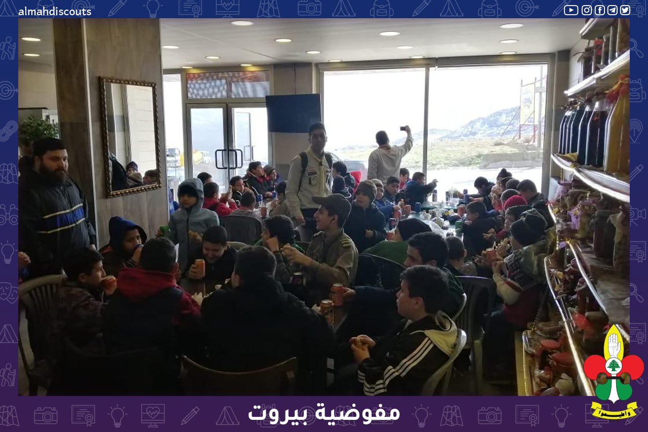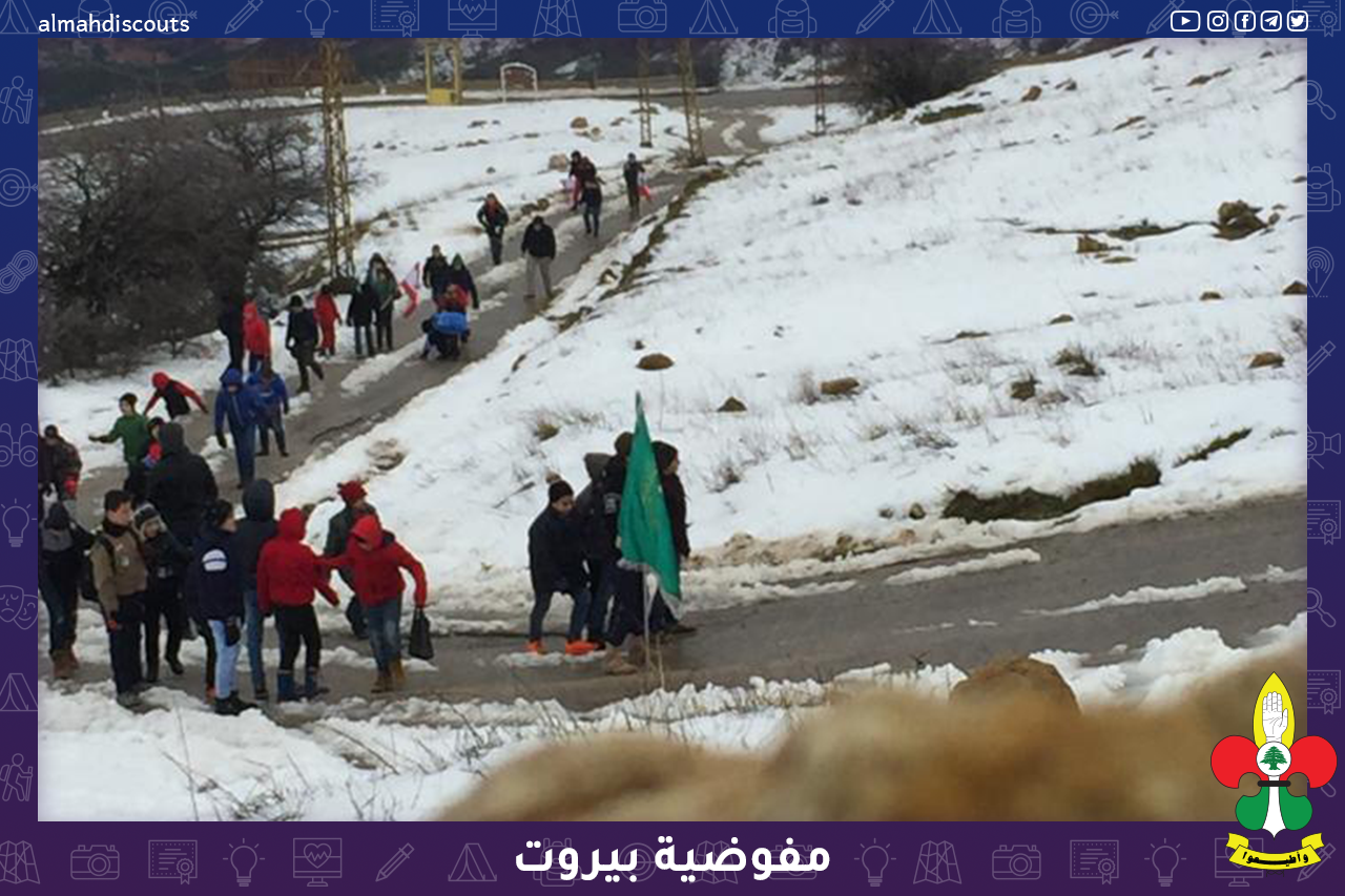 60 كشفي من فرقتي الكشافة والاشبال في فوج الامام الباقر (ع) في القطاع الاول لمفوضية بيروت انطلقوا في رحلة كشفية الى الثلج في منطقة فالوغا تخللها ألعاب وصرخات كشفية ومنح أوسمة وفي طريق العودة تم تناول وجبة الغداء وسط أجواء مفعمة بالحيوية.
