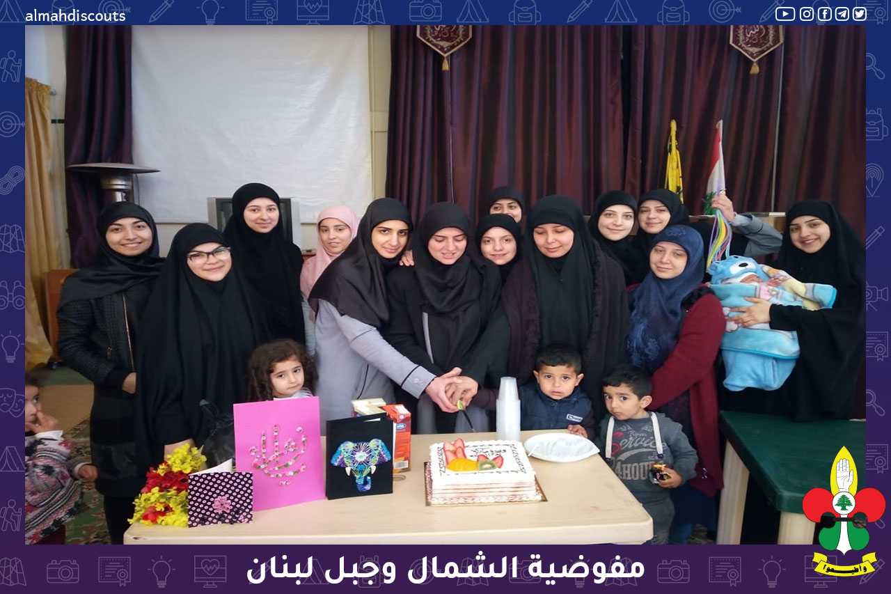 بمناسبة ولادة السيدة الزهراء عليها السلام ويوم القائدة في جمعية كشافة المهدي عليه السلام كرمت مرشدات قطاع الشمال الاخوات القائدات في القطاع بلقاء جمعهن في ديوان الثقافة في بلدة بنهران وتم تقطيع قالب حلوى وتوزيع لهدايا بهذه المناسب