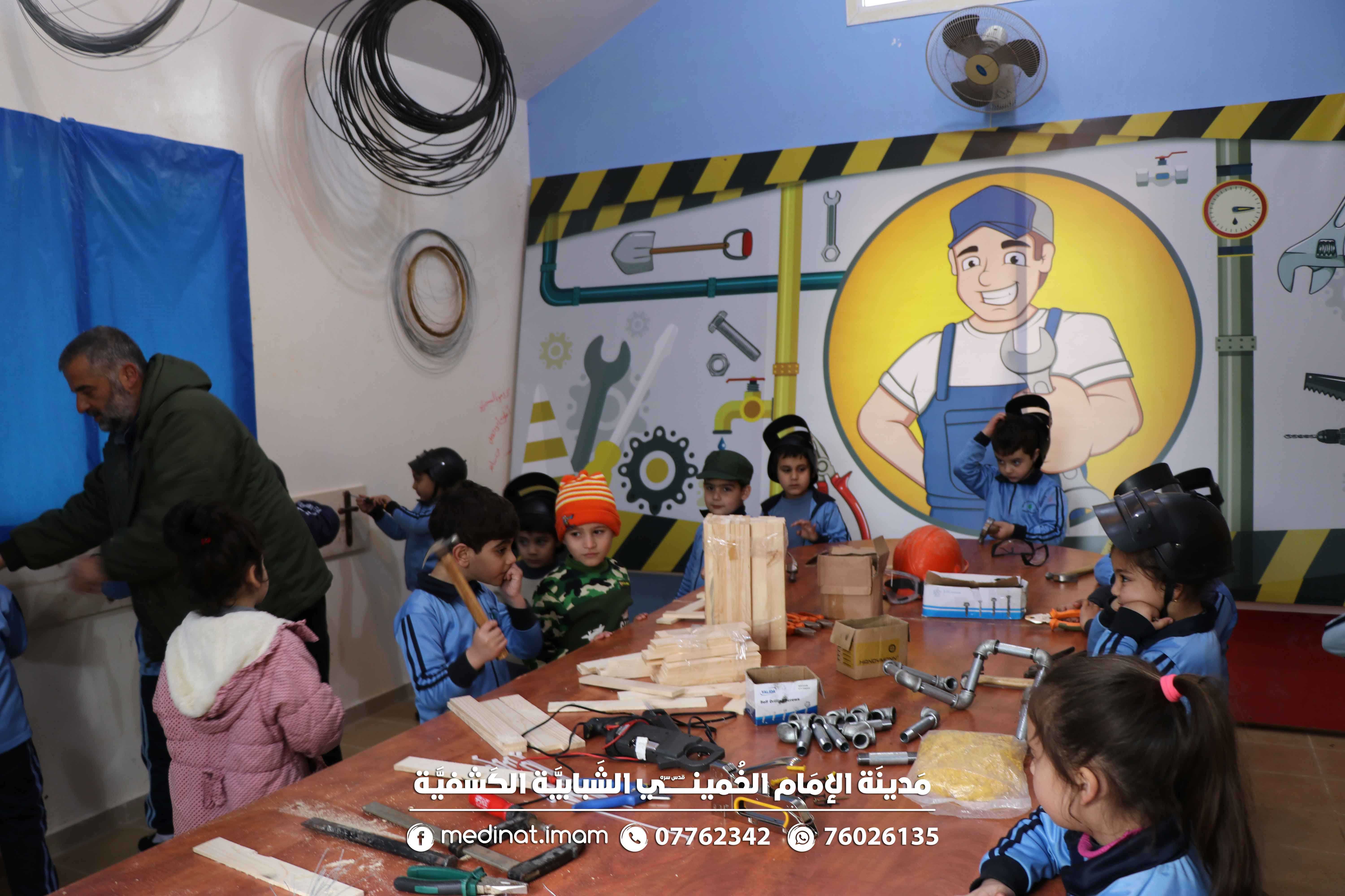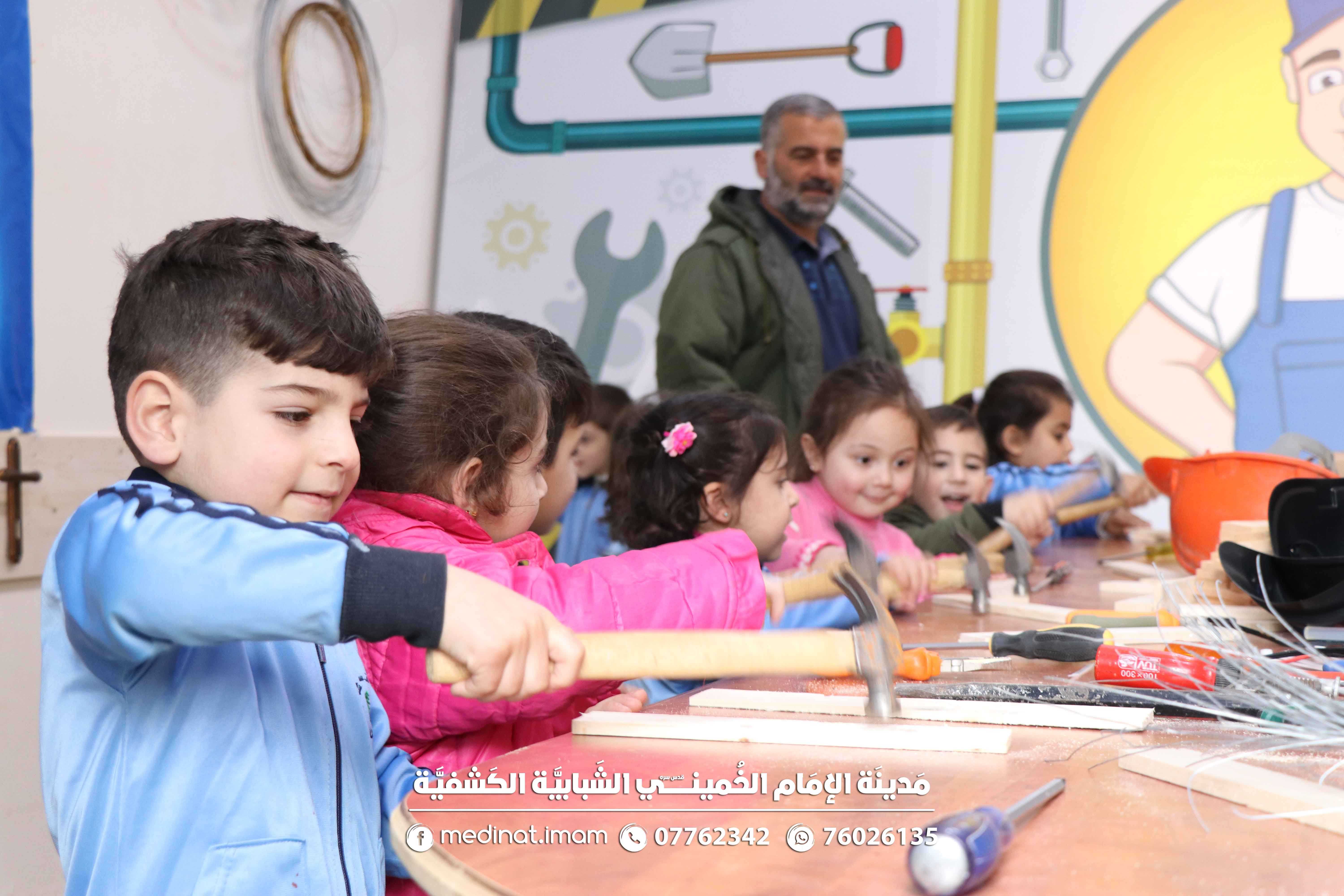 وبعد جولة في قطار المدينة إندمج الأطفال والمعلمين في مختلف المهن والأعمال الحرفية والإعلامية لتكون الفائدة والفرح مرسومة في قلوب الصغار والكبار.
