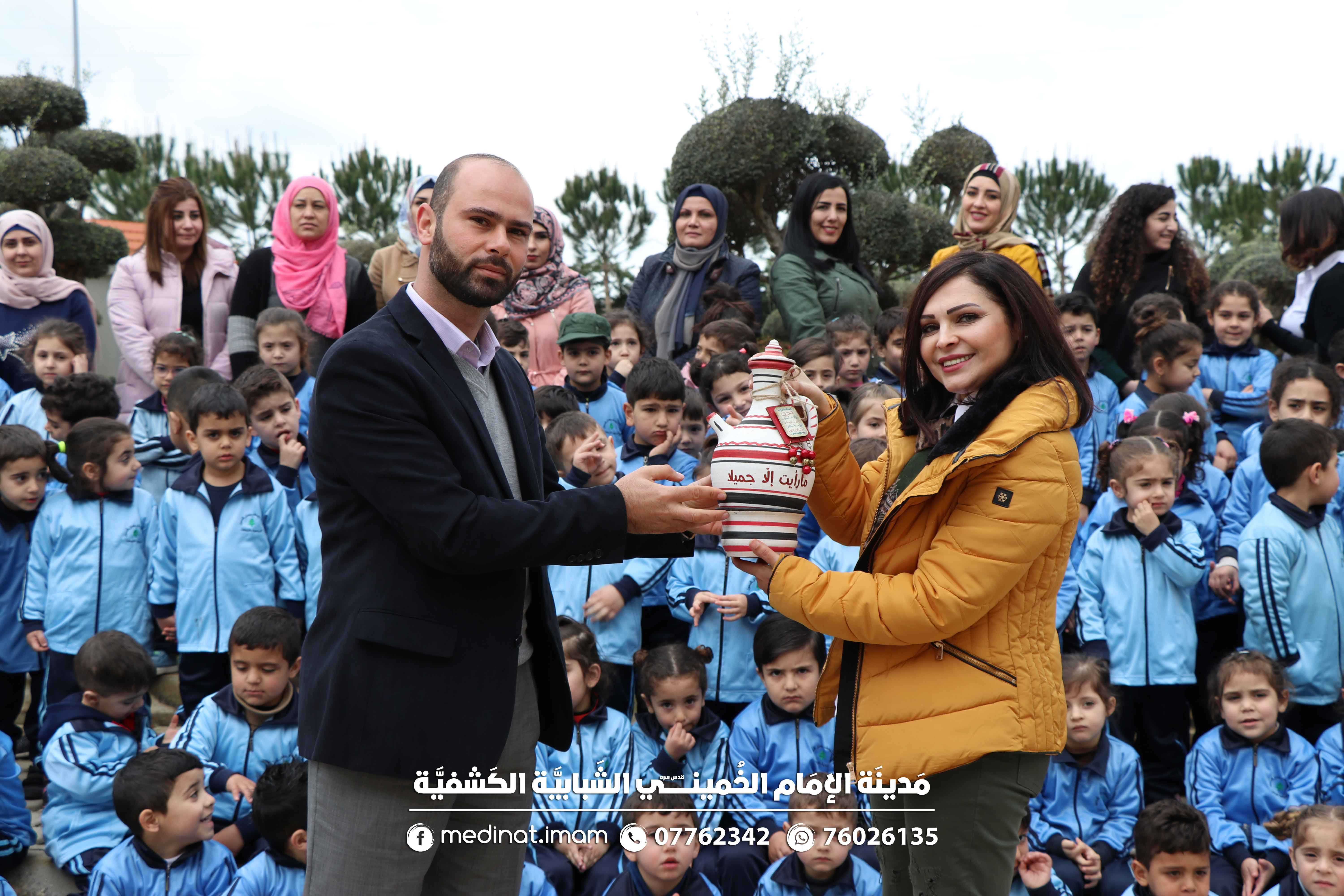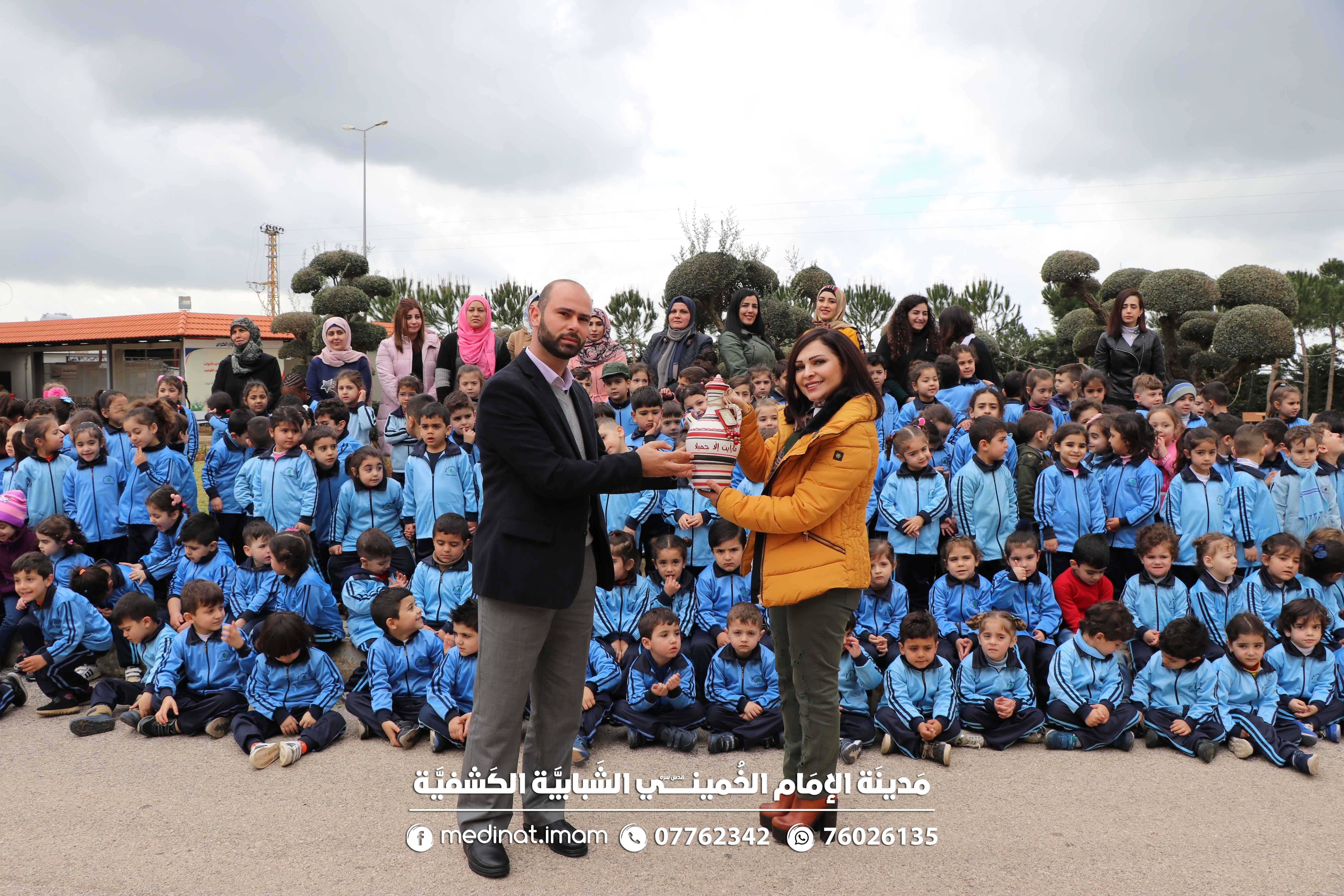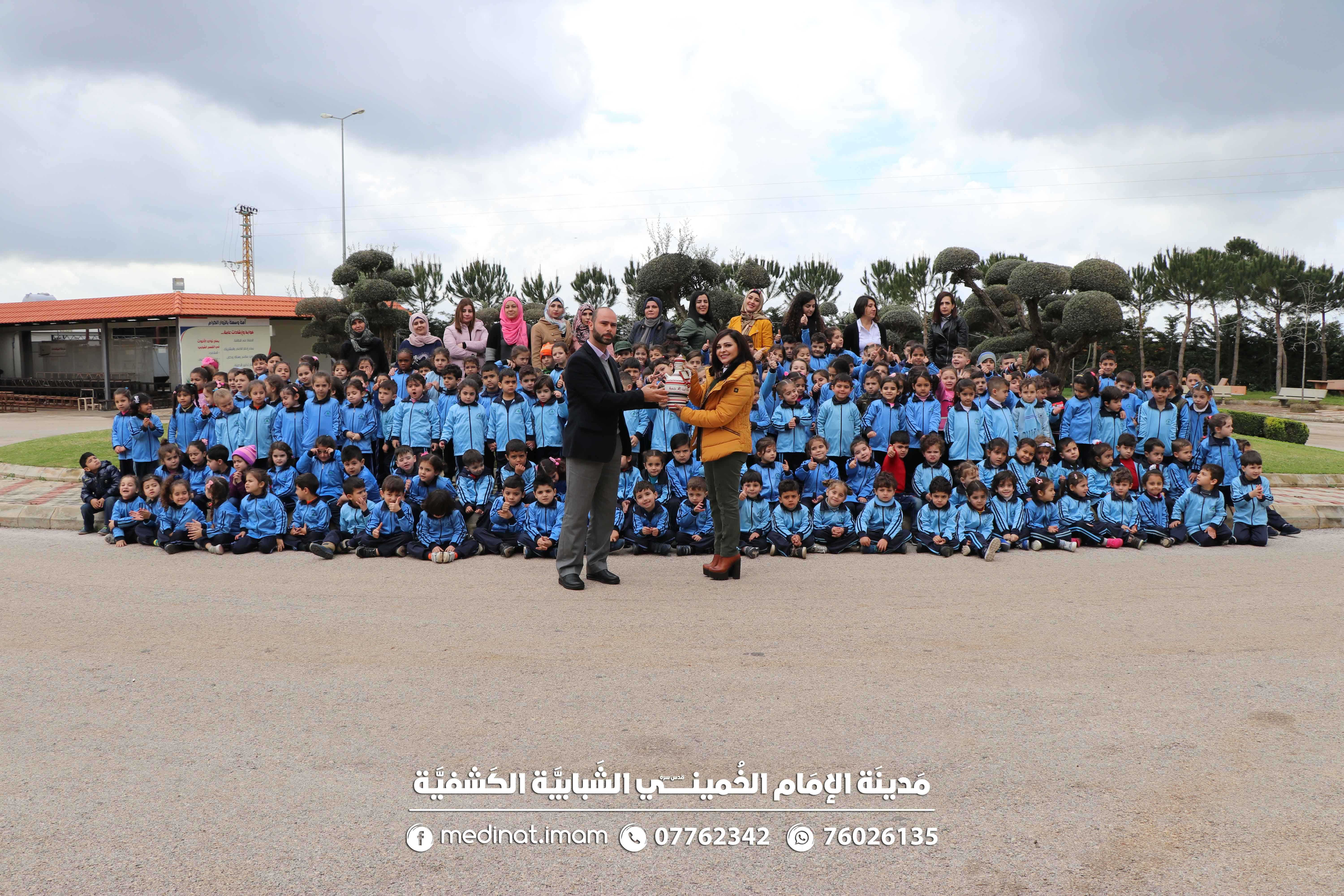 180 طفلاً من مدرسة يوسف سلمان شمعون الرسمية للروضات - النبطية الفوقا جالوا على أقسام مدينة الأعمال الحرفية ، سبقها صورة تذكارية وتقديم هدية شكر وامتنان من المدرسة بشخص مديرتها الأستاذة إسبيريزا غندور لمدير المدينة السيد محمد فحص، والتي عبرت عن فرحتها بإقامة هكذا أنشطة مفيدة.