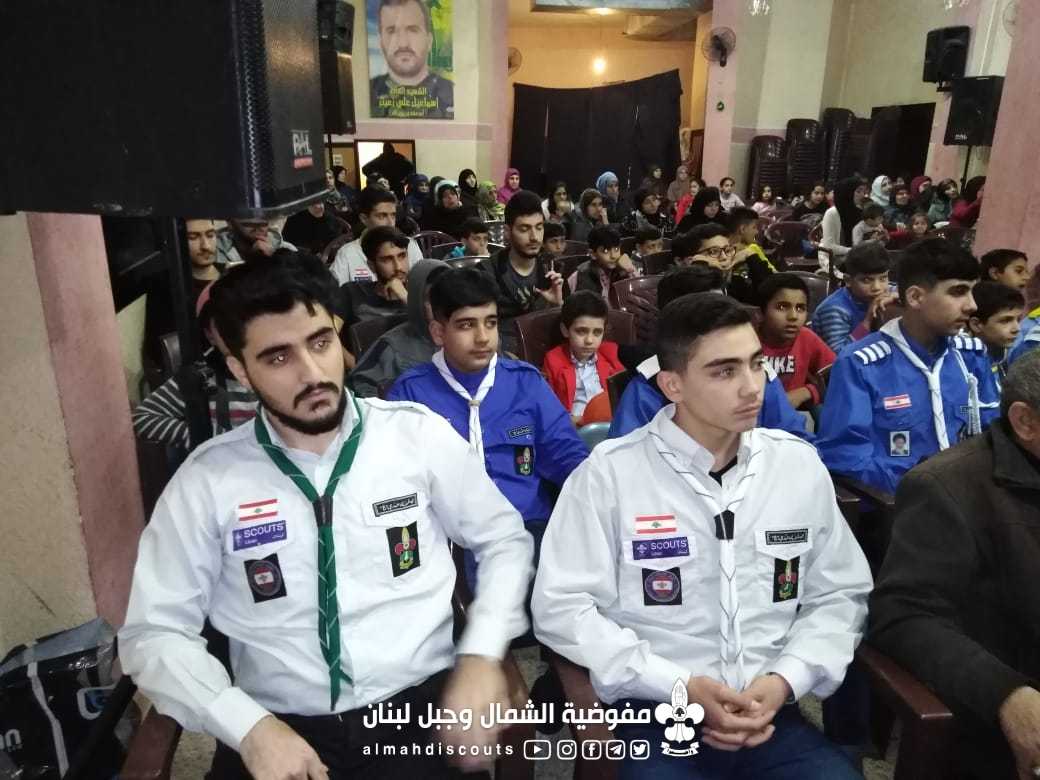 اقام قطاع المتن الشمالي احتفالا بمناسبة ولادة الامام علي عليه السلام بحضور ورعاية مسؤول حزب الله في المتن ااشيخ شوقي زعيتر وعدد من اهالي اهال الفنار الحفل الذي تخلله كلمه لراعي الحفل عن دور العمل الكشفي في ترسيخ مفهوم الولايه والسيره عند الفتيه والفتيات وختاما موبد مبارك بالمناسبة العطره