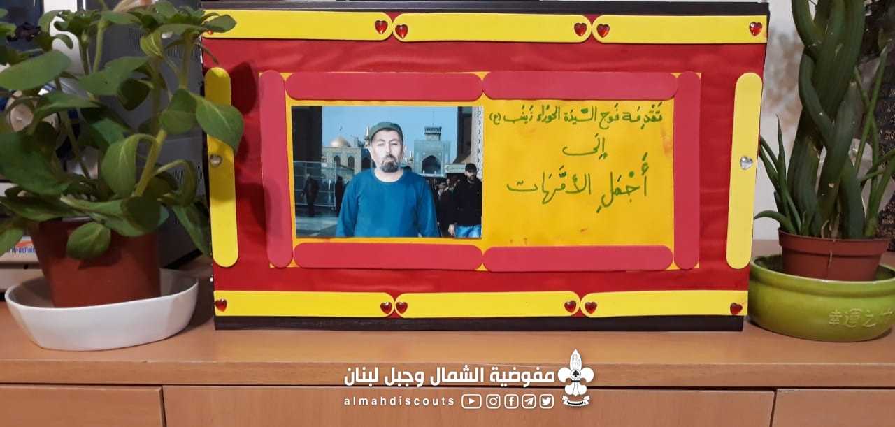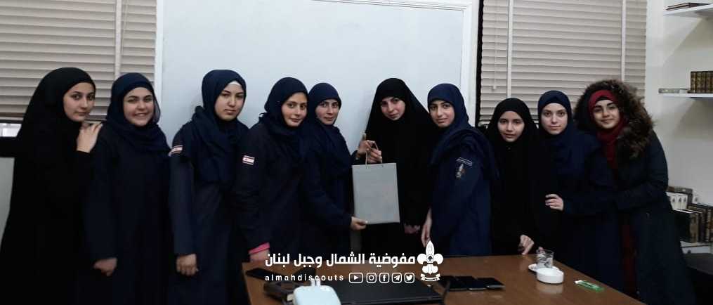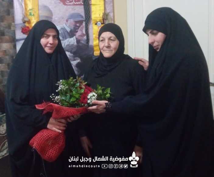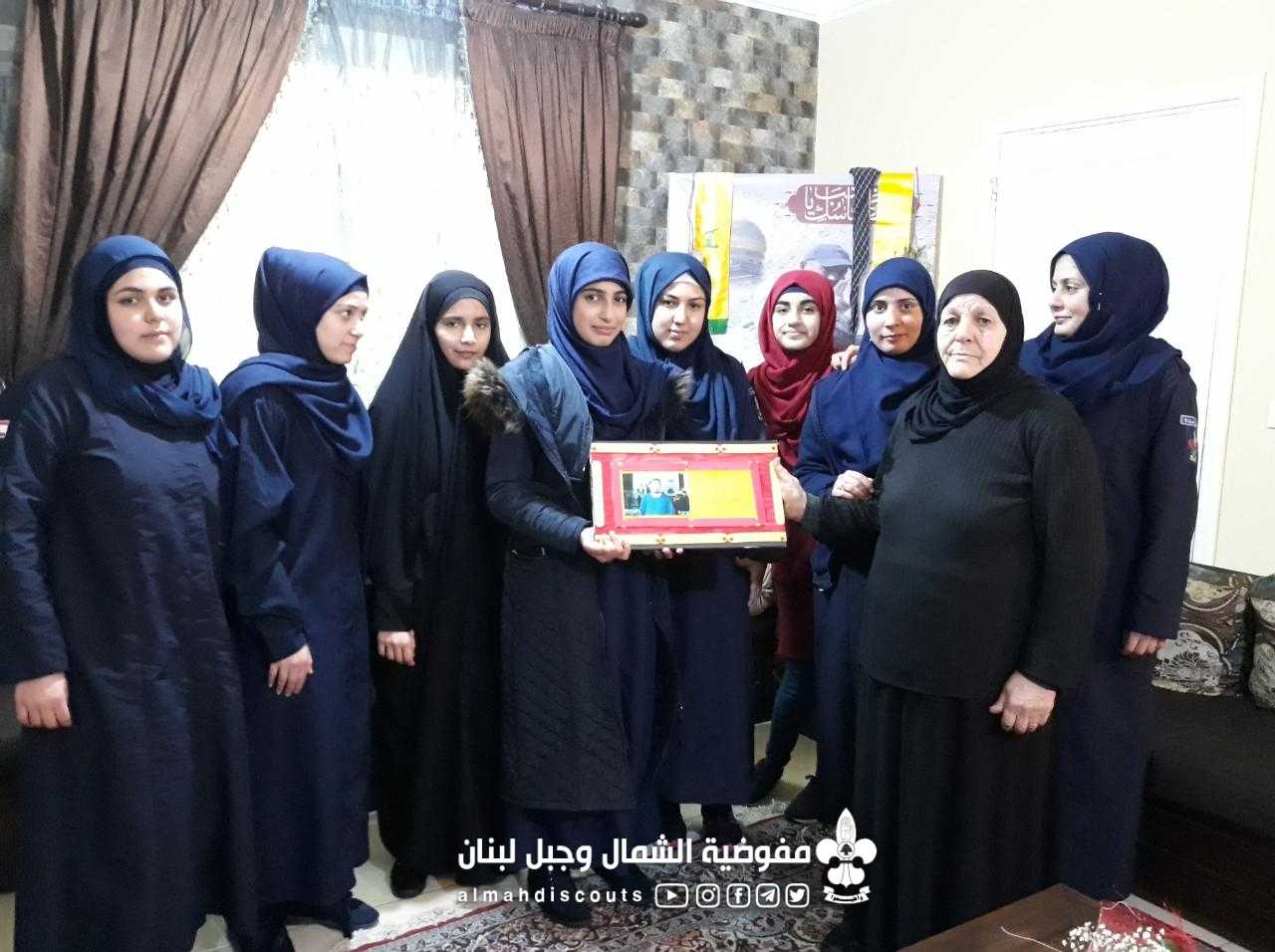 زارت قاىدات دليلات فوج السيدة زينب عليها السلام والدة الشهيد عياد حيدر احمد في بلدة كفرسالا في جبيل وقدمو درعا فنيا يدويا من انتاج الفوج وعلى هامش اللقاء كرم الفوج احدى القائدات لالتزامها بالعباءه الزينبية
