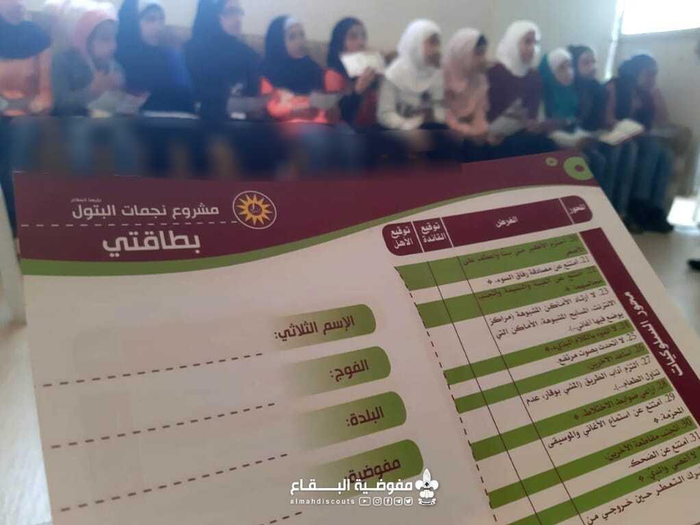 أطلق فوج السيدة الزهراء/ نحلة/ قطاع بعلبك مشروعي نجمات البتول والأربعين صباحا بعد التعريف عنهما من قِبَل أمينة المرشدات في القطاع، كما تضمنت الجلسة نشاط ترفيهي للبراعم أدخل السرور والبهجة على قلوبهن.