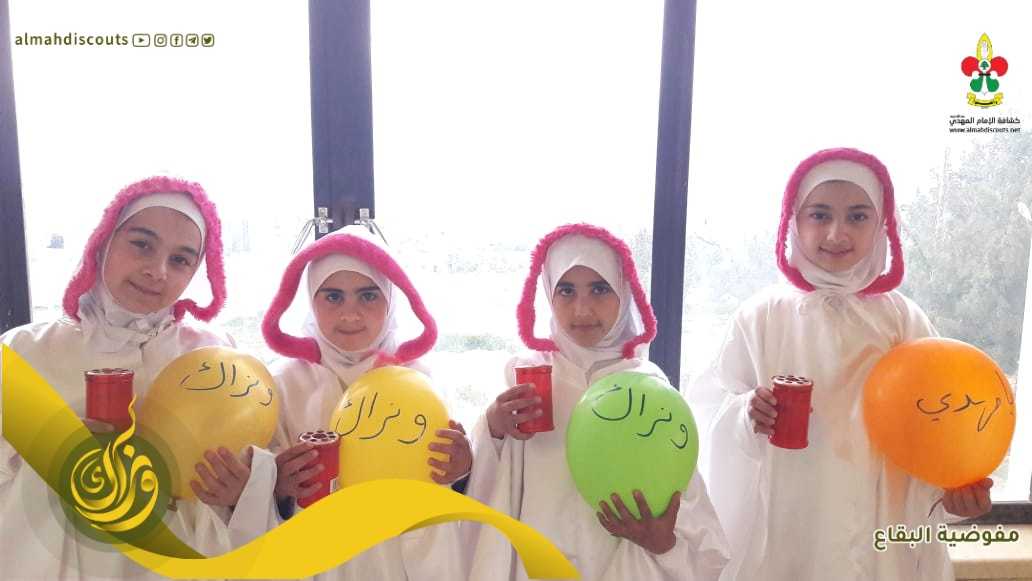 في أجواء ولادة الإمام المهدي عجل الله تعالى فرجه، نظم فوج ام البنين/ النبي عثمان/ القطاع الشمالي احتفالاً تنوعت فقراته، وبحضور مسؤولة الهيئات النسائية في البقاع وأمينة المرشدات في القطاع الكشفي وأهالي الكشفيات كان الإفتتاح بمراسم تعظيم للقرآن الكريم، بعدها فقرات فنية وأناشيد، لتنتقل الحاضرات الى رحاب نجمات البتول مع التعريف بالمشروع واطلاق مشروع الأربعون صباحاً، لتثني بعدها راعية الحفل على جهود كشافة المهدي في بناء الجيل الممهد للظهور الشريف وكان الختام بمولد وتوزيع الحلوى على حب الإمام
