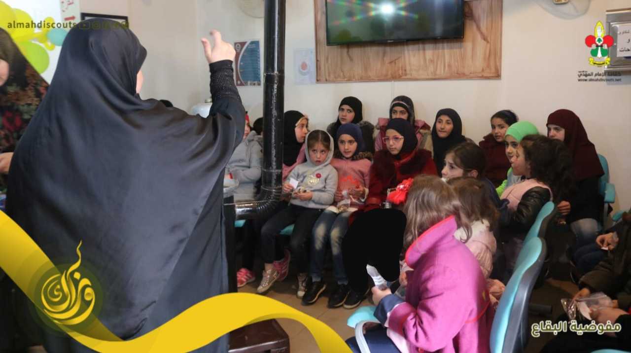 بمناسَبة ولادة الإمام المهديّ أقام فوج السيدة خولة بوداي/ القطاع الغربي بالمشاركة مع الهيئة الصحية الإسلامية ورشة "الغذاء السليم"، في مستوصف بوداي الصحي، وبعد الورشة قدمت القائدات حصص غذاء سليم على المشاركات، ليكون بعدها مسابقة حول الإمام المهدي عجل الله تعالى فرجه، توزيع هدايا وحلوى وبوالين، رسم على الوجه والختام بدعاء الحجة...
