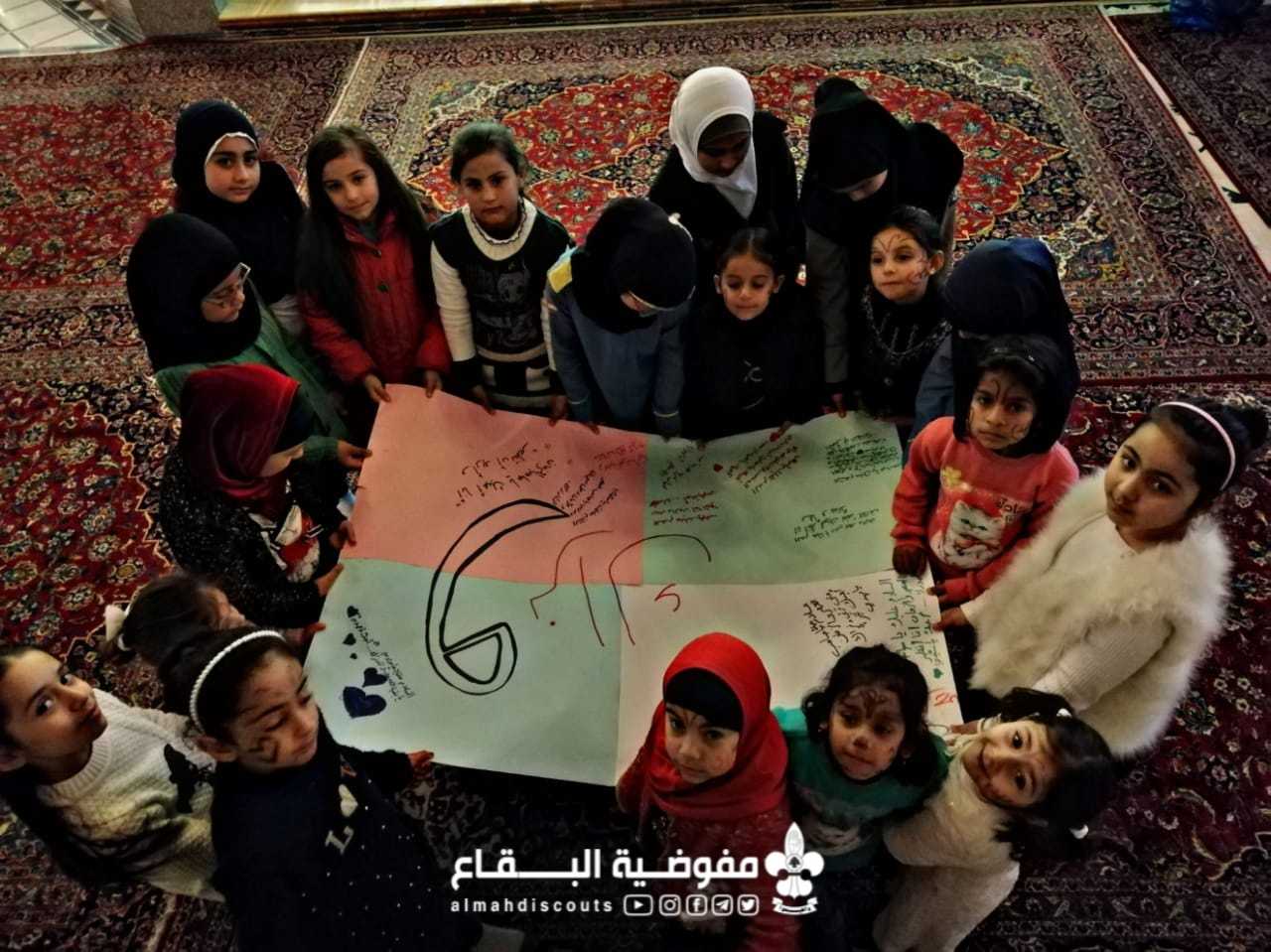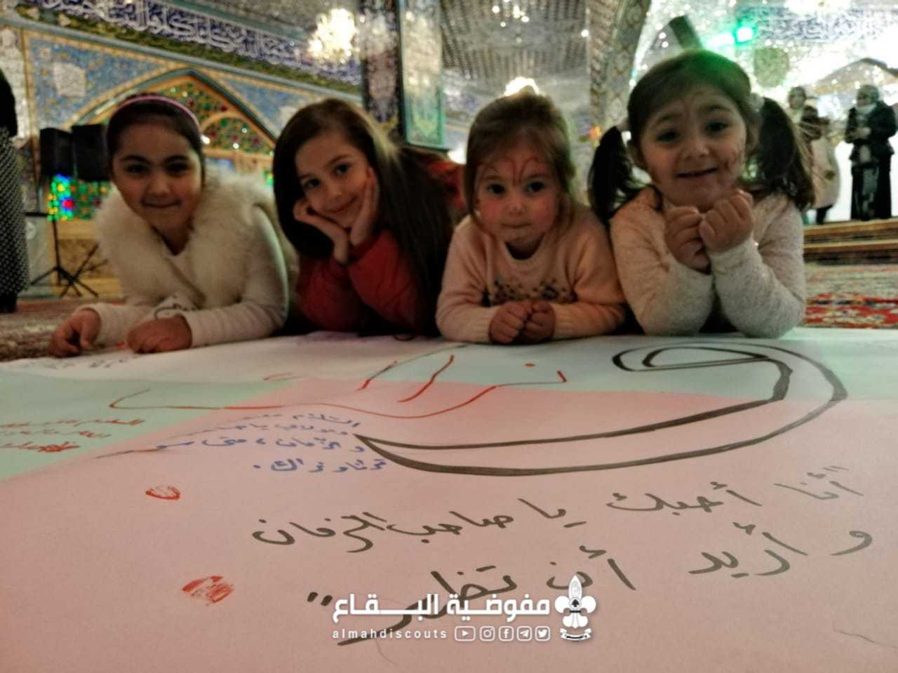 في رحاب الولادة المباركة لإمام الزمان ارواحنا و ارواح العالمين لتراب مقدمه الفداء،تشرف فوج السيدة زينب "ع" - دورس بزيارة السيدة خولة بنت الامام الحسين "ع" حيث بدء النشاط بالسلام و الزيارة ثم قُسِّم النشاط بين الفئات من رسم على وجوه الى فقرة التلوين مع البراعم اضافة الى المسابقات و الألعاب الدينية من وحي المناسبة مع الزهرات و المرشدات و الدليلات بعدها قام الجميع بكتابة الرسائل المليئة بالشوق و الإنتظار لصاحب الزمان "عج" بعدها تم توزيع بطاقات نجمات البتول و الأربعون صباحا على المشاركات .لیتم توزيع الحلوى في المقام في الختام.