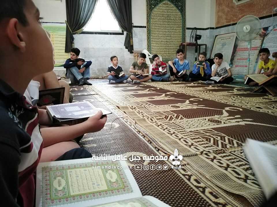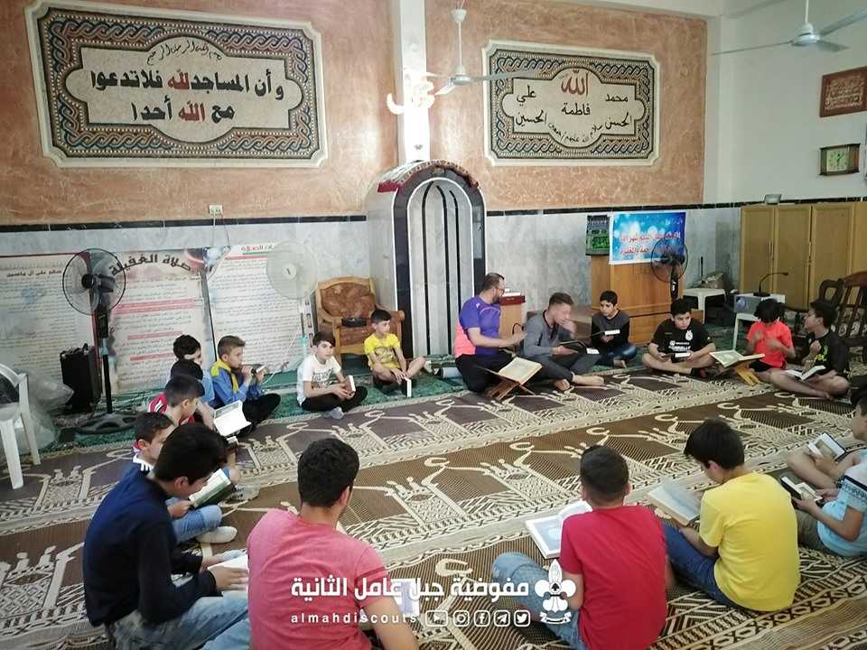حلقة تصحيح تلاوة قرآنيّة وختمية جزء يوميّاً للكشفيين في فوج الإمام الباقر(ع)/ رومين إحياءً للتديّن المسجدي.